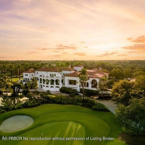 Welcome to a rare offering in Old Palm Golf Club. This exquisite custom residence blends timeless architecture with modern elegance & a rarely available unobstructed golf view with total privacy. This magnificent residence is equipped with a gourmet chef's kitchen, custom walnut cabinetry & double islands, formal dining room, wine room, office, club room/gym, elevator, primary suite with spa inspired his/her bathrooms, & large walk in closets. Plenty of storage in the climate controlled 4.5 car garage with lifts. Second floor spacious en-suite bedrooms with walk in closets. Resort-style outdoor living area with covered patio & phantom screens, salt water pool, & summer kitchen. Enjoy luxury living & a lifestyle defined by sophistication & privacy. This is golf course living, re-imagined.