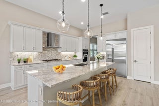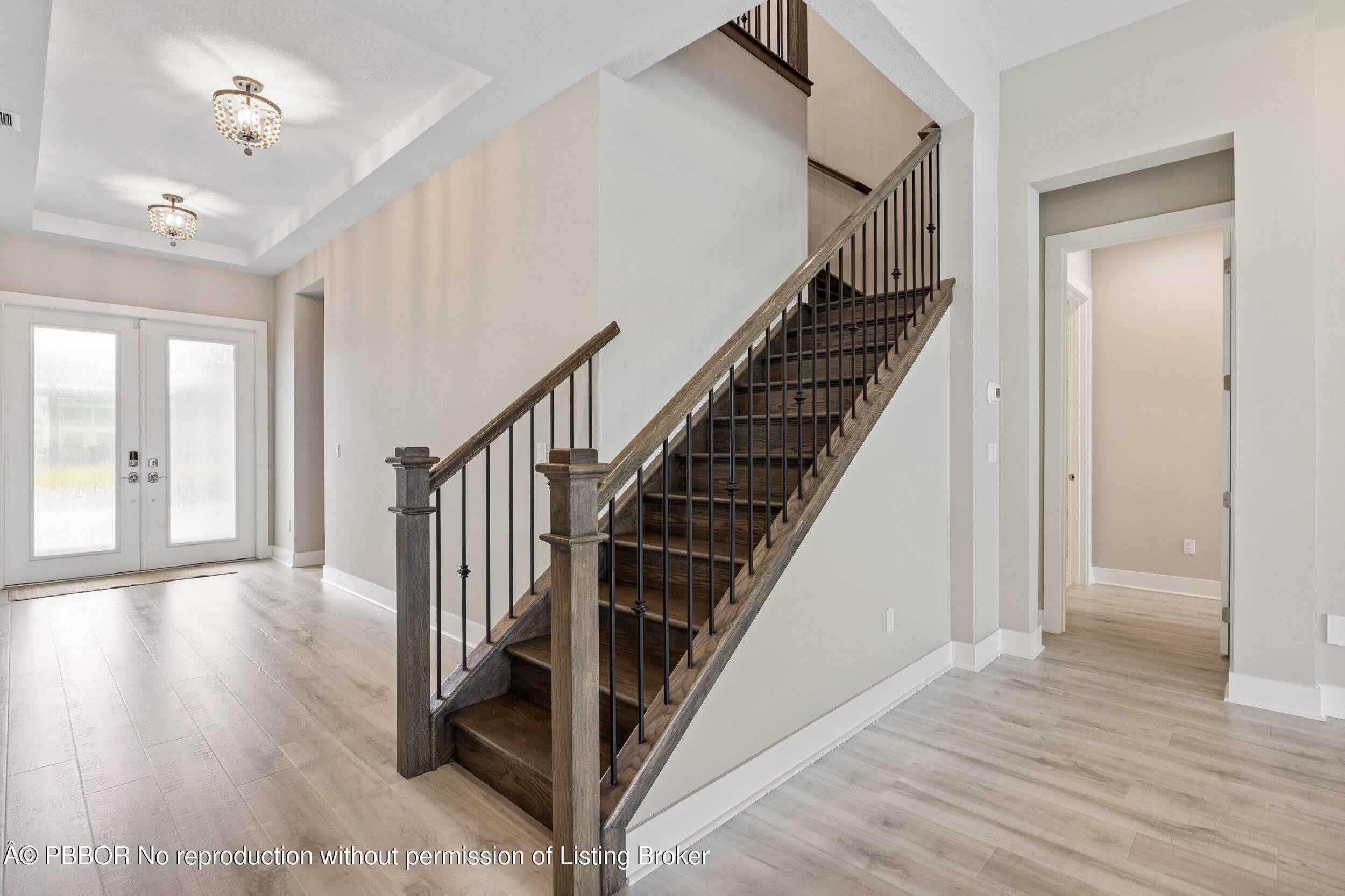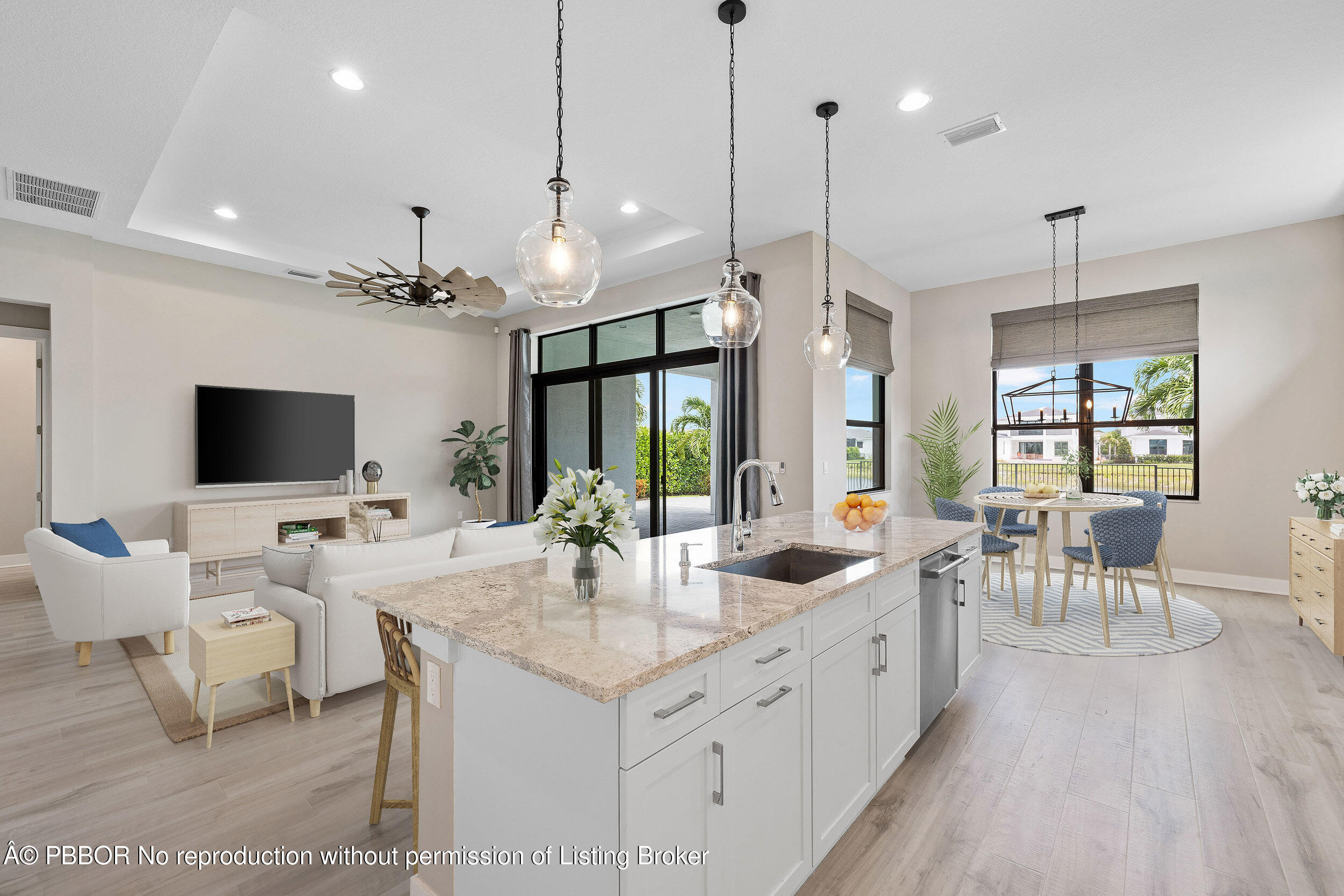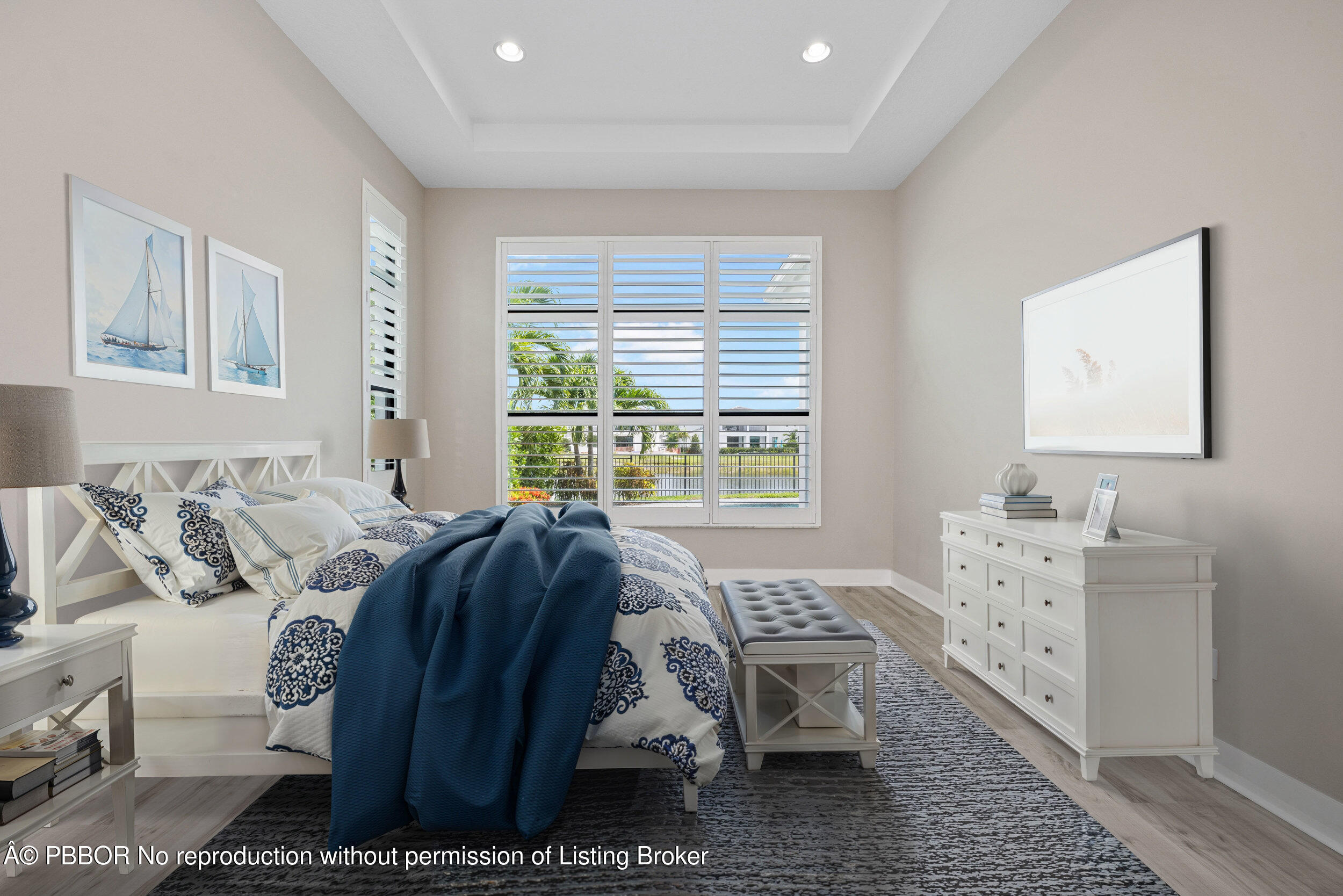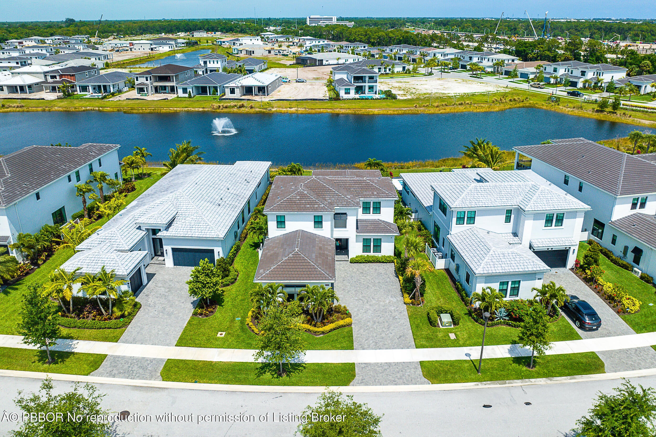 Experience luxurious lakefront living in this expansive 5BR/5BA home, perfectly situated on a premium lot in one of Northern Palm Beach's most desirable gated communities. Built in 2022, this residence features a chef's kitchen with upgraded cabinetry, Monogram/Cafe appliances, two dining areas, and a spacious great room ideal for entertaining. The first floor offers two bedrooms, including a serene primary suite with views of the private saltwater pool, spa, & lake. Upstairs includes three ensuite bedrooms and a large loft, perfect for a second living space. Enjoy 24/7 security, a resort-style pool, clubhouse, & fitness center, all just minutes from top-rated schools, world-class golf courses, shopping, dining, and beaches. Easy access to highways and PBI Airport adds convenience.