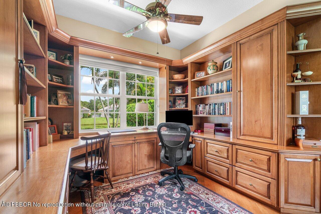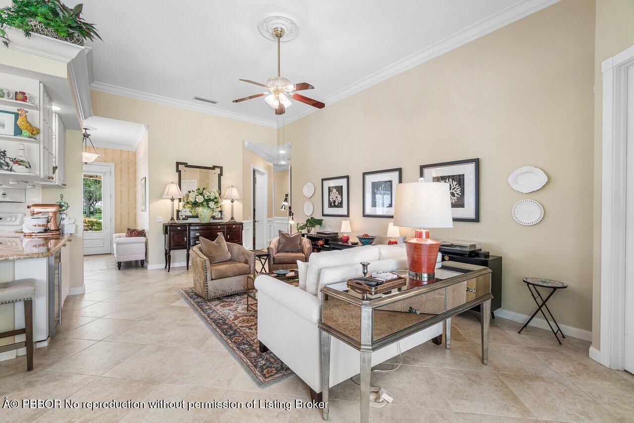 Enjoy peaceful lake views from this immaculately maintained Carlyle model, sited on a quiet cul-de-sac in the coveted Isles at Palm Beach Gardens. Boasting a brand new roof (Aug 2025), updated baths with marble top vanities and nickel finishes, and an inviting front porch, this light-filled 4BR/3BA home features formal and informal living areas, soaring ceilings, diagonal porcelain tile, and a screened-in lanai perfect for outdoor relaxation. The 4th bedroom set up as a home office with custom built-ins. The spacious kitchen with granite counters and abundant cabinetry flows seamlessly into the family room. Large primary suite offers dual baths and generous closets. Pristine 2 car garage and laundry. Enjoy resort-style amenities including pool, tennis, pickleball, clubhouse, and fitnes Prime location near beaches, golf, world class dining, I-95, and Palm Beach International Airport.
