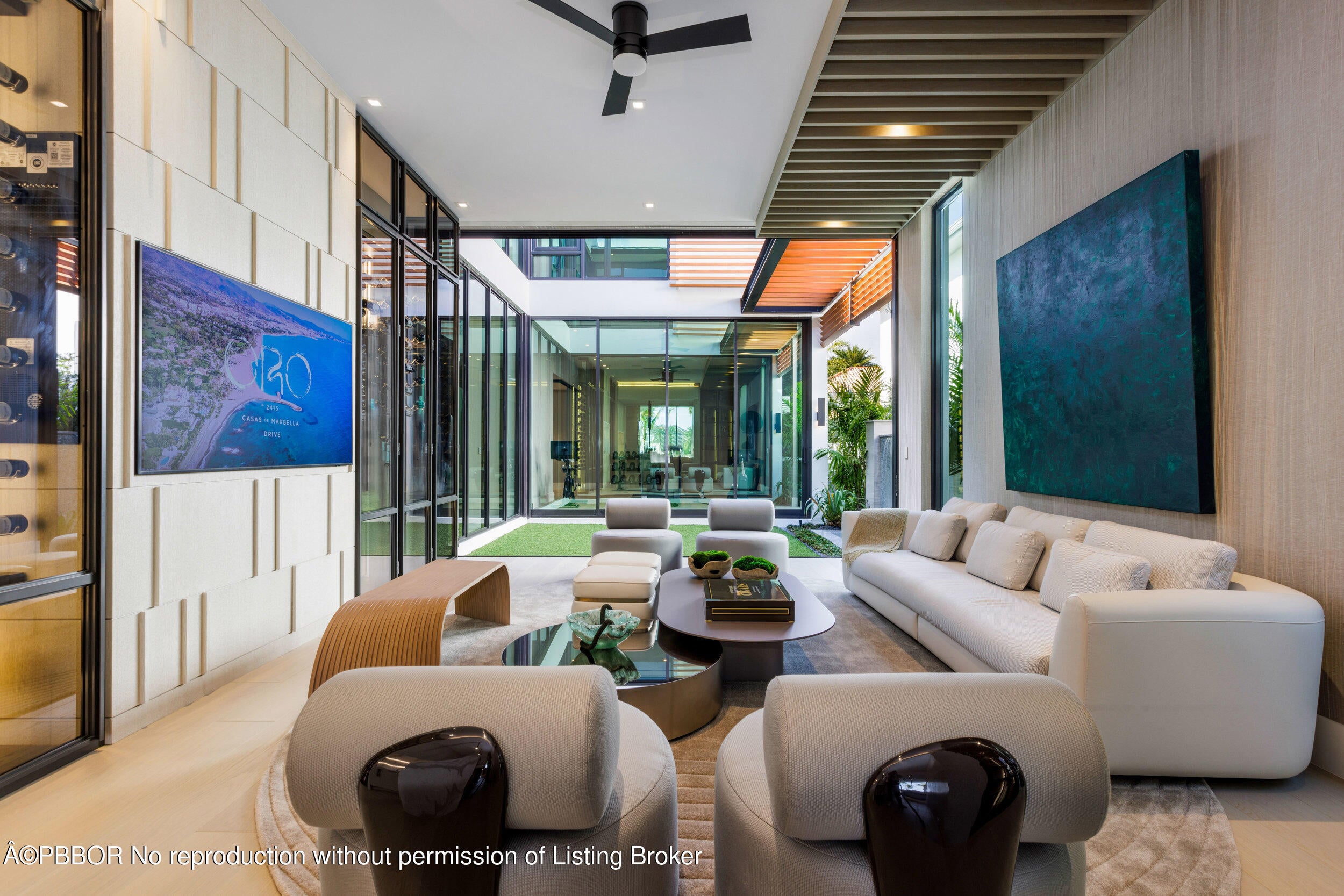 Oro is a turn-key, contemporary waterfront masterpiece in a private Palm Beach Gardens community, featuring four stately residences and a tennis court. Developed by Stamm Development Group, this 16,000+ sq. ft. estate offers 6 bedrooms, 11 bathrooms, and a 6-car garage across a main house, guest house, security hut, and trophy garage. Designed by Affiniti Architects and Decorator's Unlimited, and fully furnished by Artefacto, this home boasts high-end finishes, smart home automation, and resort-style amenities. Highlights include a grand foyer, chef's kitchen, primary suite with spa-like baths, wine lounge, media room, gym, and wellness center. Outdoor spaces feature cascading water features, lap pool, firepit, and private dock with Intracoastal access. Oro is the pinnacle of luxury living in northern Palm Beach County.