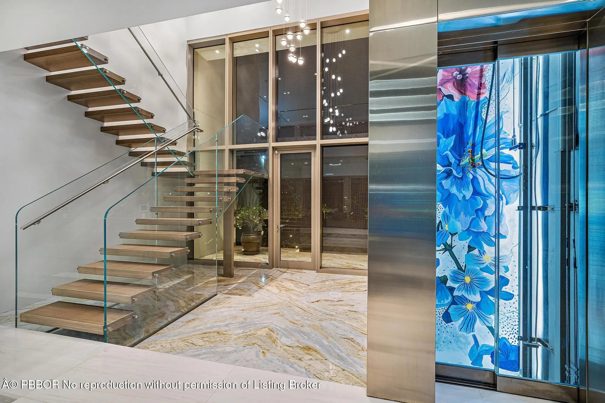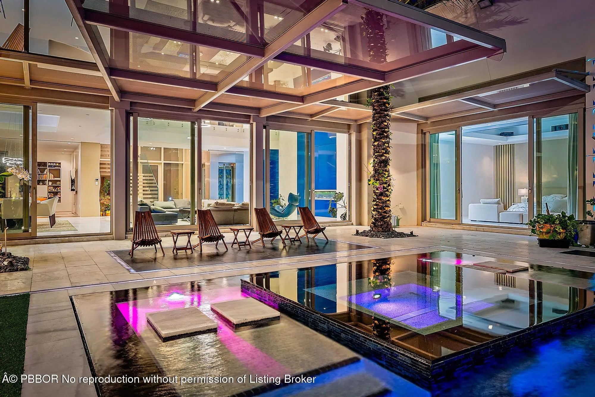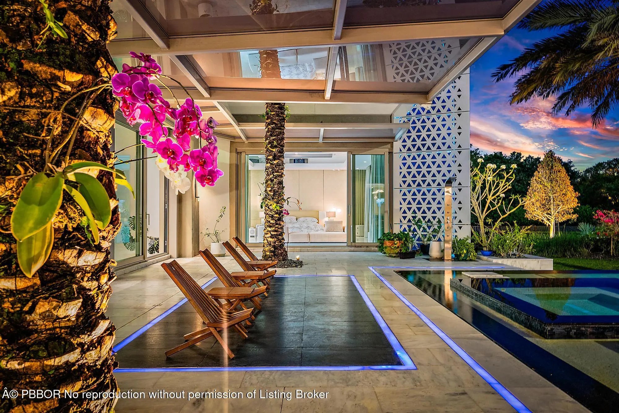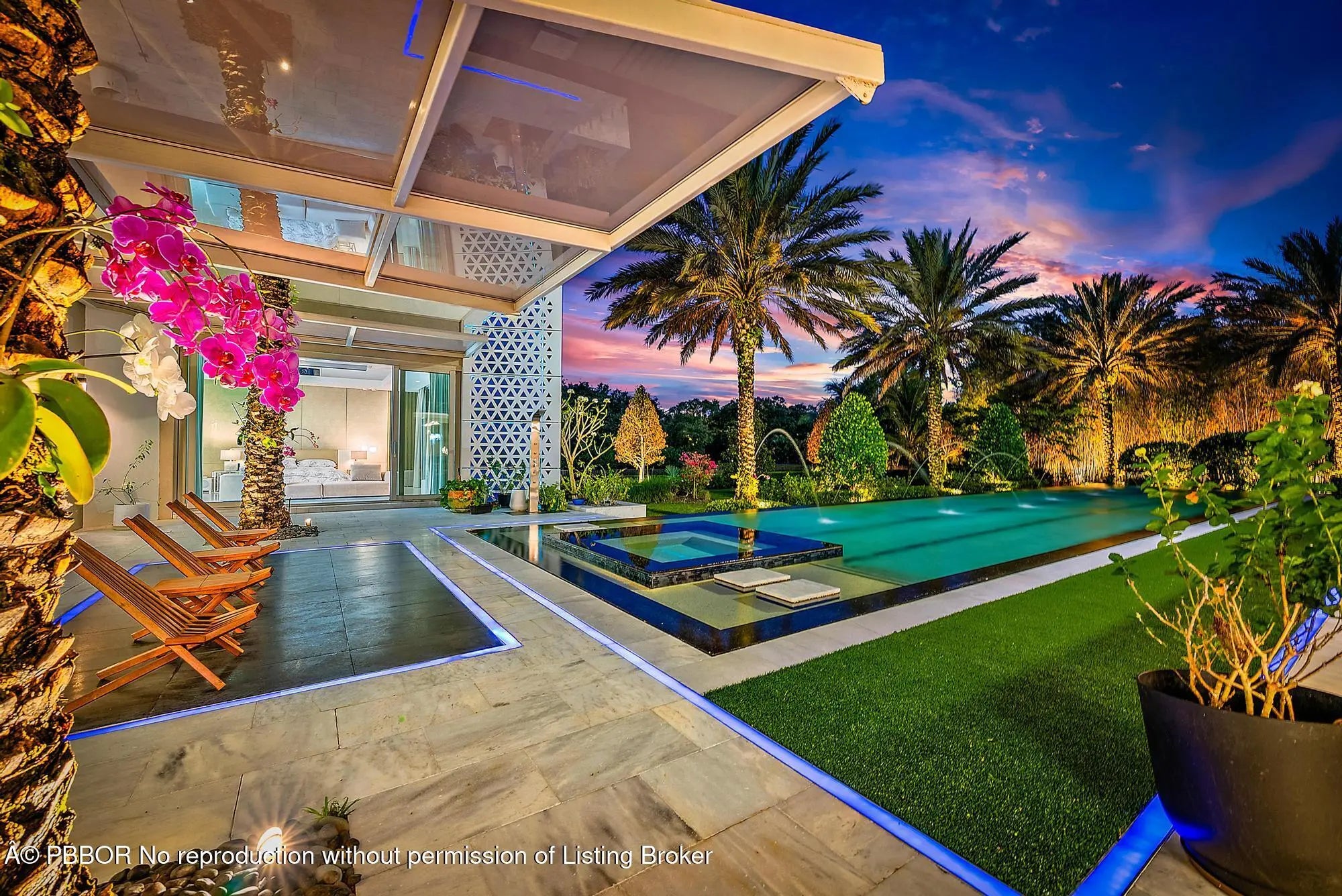 Welcome to this one-of-a-kind modern sanctuary in the heart of Palm Beach Gardens, an ultra-luxury architectural triumph that marries innovation, sophistication and serene beauty. Spanning 11,144 square feet of living space, this bespoke residence encompasses five bedrooms, eight bathrooms and two half baths all set against the tranquil backdrop of Japanese-inspired gardens. Meticulously constructed under the direct supervision of the owner, every element reflects the highest standards of modern design and engineering where no detail has been overlooked. Introducing this magnificent residence, the impressive two-story vestibule sets the tone for what lies within, showcasing a glass-suspended staircase, glass-enclosed commercial elevator adorned with an artistic mural finish, and a floor-to-ceiling glass facade that frames views of the exquisitely landscaped front yard. The grand living room is bathed in natural light, crowned by a soaring 25-foot ceiling, and anchored by a sleek ribbon fireplace set against blue lacquered panels that cleverly conceal media. 10 foot sliding glass doors open to reveal a tranquil oasis with lush gardens and a sun-splashed 75 foot lap pool with spa. Epitomizing elegance, the adjoining dining room is equally inviting, with a tray ceiling and serene pool vistas. For more informal living, the family room flows seamlessly with the kitchen, finished with professional-grade appliances, an expansive butler's pantry, and handsome custom cabinetry with tons of storage that integrates a work island and a floating breakfast bar extension. The first-floor primary suite is a peaceful haven, with two walls of glass that open to the pool and gardens. This luxurious retreat comprises his and hers custom-fitted wardrobe closets and dual spa-inspired bathrooms, finished in full marble slabs and fitted with steam showers and Toto bidet toilets. Perfectly suited for grand entertaining and everyday indulgence are an indoor/outdoor loggia with summer kitchen, a fully-equipped gym, two guest suites, library and four-car garage on the first level. Upstairs, a nine-seat custom theatre and two additional bedroom suites are complemented by a lounge and kitchenette offering comfort and privacy for guests. Additional features include 10 foot ceilings and doors throughout, stainless steel panelized framing, insulated/laminated impact windows, automized shades, imported rain showers in the bathrooms, flush Italian doors, Smart House/Savant system, whole-house generator with propane tanks, eight-zone air conditioning, and instant hot water heaters. DISCLAIMER: Information published or otherwise provided by the listing company and its representatives including but not limited to prices, measurements, square footages, lot sizes, calculations, statistics, and videos are deemed reliable but are not guaranteed and are subject to errors, omissions or changes without notice. All such information should be independently verified by any prospective purchaser or seller. Parties should perform their own due diligence to verify such information prior to a sale or listing. Listing company expressly disclaims any warranty or representation regarding such information. Prices published are either list price, sold price, and/or last asking price. The listing company participates in the Multiple Listing Service and IDX. The properties published as listed and sold are not necessarily exclusive to listing company and may be listed or have sold with other members of the Multiple Listing Service. Transactions where listing company represented both buyers and sellers are calculated as two sales. Some affiliations may not be applicable to certain geographic areas. If your property is currently listed with another broker, please disregard any solicitation for services. Information published or otherwise provided by seller, listing company or its representatives is deemed reliable but are not guaranteed and subject to errors, omissions, or changes without notice. Copyright 2026 by the listing company. All Rights Reserved.