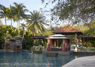 Spectacular Old Palm Estate on prime double lot featuring 6BR/8.2BA plus 2,000+/- square foot guest house/gym, tennis court with pavilion, and resort-style backyard with 110' swimming pool, spa, dive tower, and fabulous swim-up pool bar. No detail has been overlooked with gorgeous design and finishes throughout. Beautiful living room with fireplace and wet bar. Formal dining room connects to wine room. Chef's kitchen with dual islands, butler's pantry, and breakfast nook opens to great room. Fantastic home theater and game room. Stunning library with fireplace, built-in shelving, and wet bar. Outdoor loggia with beautiful brick detailing, fireplace, and summer kitchen. Expansive Primary Wing with dual walk-in closets and baths, dressing area, stunning fireplace, and serene privacy garden with outdoor shower. 6 car garage, along with golf cart garage. Flawless interior design by The Norman Design Group. Old Palm is a fabulous full-service golf community with world-class amenities including a fitness center, dining options, clubhouse, spa, practice facility, and so much more.