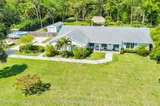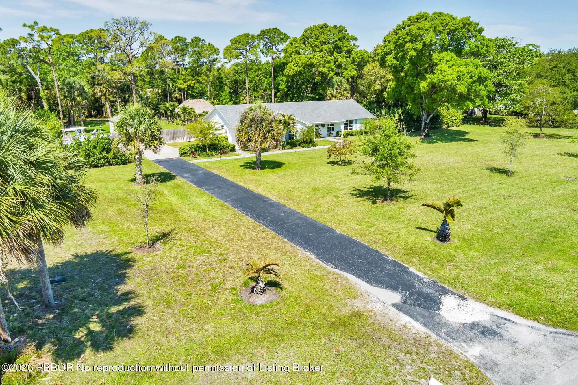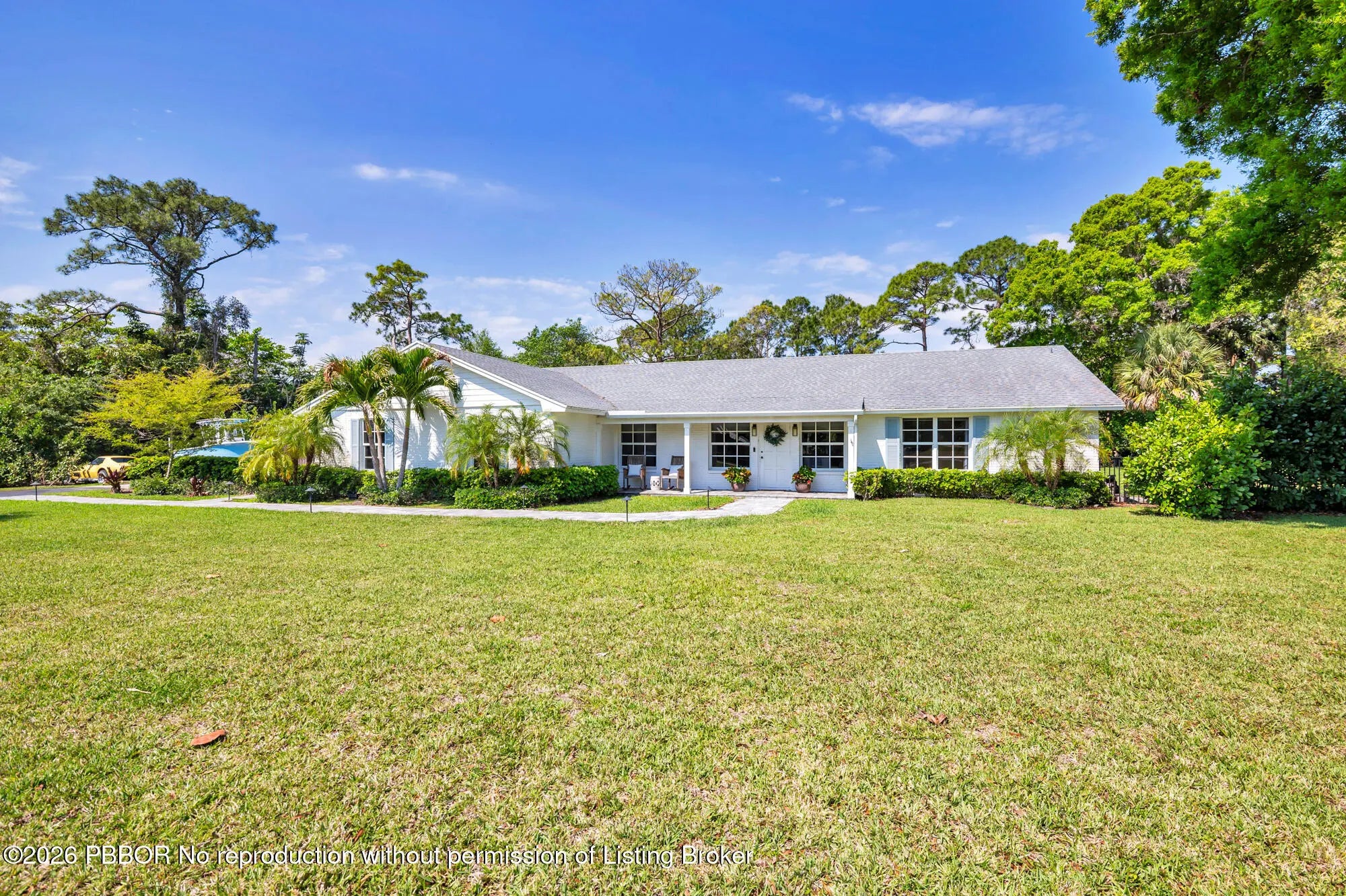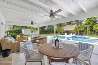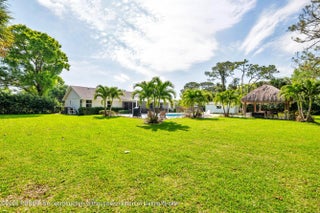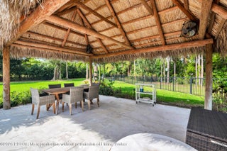 Located in the highly sought-after Horseshoe Acres Club, this beautifully updated home sits on a sprawling one-acre property within a private, 154-home gated community known for its space, privacy, and exceptionally low HOA of just $33/month. This residence underwent a complete renovation in 2020, featuring new exterior stucco, roof, impact windows, flooring, A/C system, bathrooms, and a stunning modern kitchen. The chef's kitchen is designed for both style and function, highlighted by a large center island with a built-in wine cooler--perfect for entertaining. Step outside to your private backyard oasis, completed in 2022. Enjoy a custom 36' x 15' heated pool with an attached 6' x 8' heated spa, along with a generous 9' x 15' sun shelf featuring two submersible lounge chairs. The expansive pool deck is finished in elegant white marble and includes a 21' x 15' tiki hut, creating the ultimate South Florida outdoor living experience. The screened patio also showcases matching marble flooring for a seamless indoor-outdoor flow. The fully fenced backyard offers both privacy and functionality. It features black aluminum picket fencing and a substantial 12' x 24' anchored shed complete with a roll-down garage door, rear entry, and windows ideal for storage, hobbies, or a workspace. This is a rare opportunity to own a fully renovated estate property with resort-style amenities in one of Palm Beach Gardens' most unique and desirable communities.