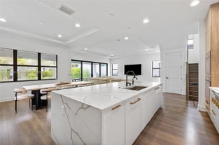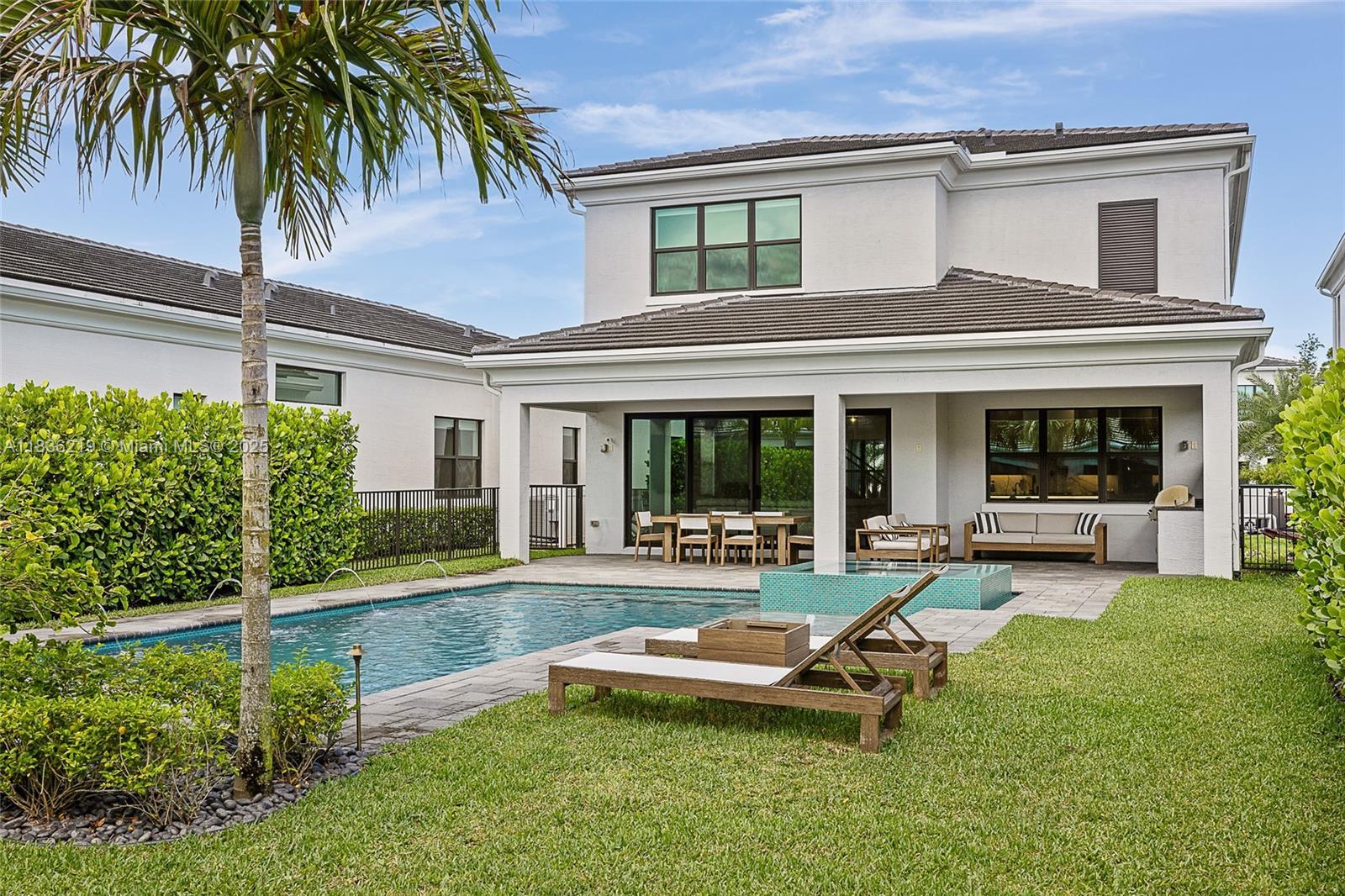 Modern sophistication meets effortless indoor-outdoor living. Vaulted ceilings & oversized windows with plenty of natural light. Custom kitchen with wood-paneled cabinetry & bar, large island, & Miele appliances including gas cooktop, double ovens, built-in coffee station & hidden fridge/freezer. The covered lanai, summer kitchen, pool/spa & sun shelf create a true outdoor oasis. Upstairs has 4 bedrooms & a loft, including a primary suite with 2 custom closets & a spa-style bath. All guest rooms are ensuite with custom closets. A glass-enclosed office completes the main level. Located on the largest lot for this model with space to add a fire pit, putting green & play area.24/7 security, resort-style pool, clubhouse, & fitness area. Moments from A rated schools, shopping, dining & beaches.