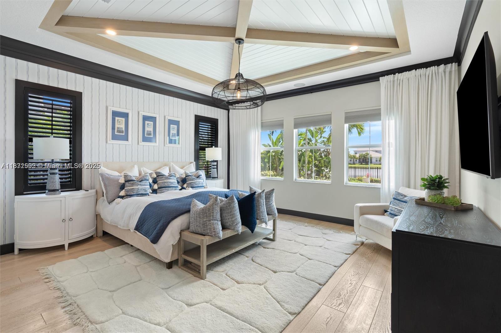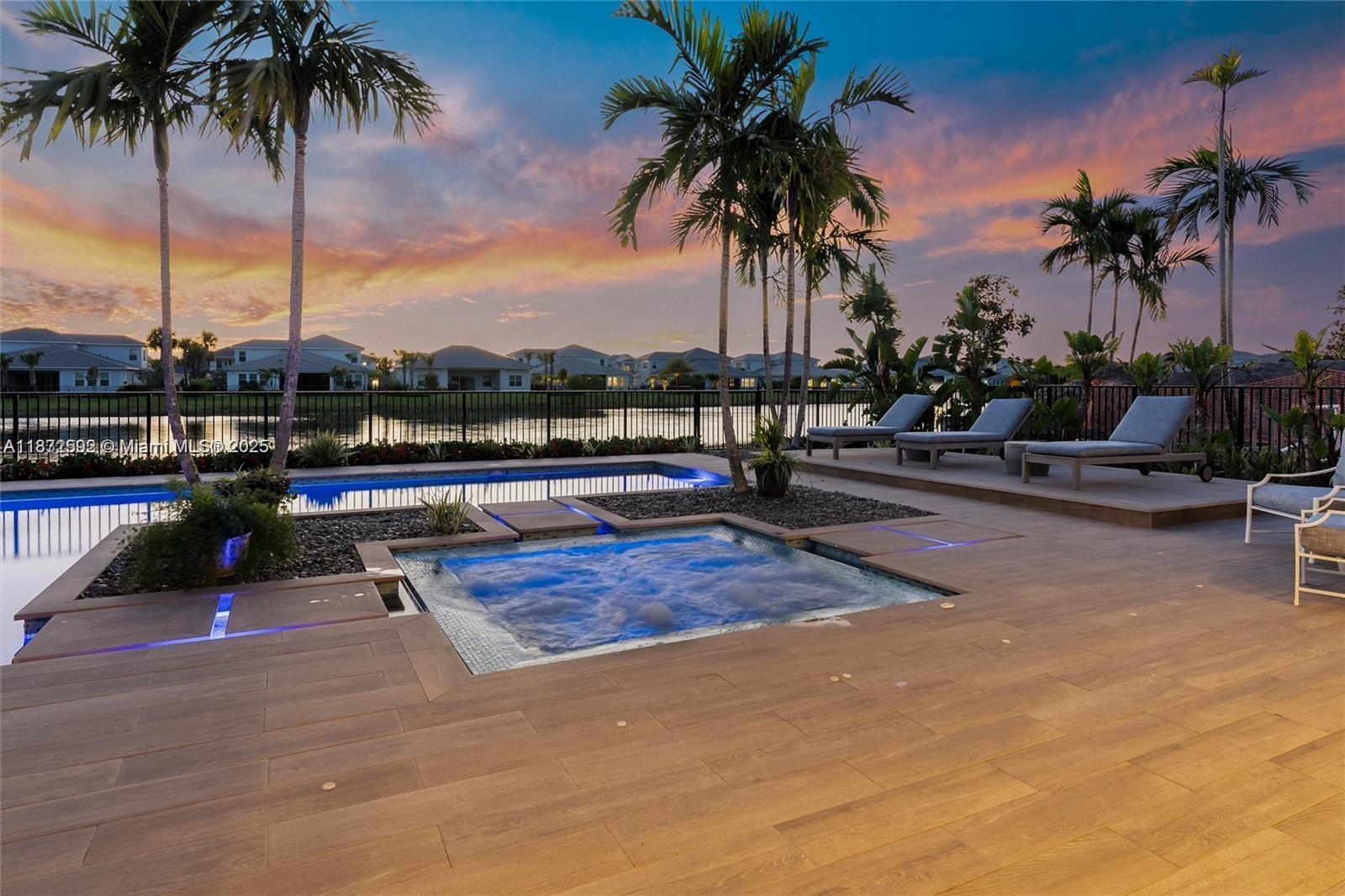 Welcome to this exquisite Toll Brother’s Watermark model home, where luxury meets sophistication. This beautifully designed residence features a saltwater pool with a heater, sun shelves, and a relaxing spa. The outdoor kitchen is perfect for entertaining, equipped with two refrigerators and a never-used BBQ, while the lanai offers electric screens for comfort. Inside, you'll find high-end appliances, designer furnishings, and professional décor throughout. The three-car garage provides ample space, and the home is surrounded by lush, custom landscaping with outdoor lighting. Situated in Watermark at Avenir , one of the area's most coveted communities, enjoy access to scenic trails and upscale shopping. Don’t miss this stunning gem!