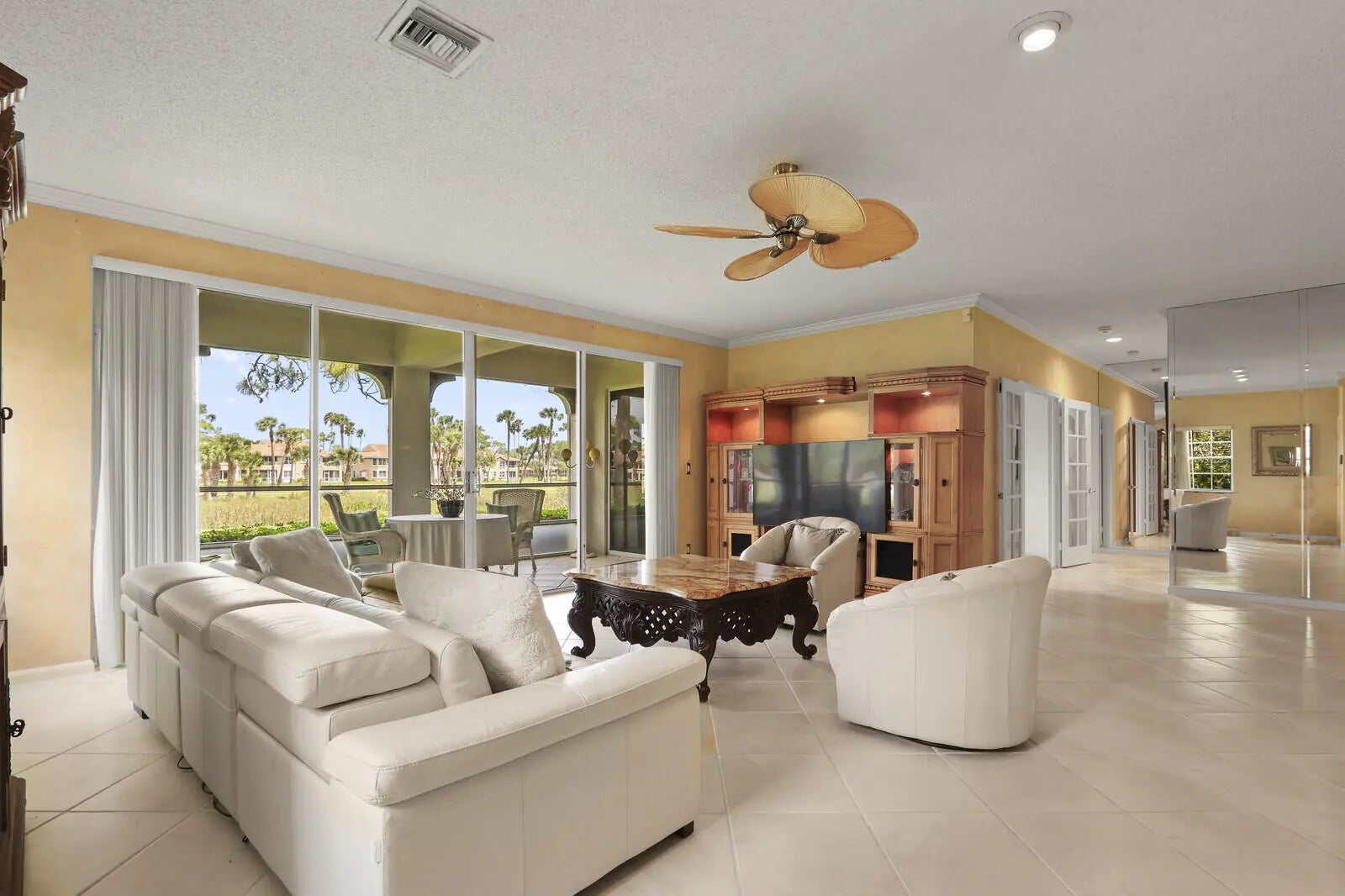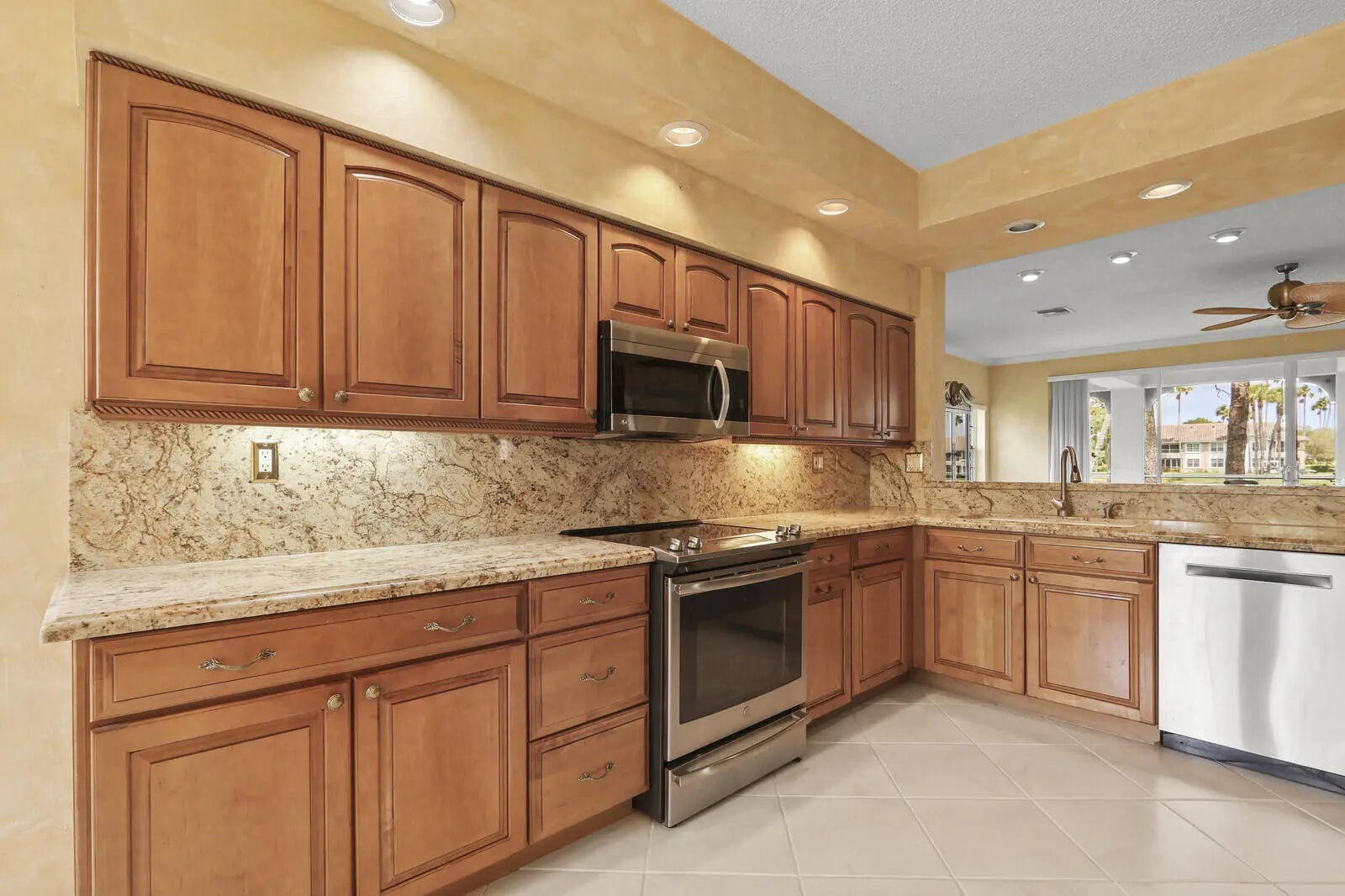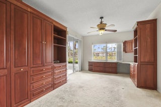 Beautifully updated 3-bedroom condo with a one-car garage in the highly desirable Ryder Cup Villas at PGA National, offering spectacular views of the 7th and 8th holes of the Champion Course. Perfectly positioned to capture both sunrise and sunset, this light-filled residence showcases sweeping lake and golf vistas from the main living areas. The renovated kitchen features stainless steel appliances, granite countertops, and a layout designed to maximize both functionality and the stunning views. The spacious primary suite is a true retreat, highlighted by porcelain flooring and generous proportions. Enjoy an open-concept floor plan with seamless indoor-outdoor living, ideal for relaxing or entertaining while overlooking the tranquil setting.