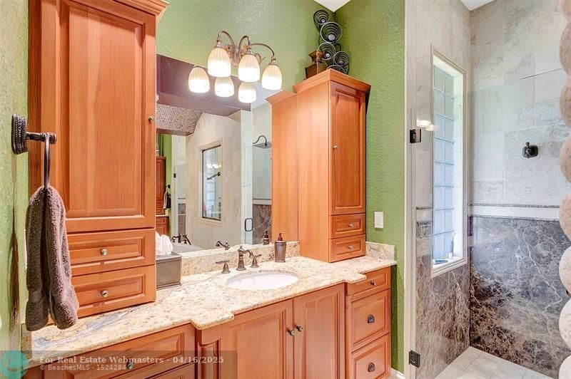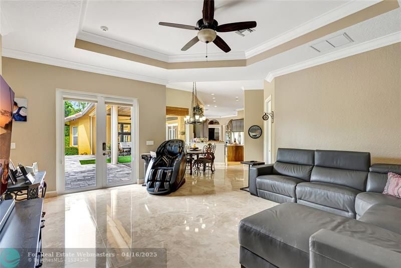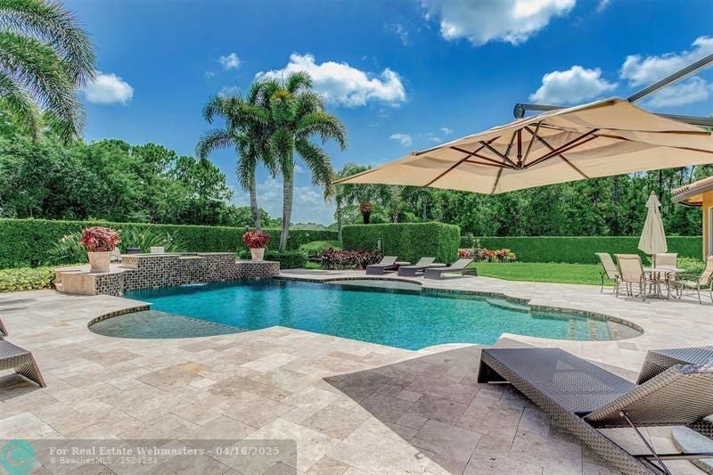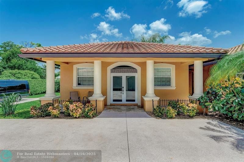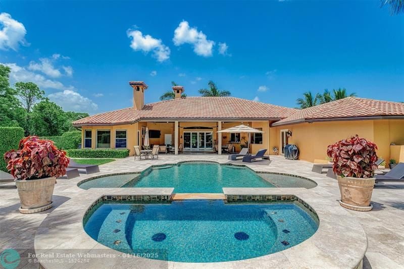 Come check out this piece of paradise! Main house is a beautiful 5 bedroom, 4 1/2 bathroom with gated entrance, 24 in marble floors, recently upgraded kitchen, and a detached 3 car garage. The Primary bedroom features a walk in shower, jacuzzi tub, walk in closets with built ins, and a wood burning fireplace. The family room and kitchen have tranquil views of the saltwater pool, oversized spa, open patio, and gas fire pit in the backyard. You can also enjoy your own movie theater with built in speakers and screen. Don't forget the storm shutters, generator, security cameras, and 3 new AC units. Guest house is a detached 2 bedroom, 2 bathroom house with its own gated entrance, extra parking for an R/V or boat with power pedestal, and 3 car garage with a half bath and additional storage.