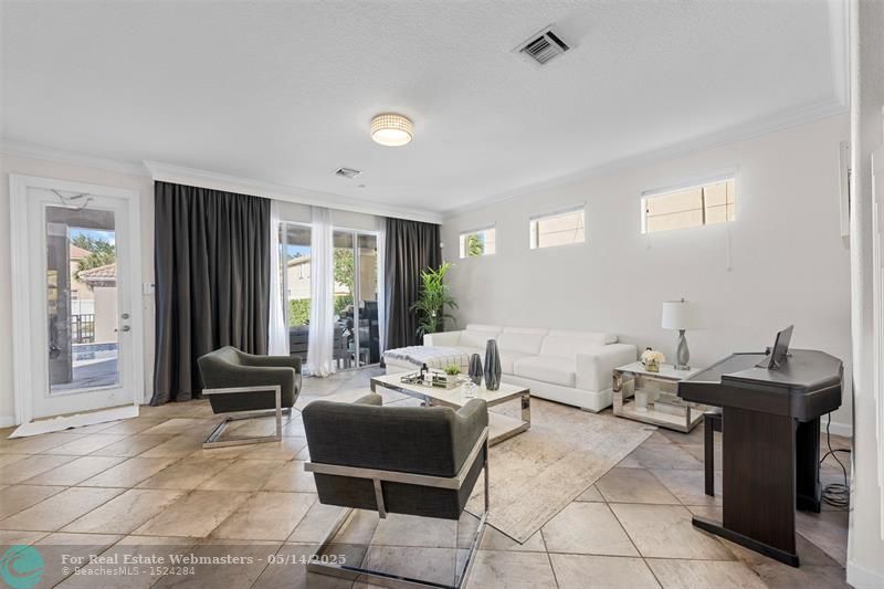 Beautifully updated home in the gated community of Gables at North Lake! This spacious residence features 3 bedrooms plus a versatile 4th room, perfect for a home office, den, or easily converted into a 4th bedroom. Enjoy a modern kitchen with stainless steel appliances and a brand-new refrigerator, along with two fully renovated bathrooms. The home includes a 2-car garage with 2 addt'l spaces, and newer washer/dryer. Step outside to a private, fenced backyard with a stunning pool built in 2022 and low-maintenance synthetic grass. Hurricane shutters throughout, 2020 A/C. Located just minutes from beaches, parks, shopping, dining, and top-rated schools. This home offers style, comfort, and convenience—move-in ready and waiting for you!
