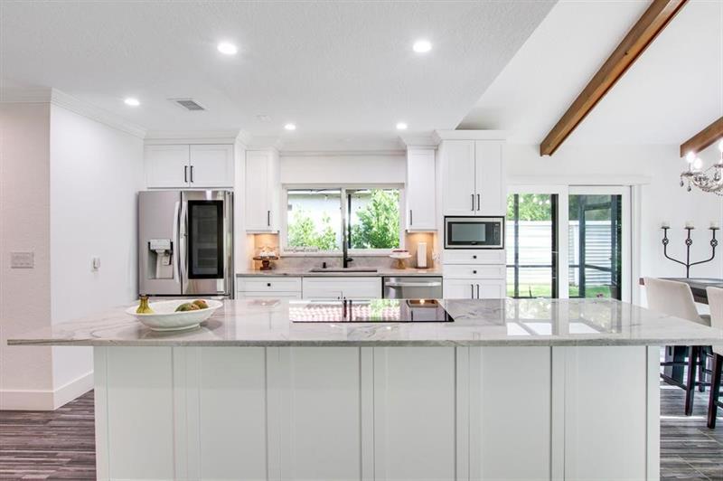 Must see, fully renovated home in Ironwood at PGA National! Featuring vaulted ceilings with wood beams, impact windows and doors, new interior flooring, updated open kitchen, featuring LG appliances, including an oversized LG washer/dryer. Recessed lighting throughout. Both bathrooms fully updated, closet build outs, new door castings and solid core interior doors. Custom window treatments throughout. New epoxy garage floor, new driveway and new screened in patio and pavers. PGA National membership optional. Centrally located in the neighborhood for easy access to shops, restaurants and highways. A-rated school district.