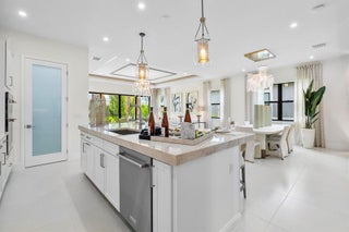 BUILDER MODEL HOME FULLY FURNISHED! Solana Bay is the newest coastal construction community in Avenir. This Laguna floorplan with a transitional exterior elevation is ideally situated on a homesite that provides privacy and offers 4 bedrooms, 3 baths, an open concept, and a 3-car garage. Features in this home include gas tankless water heater, gas W/D, free-standing soaking tub, 32x32 porcelain tile throughout, summer kitchen. This home is truly turnkey with a gourmet kitchen. The clubhouse has resort-style community amenities, including a fitness center, resort-style heated pool, lap pool, tennis courts, and pickleball courts. Square footage is approx.