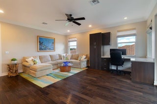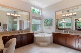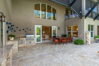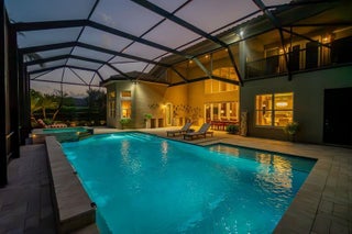 This beautifully upgraded home offers refined living, modern efficiency, and exceptional indoor–outdoor spaces on an expansive and meticulously landscaped half-acre lot. With 4,310 sq ft under air, 4 bedrooms, 4.5 baths, Solar panels and storage batteries make this house energy efficient with low operating costs. Impeccably maintained and thoughtfully updated, the residence features beautifully figured marble flooring on the diagonal, soaring coffered ceilings, crown moldings throughout, solid iron entry doors, and a newly updated gourmet kitchen with magnificent quartzite countertops and premium appliances. French doors open to a large fully screened outdoor living area with a lap pool, spa, outdoor kitchen, and generous dining and lounging spaces.