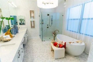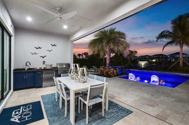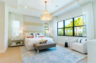 BUILDER MODEL HOME – FULLY FURNISHED! Discover the Huntington Model at Solana Bay, a 5 Bed / 6 Bath lake-view home featuring the primary down, loft, and media room. Filled with natural light, this open-concept design offers high ceilings, engineered hardwood flooring, and an extra-large chef-inspired kitchen with quartz countertops, oversized island, stainless steel appliances, wall oven, built-in microwave, 42" cabinets, and a natural gas cooktop. Includes a 2-car garage, tankless water heater, gas dryer, impact windows/doors, smart home automation, and alarm monitoring. Enjoy a private pool with hot tub and outdoor summer kitchen. Community amenities include a resort-style heated pool, lap pool, tennis, pickleball, fitness center, and cabanas. Square footage approx.