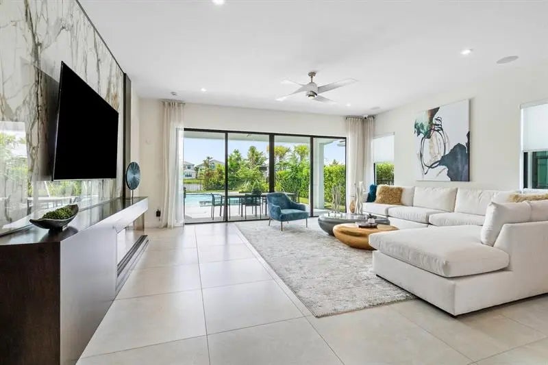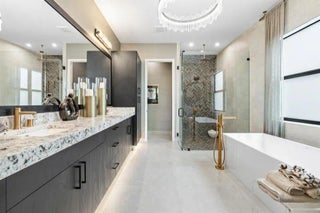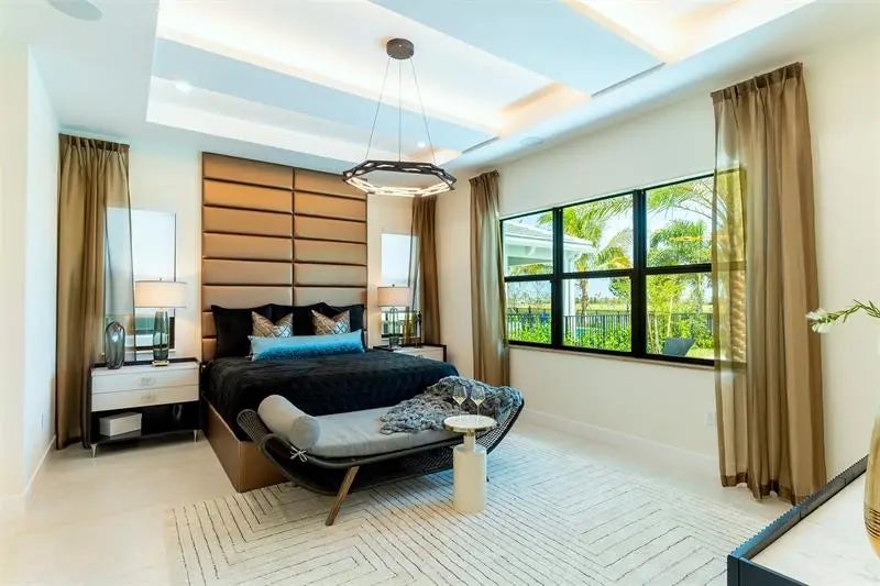 BUILDER MODEL HOME – FULLY FURNISHED! Discover the Manhattan Model at Solana Bay, a 5 Bed / 6 Bath lake-view home featuring two primary suites, a gym, den, loft, and media room. Filled with natural light, this open-concept design offers high ceilings, 32x32 porcelain tile, and an extra-large chef-inspired kitchen with quartz countertops, oversized island, stainless steel appliances, wall oven, built-in microwave, 42" cabinets, and a natural gas cooktop. Includes a 2-car garage, tankless water heater, gas dryer, impact windows/doors, smart home automation, and alarm monitoring. Enjoy a private pool with hot tub and outdoor summer kitchen. Community amenities include a resort-style heated pool, lap pool, tennis, pickleball, fitness center, and cabanas. Square footage approx.