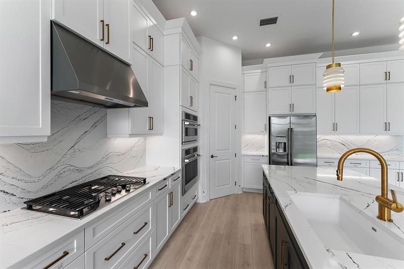 ***New Construction** Move in ready. Welcome to the newly built Riley floorplan by Kolter Homes, located in the gated community of L'Ambiance at Avenir. This spacious and elegantly designed home features 3 Bedrooms, 3.5 Bathrooms, a Flex Room, Great Room, Dining Room, Covered Lanai, and a 2-Car garage. Ideally positioned near the neighborhood entrance, mail kiosk, and the future Great Egret Clubhouse, this home offers both convenience and luxury. A striking 16' wide by 10' tall sliding glass door opens the Great Room to the lanai, creating a seamless indoor-outdoor living experience. Includes sink and cabinets in Laundry room. Gourmet kitchen. Covered lanai creates outdoor living space connected to the Great Room ready for entertaining.