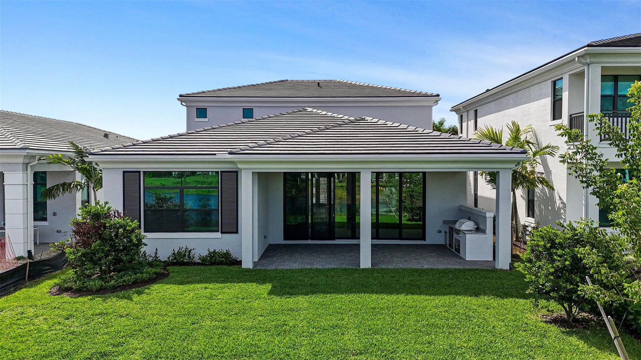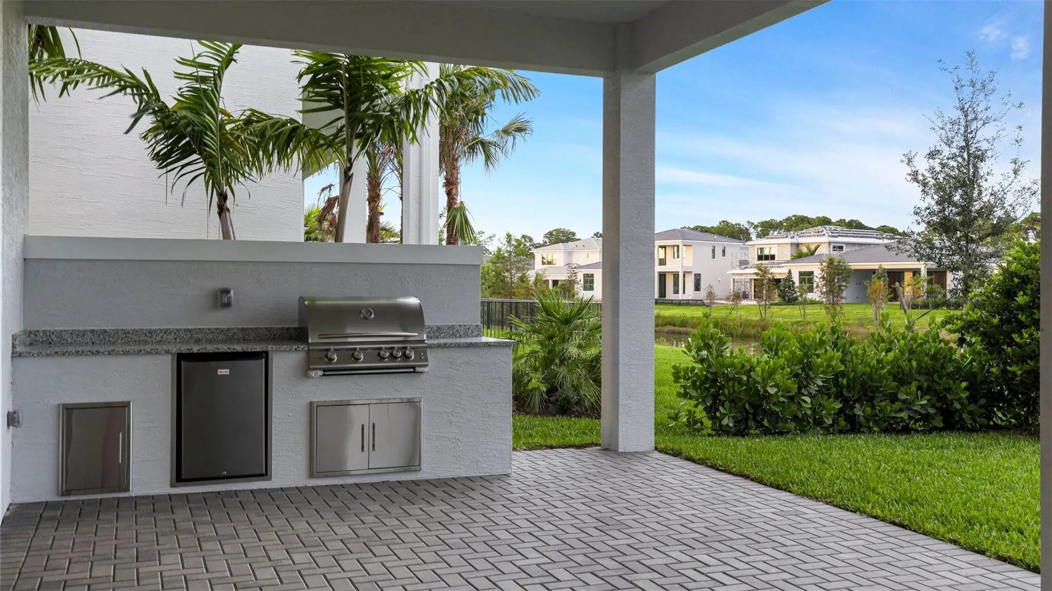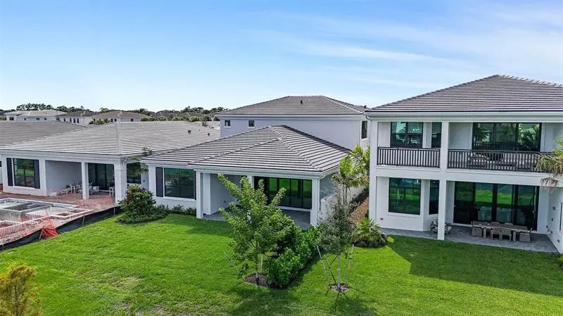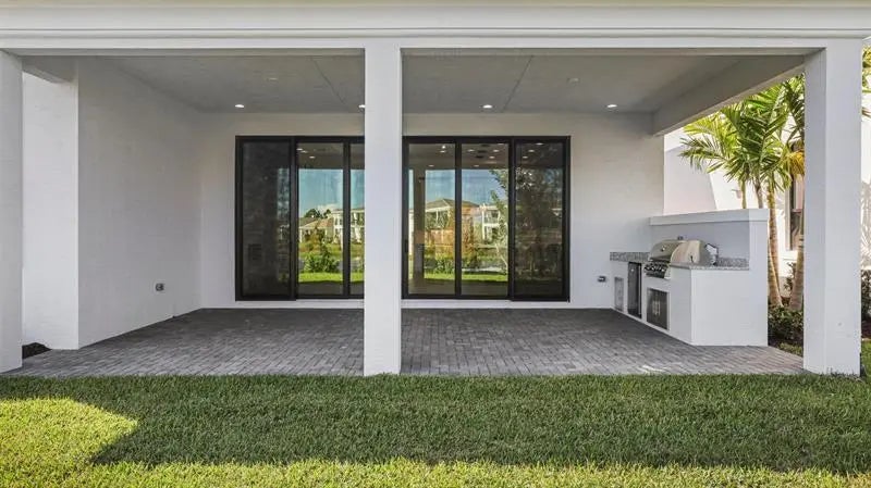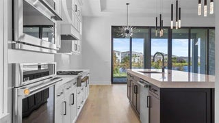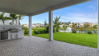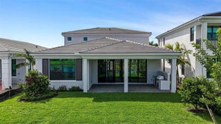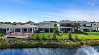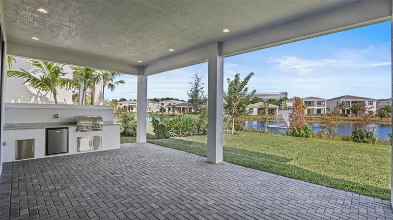 Move In Ready** This brand-new Mondrian floorplan is situated on an interior waterfront homesite within the gated community. This home offers 4 bedroom suites, each with their own bathroom, an additional half bathroom and a split-3 car garage. This Mondrian also includes gas cooking in the kitchen, 2nd tier upper cabinets, quartz backsplash, a 3” quartz kitchen island and under cabinet LED lighting. The great room includes a 20’ wide by 10’ tall sliding glass door and the loggia has been extended 4’. The owner’s bath includes a freestanding soaking tub. The loft has been upgraded to the optional larger game room, there is a gas connection for a future pool heater, as well as an added outdoor summer kitchen.