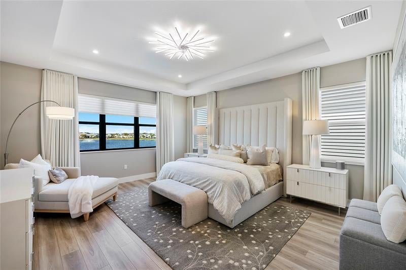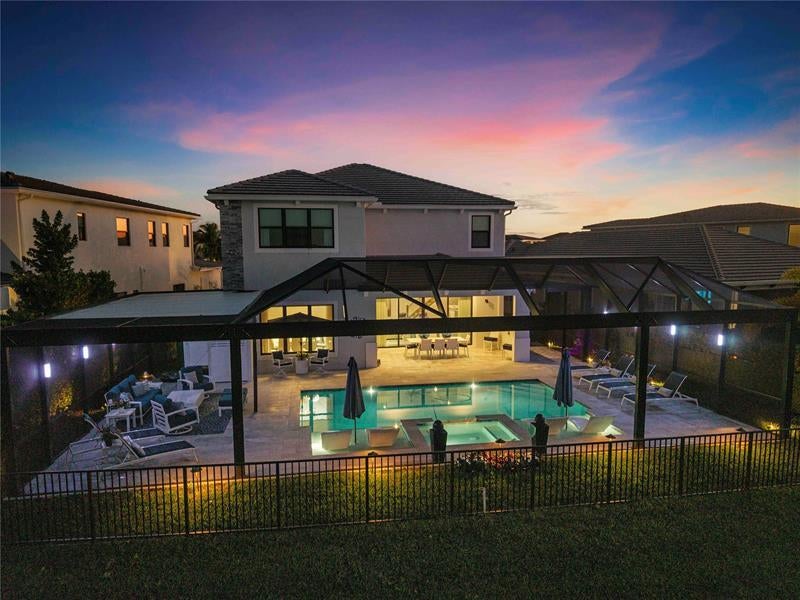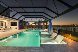 WOW! A True One of a Kind Lakefront Masterpiece! This 5 bedroom, 6 full bath newly built home has modern design, premium finishes, and an exceptional long lake view. The expansive screened in outdoor living area features an insulated roof, extended patio, and a heated, saltwater pool, creating a true resort style setting ideal for year round enjoyment. The primary suite includes his and her bathrooms, and every closet including the garage has been professionally outfitted to maximize storage and organization. Situated on a premium waterfront lot, this home offers both comfort and sophistication. Combining new construction appeal with high-end upgrades and Florida luxury living, this property is move in ready for the most discerning of buyers. Square footage is approximate.
