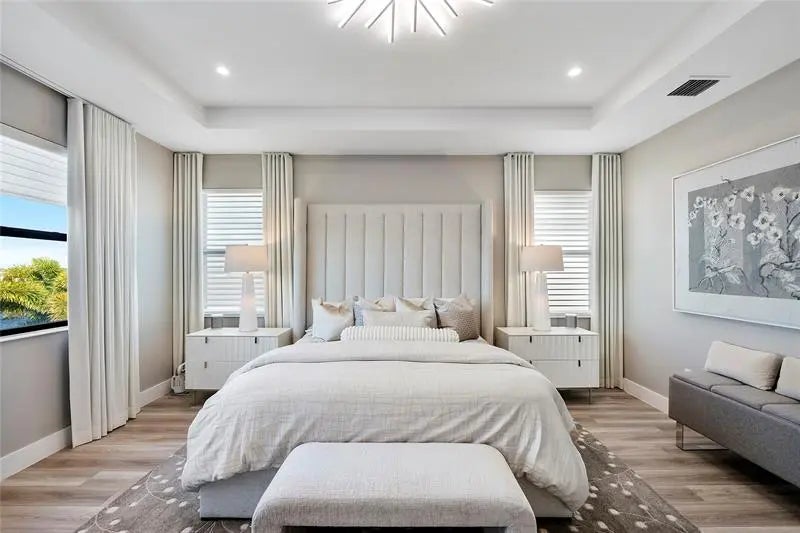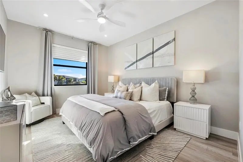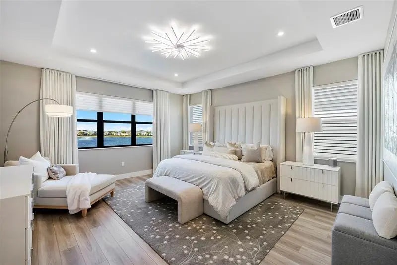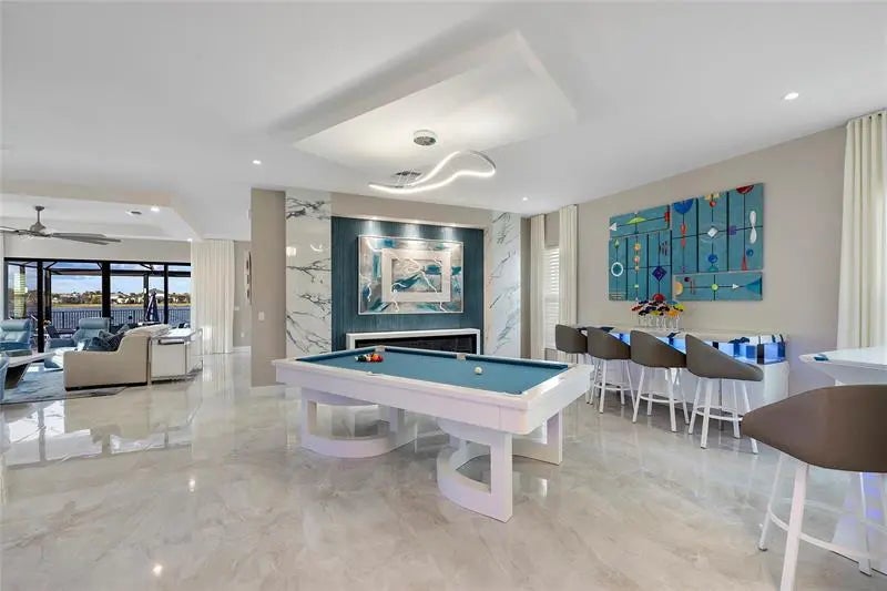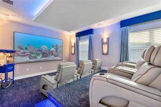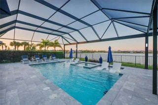 PANORAMIC LAKEFRONT ESTATE IN AVENIR. Experience luxury in the exceptional Avenir Estate. Situated on one of the largest lakefront homesites, this rare pie-shaped lot features nearly 80 feet of prime lake frontage with unmatched panoramic views. DESIGNED FOR ENTERTAINING. Prime main-level movie theatre with stadium seating. Dramatic open living spaces with luxury tile & designer finishes. Electric fireplace w/illuminated porcelain surround & custom slat wall. PRIMARY RETREAT: Spacious suite with Separate HIS & HER bathrooms. Custom closet systems & motorized shades. RESORT-STYLE OUTDOOR LIVING. Screened saltwater pool w/AquaLink control. Extended patio w/premium leathered marble pavers. Designer landscape & lanai for evening ambiance. Hurricane impact glass, upgraded LVP & EV outlet. Enjoy world-class resort amenities in Palm Beach Garden's premier community.