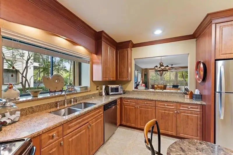 Beautifully updated First-Floor End Unit in the highly desirable Dunbar Woods at the PGA National resort & Spa. This is a rare first-floor end unit with several windows and natural light. Unit has a beautiful open screened porch with landscaped garden views. This end unit was completely re-painted in 2024, new dishwasher, new washer unit and several new fixtures and interior improvements and renovations. Almost 1,500 sq. feet of first floor living, steps away from the beautiful community pool and 24 hour patrol in a gaited prestigious community. Fully furnished with tasteful upgrades. Set up your private showing today! Offering 3 bedrooms and 2 full baths, this light-filled residence features an inviting open-concept layout with expansive windows and a spacious tiled, screened-in patio. Three oversized sliding doors fully open to create a seamless indoor-outdoor living experience—all on one level for effortless living. The entry door is only a few steps from the designated parking. The 3rd BR is currently set up as an office. The stunning kitchen boasts marble countertops, recessed lighting, and newer appliances. Both bathrooms in the condo are tastefully done and feature beautiful tile work and hardware - one bath with a stand up shower and the second with a tub! This is a massive unit with 1,434 Sq ft of living space! Additional features include an in-unit washer and dryer, serviced A/C condenser unit, newer washer and dishwasher— move right in with ease. Dunbar Woods is a peaceful enclave just steps from the community pool. Enjoy all the conveniences of the PGA National community, including on-site dining, shopping, entertainment, and world-class amenities. Ideally located only 25 minutes from PBI Airport. One of the finest units in the complex—this opportunity won't last! Easy to show—contact the agent today.