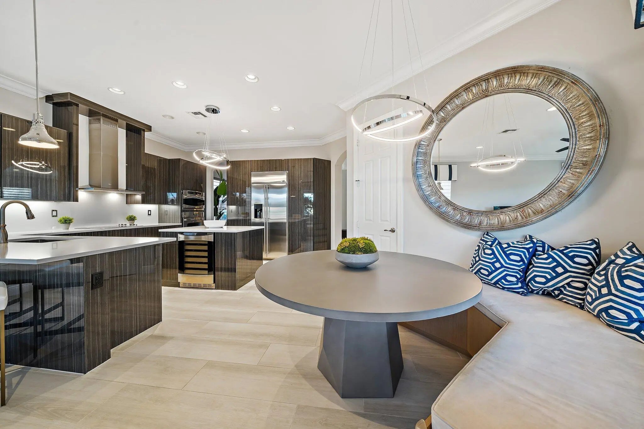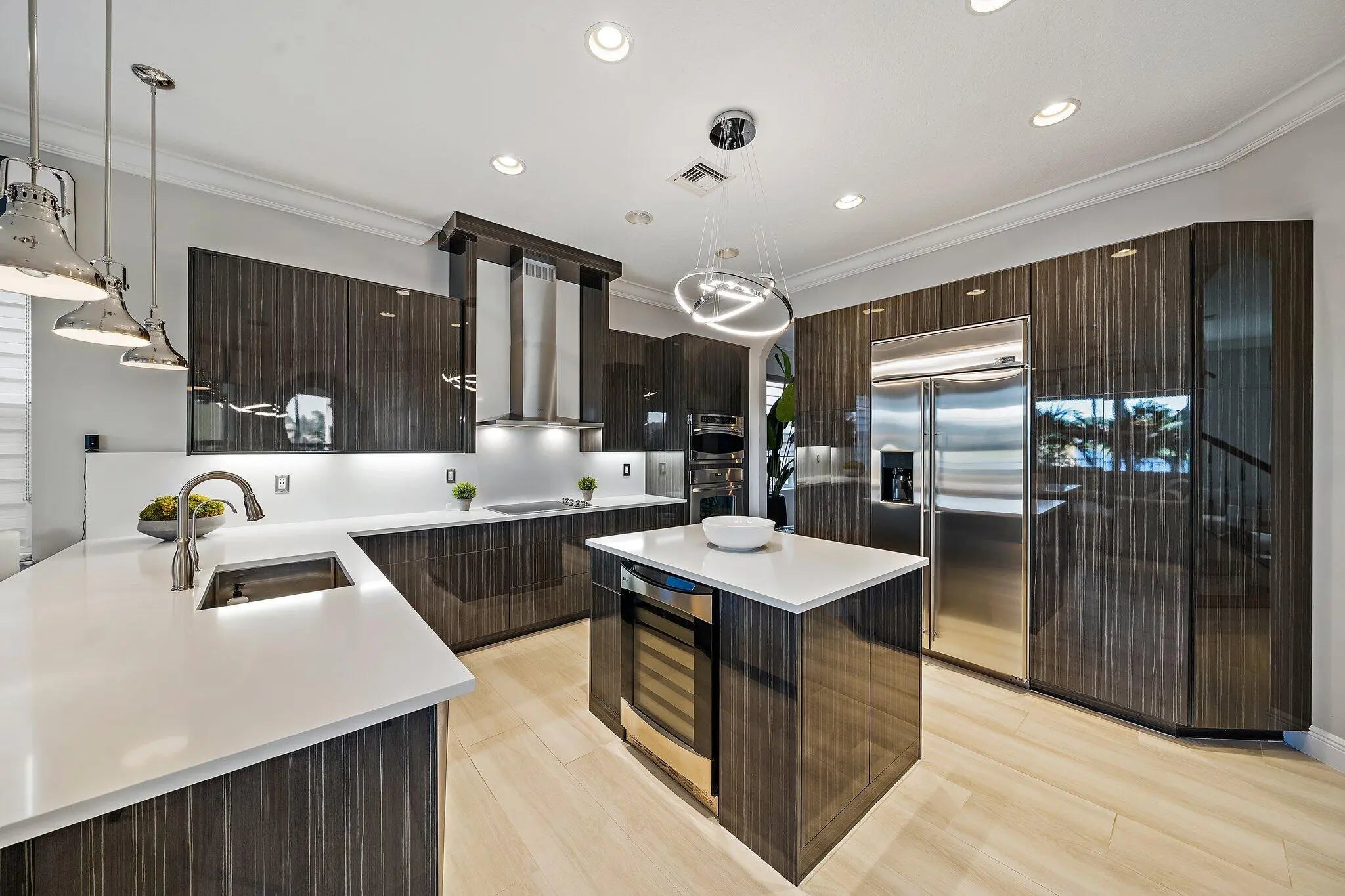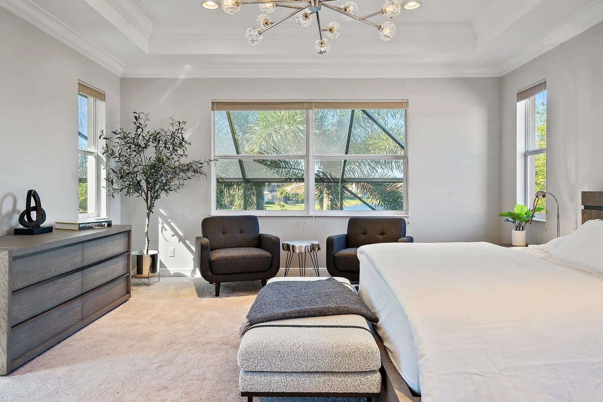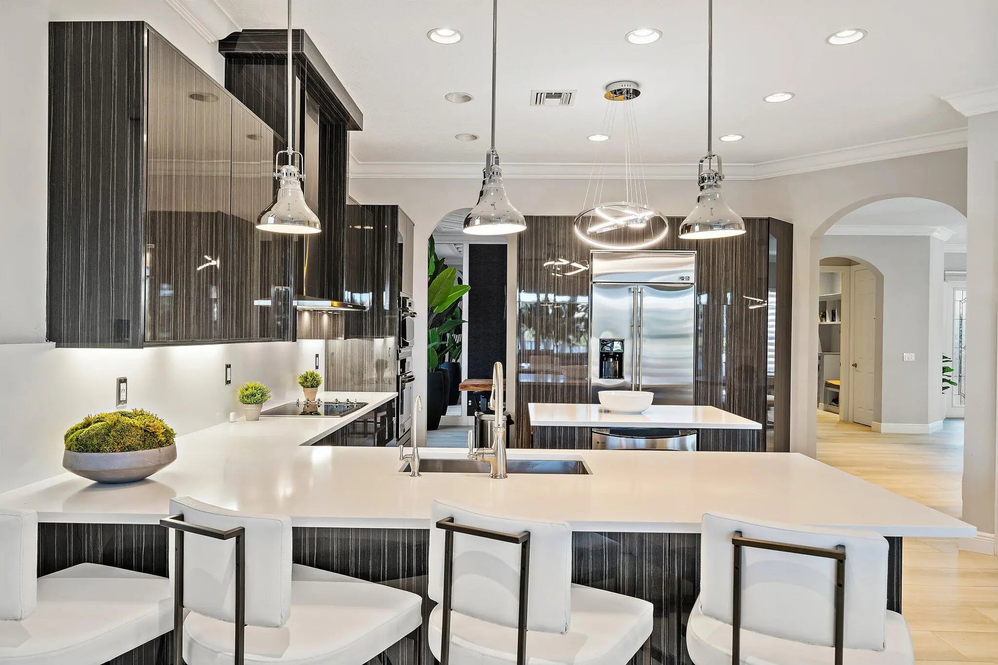 Located in the gated Paloma community in Palm Beach Gardens, this 5-bed, 4-bath property is a luxury lakefront dream with stunning water views, massive family room, chef's kitchen, formal and casual dining areas, media room and several living spaces, this home elevates both entertaining and everyday living. The rear is fitted with a two-story sunroom with solar screening, a salt water pool/spa and a quaint back patio for grilling. The large master suite boasts custom millwork, lake views, sitting area, large custom closets, spa bath and a private door to the sky deck terrace. The climate-controlled 3-car garage. With an office, tons of custom storage and top-of-the-line finishes throughout along with many updates to flooring, mechanicals, lighting and electronics define luxury.
