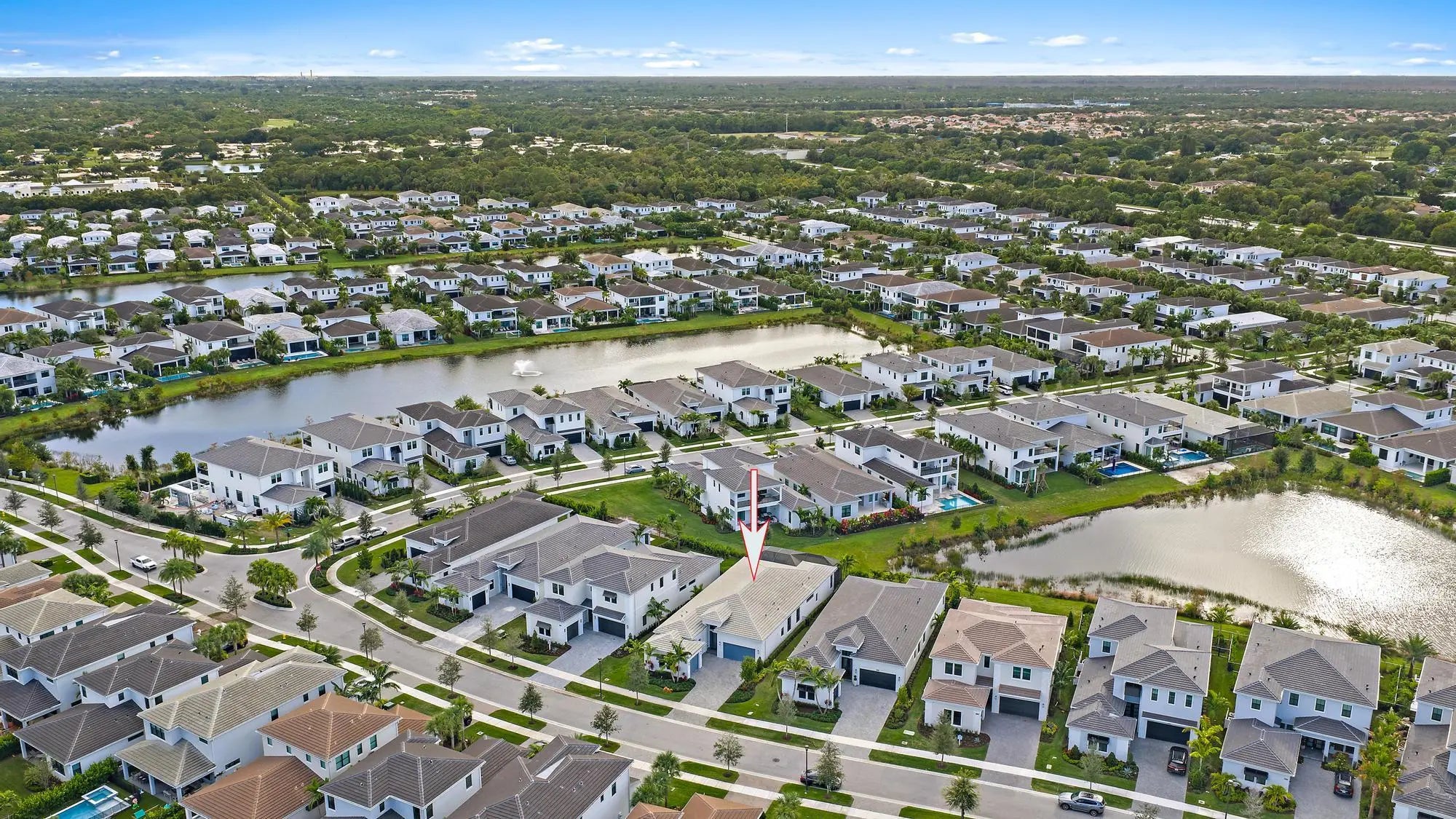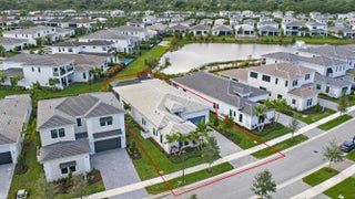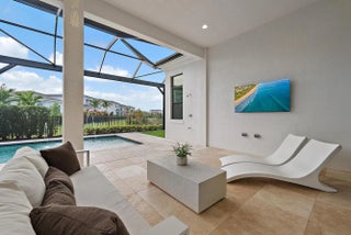A sanctuary of balance and design, this one-level home spans over 3,000 SQ. FT. of living space with 3 bedrooms, 3.5 baths, and an oversized den or 4th bedroom. The grand foyer features 17-ft. ceilings, and 12 ft. throughout. Only one owner of this new construction home that closed in 2024. The kitchen's statement island anchors the space and the kitchen features a full quartz backsplash, acrylic touch-latch cabinetry, and GE Monogram appliances complemented by Restoration Hardware lighting. The serene primary suite features wood floors, a floating double vanity, soaking tub, walk-in shower, and views of the saltwater pool. California Closets and roller shades in all rooms; automatic shades in the master, great room and den. Outdoors, relax on the travertine patio with screen enclosure, artificial turf, and partial lake view that evokes a private resort ambiance. Artistry residents have a gated entrance and exclusive access to a contemporary clubhouse with fitness center, resort-style pool, basketball & bocce courts, and more. Benefit from A-rated schools and proximity to pristine beaches, upscale shopping, exquisite dining, and golf courses. A home this special won't last long.