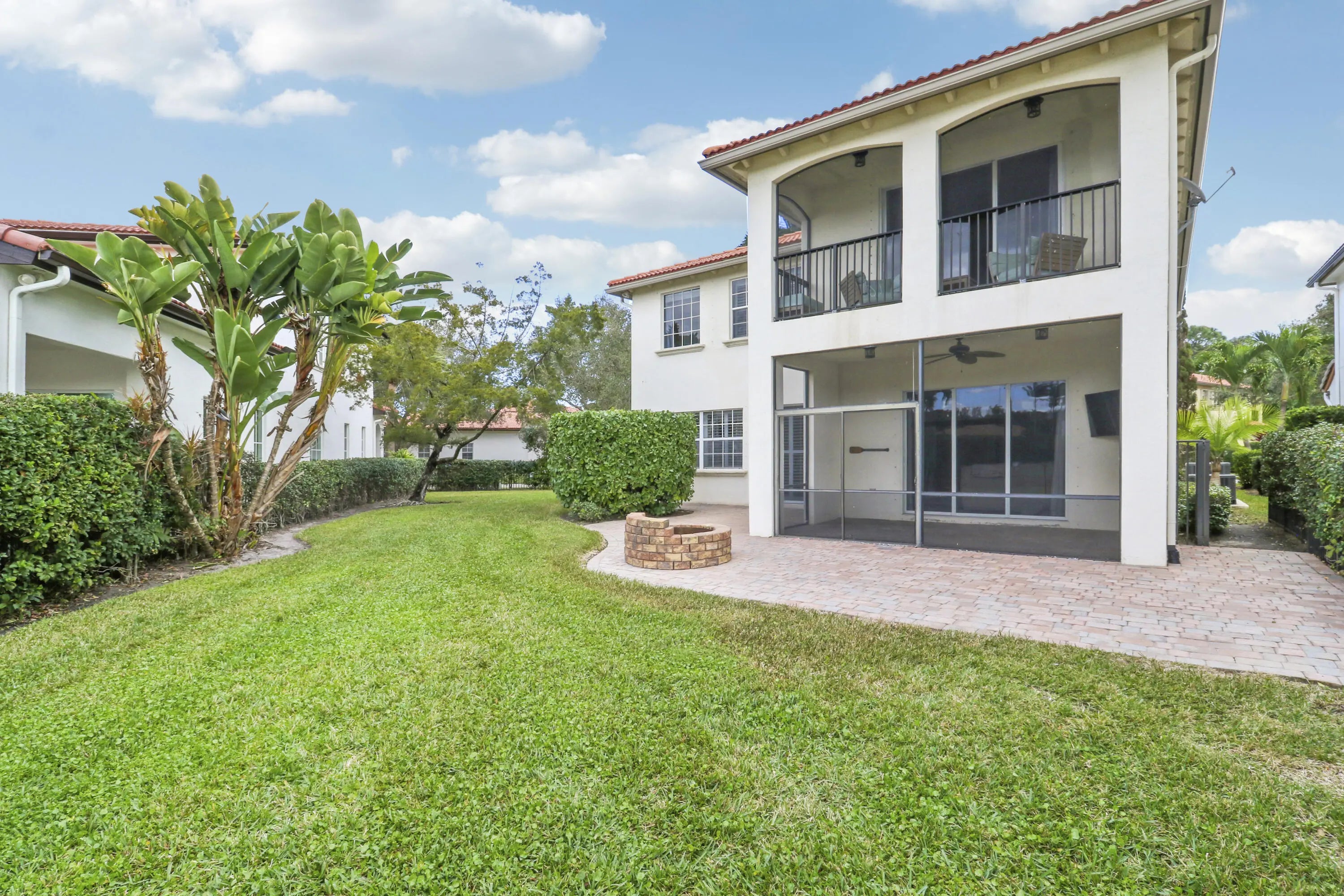 Located on one of Evergrene's premier streets, this custom 5 Bed / 3.5 Bath home offers a spacious layout perfect for everyday living. The first floor features a grand living room seamlessly integrated with a dedicated dining area, a cozy family room with elegant custom cabinetry, an enhanced kitchen with extended counter space, a separate private den/office, powder room, and a large screened lanai. The angular staircase leads to the 2nd level which includes a large master suite featuring its own private screened patio, 4 additional guest bedrooms, 2 guest bathrooms, and a spacious landing area that serves as a flexible loft-like space. Extra large lakefront lot featuring an extended paver patio and a brick fire pit. Upgrades include a new HVAC system and hurricane protection throughout.