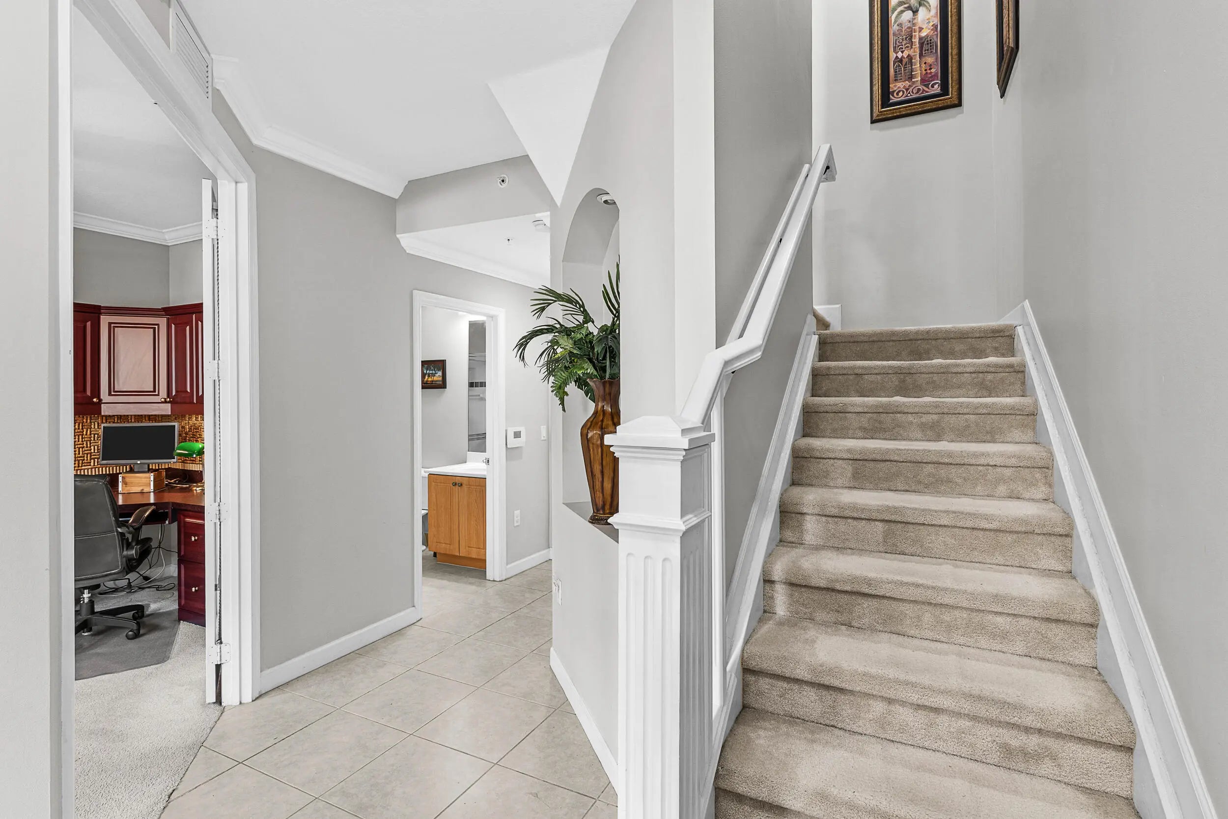 Incredible opportunity to own in the heart of Palm Beach Gardens within the highly desirable Harbour Oaks community. This well-maintained townhome offers an ideal blend of space, flexibility, and location, featuring a 2-car garage and a versatile ground-floor suite complete with a built-in Murphy bed, French doors, and a full bath—perfect for a guest suite, home office, or third bedroom. The main living areas are light-filled and inviting, complemented by newer appliances and a newer A/C for peace of mind. Enjoy tranquil lake views and one of the community's most desirable locations, just steps from the clubhouse and resort-style pool. Freshly painted and thoughtfully designed, the home features two spacious primary suites with large closets, impact glass windows on the second and third floors, and multiple private terraces ideal for morning coffee or evening relaxation. Harbour Oaks is a gated, pet-friendly community known for its exceptional amenities, including a resort-style pool and spa, fitness center, clubhouse, playground, and scenic walking areas. The HOA fee also covers cable, fiber optic high speed internet, and water! All of this is just minutes from world-class shopping and dining at The Gardens Mall and Downtown at the Gardens, as well as the area's beautiful beaches. Whether you are looking for a full-time residence, seasonal retreat, or investment opportunity, this property offers outstanding value in one of Palm Beach Gardens' most convenient and sought-after locations.