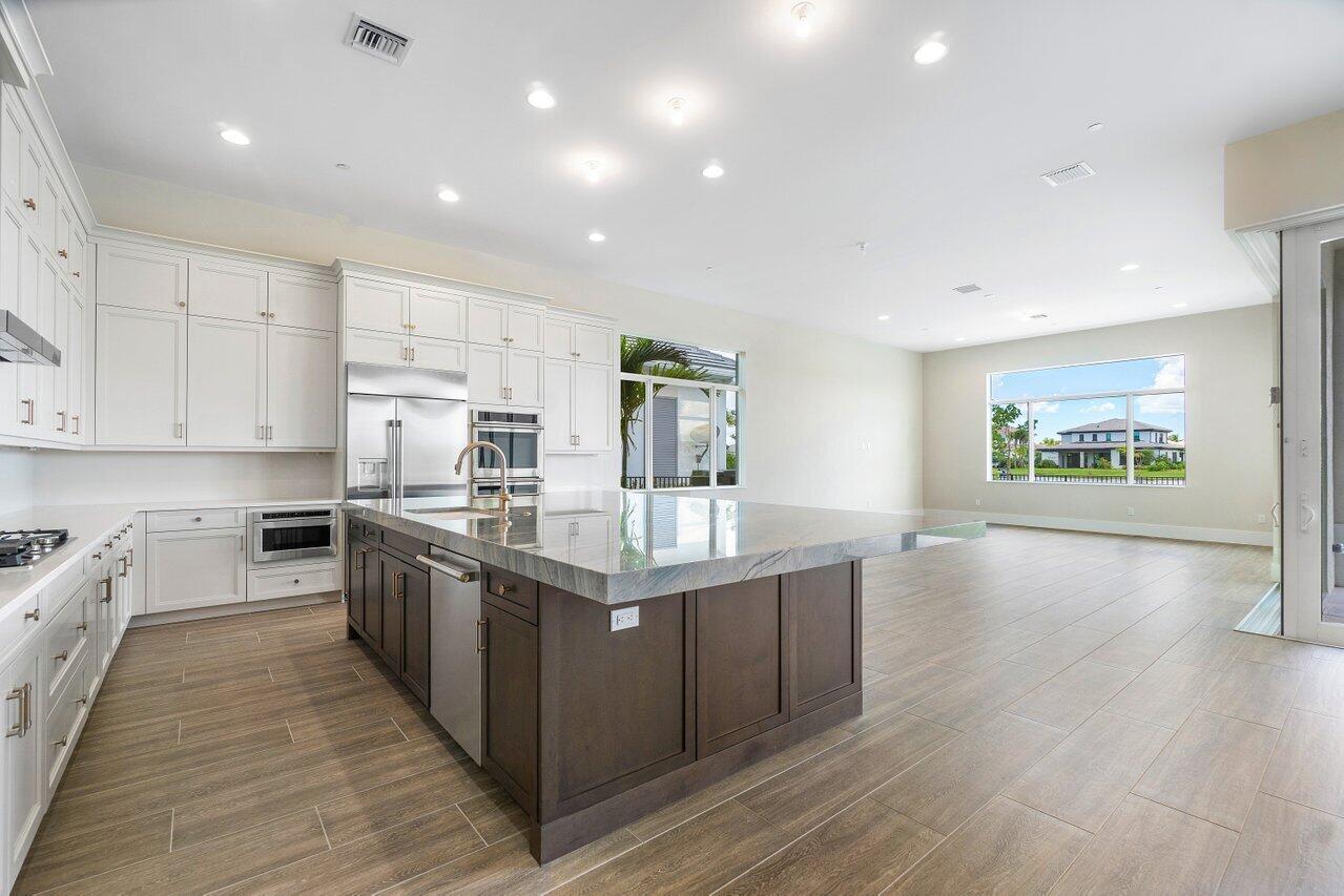 Welcome to your dream home in the prestigious Coral Isles of Avenir! Never lived in! This brand-new, 2024-built residence on a premium lot with lake view offers nearly 4,000 square feet of luxurious living space. Thoughtfully designed for modern comfort, Kenco's Cozumel floor plan features 3 beds/3.5 baths, a den, and 3 car garage. This extremely open design seamlessly integrates the living, dining and kitchen areas - perfect for entertaining! Gourmet kitchen features a large center island, GE monogram appliances, including a double oven and gas stove. Primary suite offers his and her closets, dual sinks, a large walk in shower/soaking tub, and breathtaking lakeside views. Enjoy relaxing under the covered patio or poolside in your very own tropical oasis situated on just over .25of an acre. This is below market rate! Premium lot - price is much less than what you can duplicate on another premium lot. Don't miss this unique opportunity to live in Palm Beach Garden's newest master-planned community, Avenir - spanning over 4,500 acres and offering an unparalleled lifestyle experience! Amenities include a grand clubhouse, restaurants & entertainment, dedicated golf cart paths, pickle ball courts, a 20-acre working farm and more! **some photos are virtually staged