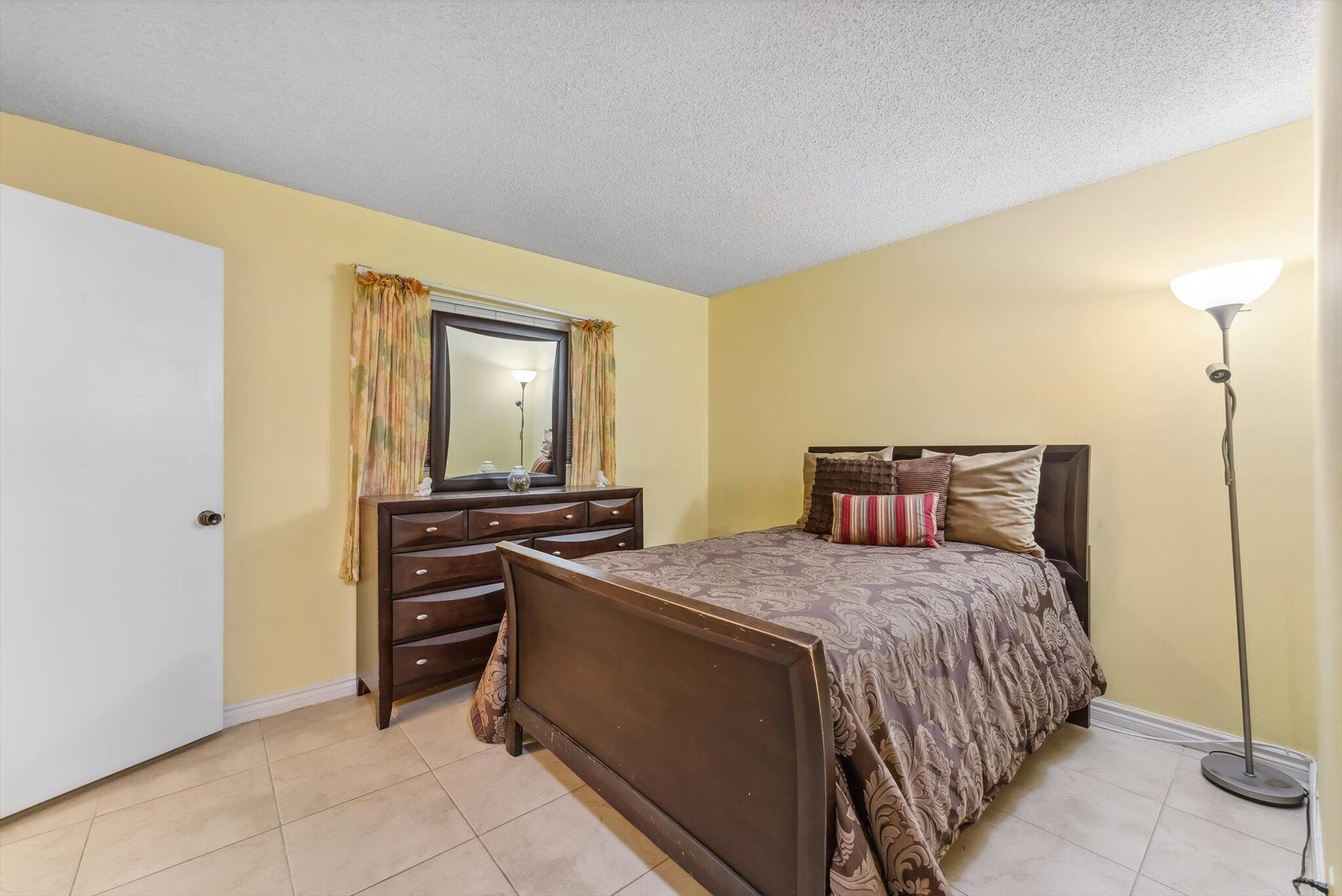 Welcome to this perfectly sized 2 bedroom 2 bathroom first-floor condo in Palm Beach Gardens! The condo features tile throughout, a large kitchen, spacious living and dining rooms, washer/dryer inside, and an expansive enclosed patio. With its central location, you're within minutes to many shops, restaurants, pristine beaches, major highways and PBI airport. NEW ROOF installed 2024.Plenty of indoor and outdoor storage available. Subdivision amenities include: pool, clubhouse laundry and community rooms. HOA FEE covers: water, exterior building maintenance, roof, and insurance. Can be sold with the furniture!