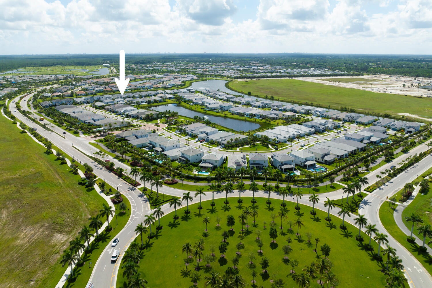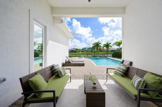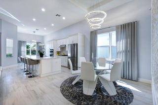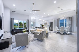 Built on one of the original premium lots in Windgate @ Avenir. This gorgeous waterfront home was built in 2021 with all the new construction kinks worked out, plus significant custom and builder upgrades. Brand new roof and impact windows in 2025. The home is being offered turn-key fully furnished. No detail has been left untouched. As you enter the home, you will immediately notice the custom high end light fixtures throughout and wood plank porcelain tile flooring. The gorgeous kitchen has a huge center island covered with top of the line quartz paired with SS appliances. The living area leads to a wonderful lanai and custom pool overlooking the lake and fountain. The main living area also has custom electric blinds and top of the line ceiling fans.The fully fenced backyard has artificial turf, pristine landscaping, and solar lighting. All 3 bedrooms and the den/office have been upgraded with large plank high end luxury vinyl plank flooring. The primary bedroom has a his and her walk-in closet and separate access to the outdoor lanai and pool deck. Relax in your primary bath with separate his and her vanities, upgraded quartz counter tops, a free standing soaking tub, and separate shower with floor to ceiling tile. Additional upgrades include an entire house Watersoft filtration system, Electric vehicle charger in the garage, and full cabinets and wash sink in the laundry. The new town center at Avenir has begun construction and full build out is years ahead of schedule. A new Palm Beach Gardens Fire/Ems station are now open and serving the community. The new school is under construction as well. Come check out the premiere western community of northern Palm Beach County with amazing amenities, low HOA, and multiple golf course options at your finger tips.