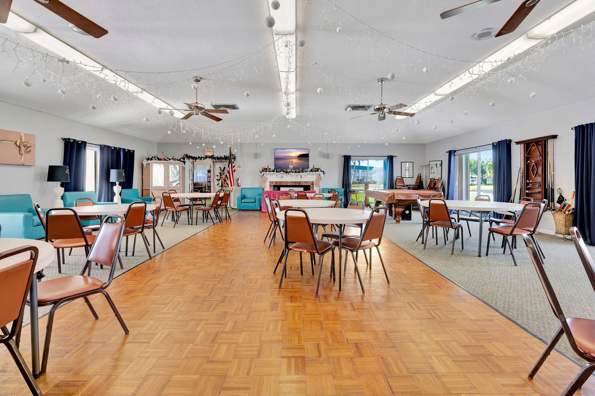 This 2-bedroom, 2-bath first-floor condo is your opportunity to own in a well-maintained 55+ community. Accordion shutters provide peace of mind, and the roof has been freshly coated with cool roof paint, backed by a 15-year warranty.Ready for your personal touch, this unit offers a comfortable layout and a welcoming community lifestyle. Amenities include a pool, clubhouse with a library, social room, and a fully equipped kitchen--perfect for events and gatherings. Residents can take part in a variety of social activities. Cable, internet, water, and sewer are all included in the maintenance fee. Ideally located near shopping, dining, and a fitness center. Just 20 minutes to PBI. Association requires a 650 credit score.