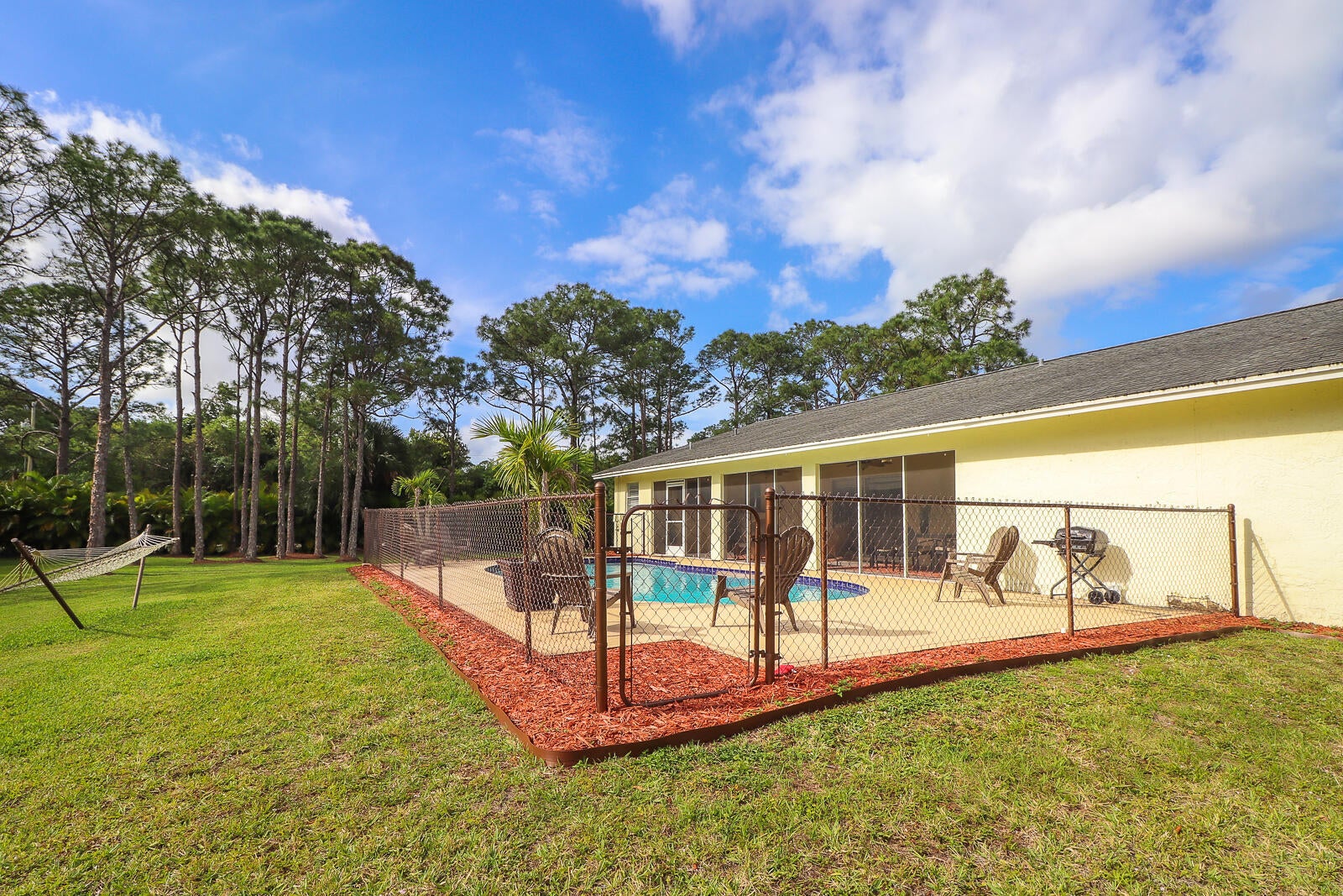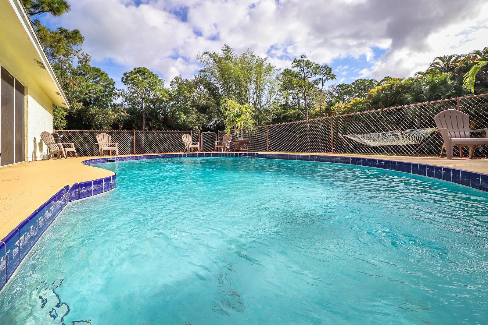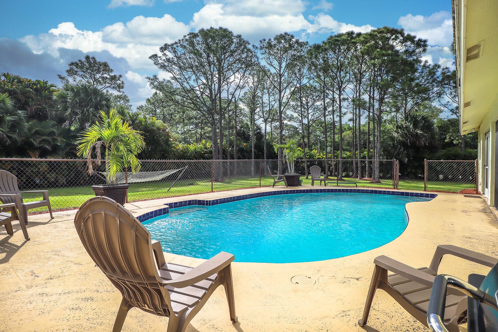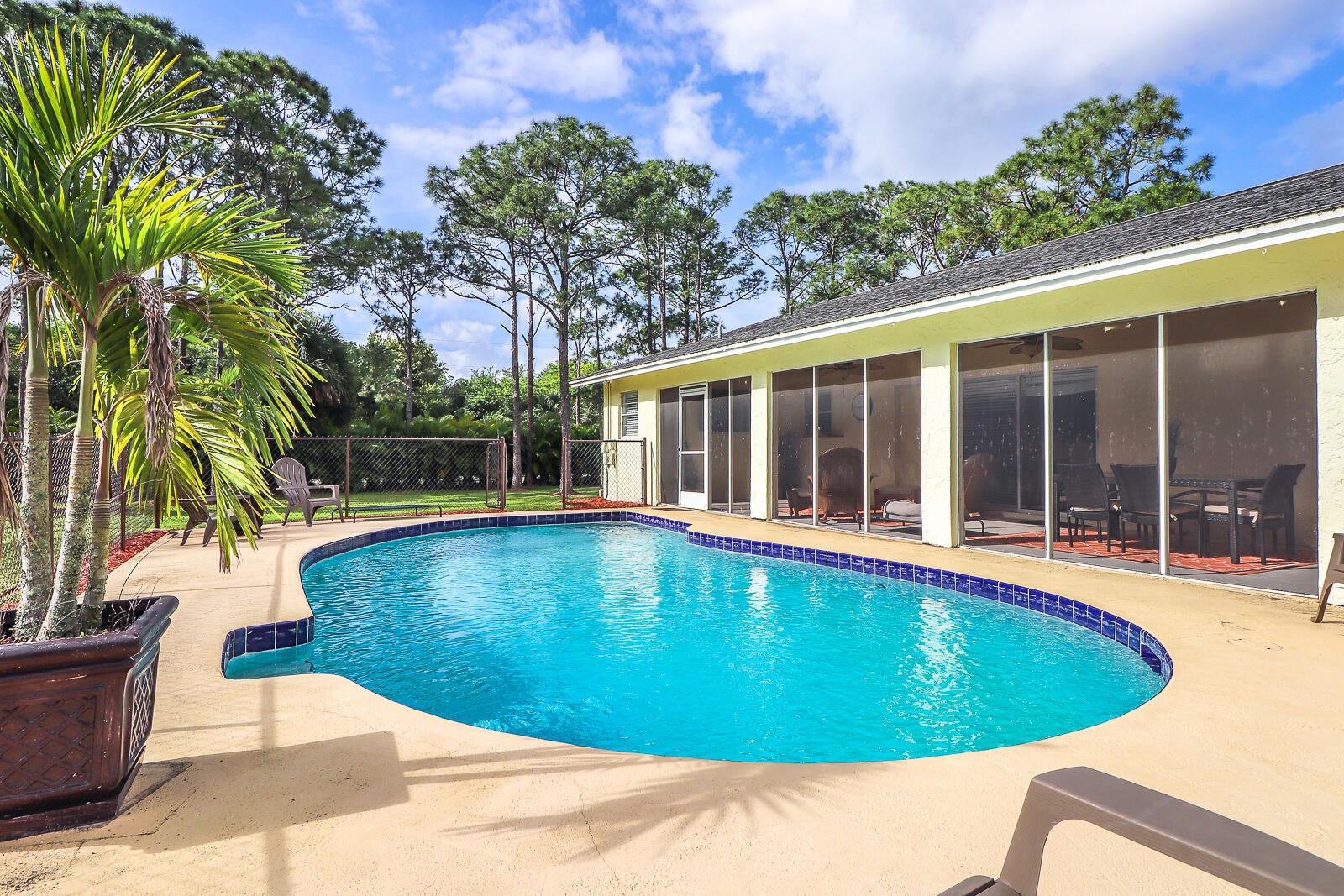 Immaculate CBS 3 bedroom/2 bath/2-car garage home in PB Country Estates. Beautiful pool. Nicely-landscaped 1.16-acre corner lot. Updated throughout - including newly-remodeled master bathroom and cabana bath. Open kitchen features stainless steel appliances, French-door refrigerator, dual-over range, granite countertops, and center island. The screened porch overlooks the beautiful fenced pool area and spacious backyard. Newer A/C. Smart toilets in the bathrooms. This home is hooked-up to city water and located on the corner of a paved road (150th) close to the front section of the subdivision for easy access to area amenities including Alton Town Center, Abacoa, and area beaches. If the lot was vacant the price would be $725,000. ONLY CBS POOL HOME UNDER $1 million on pavementPalm Beach Country Estates features quiet country living with no HOA.
