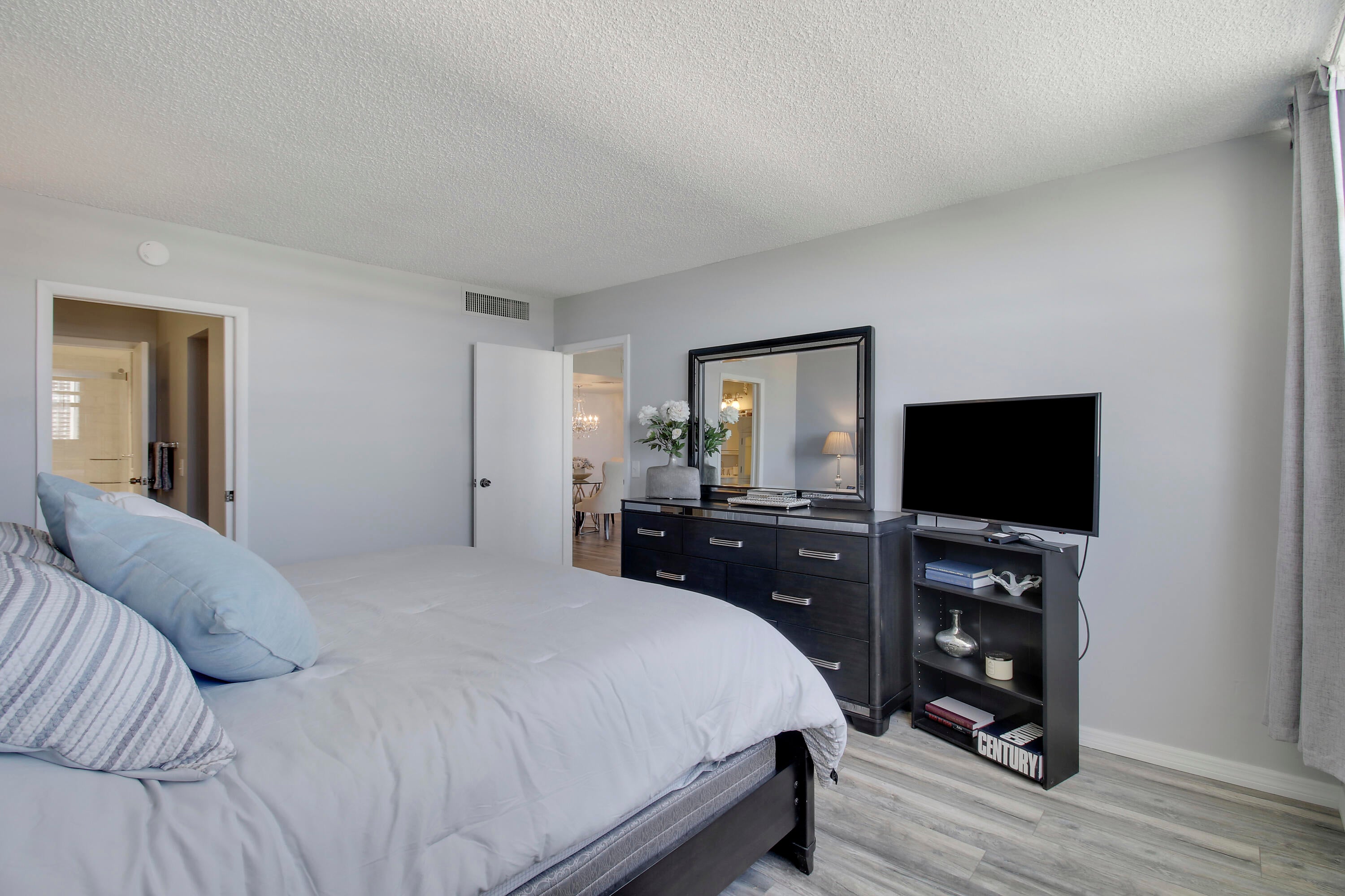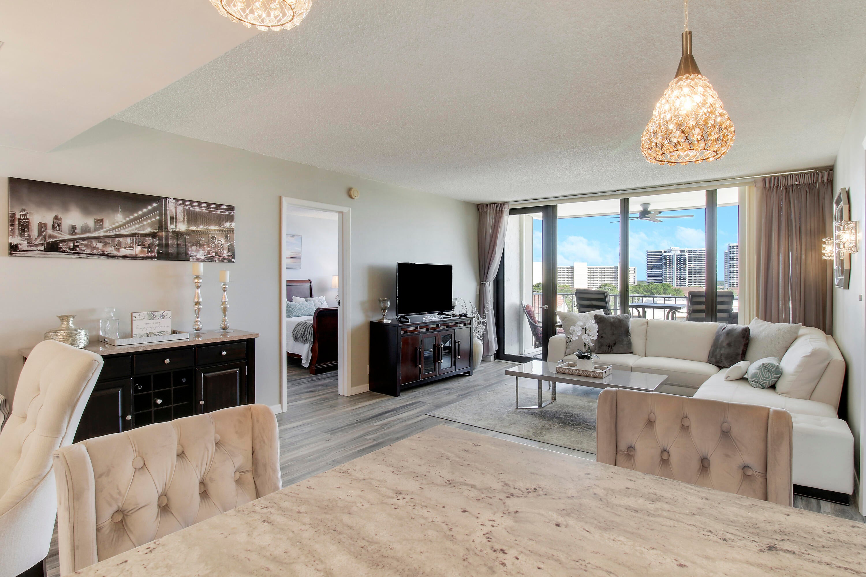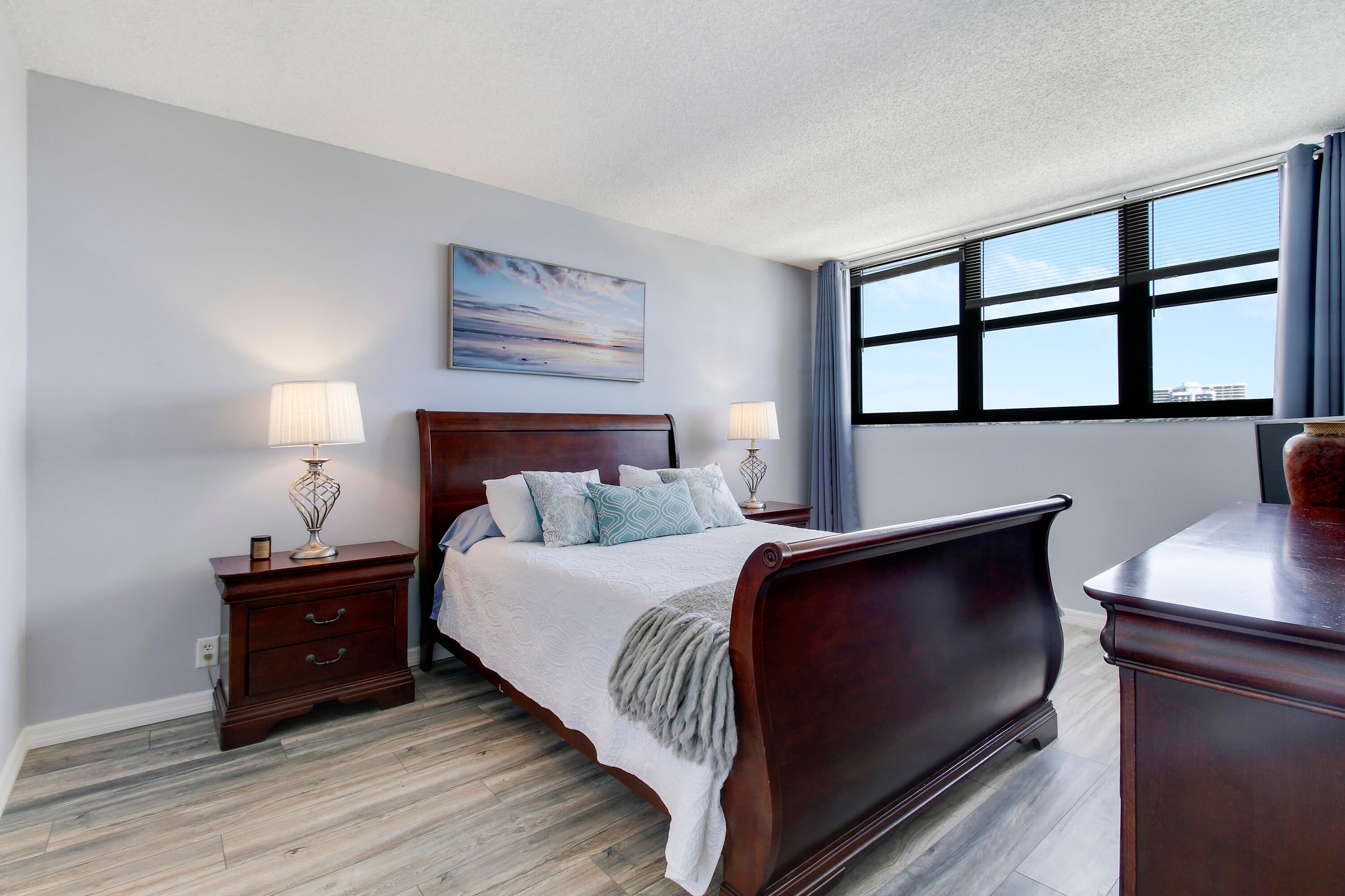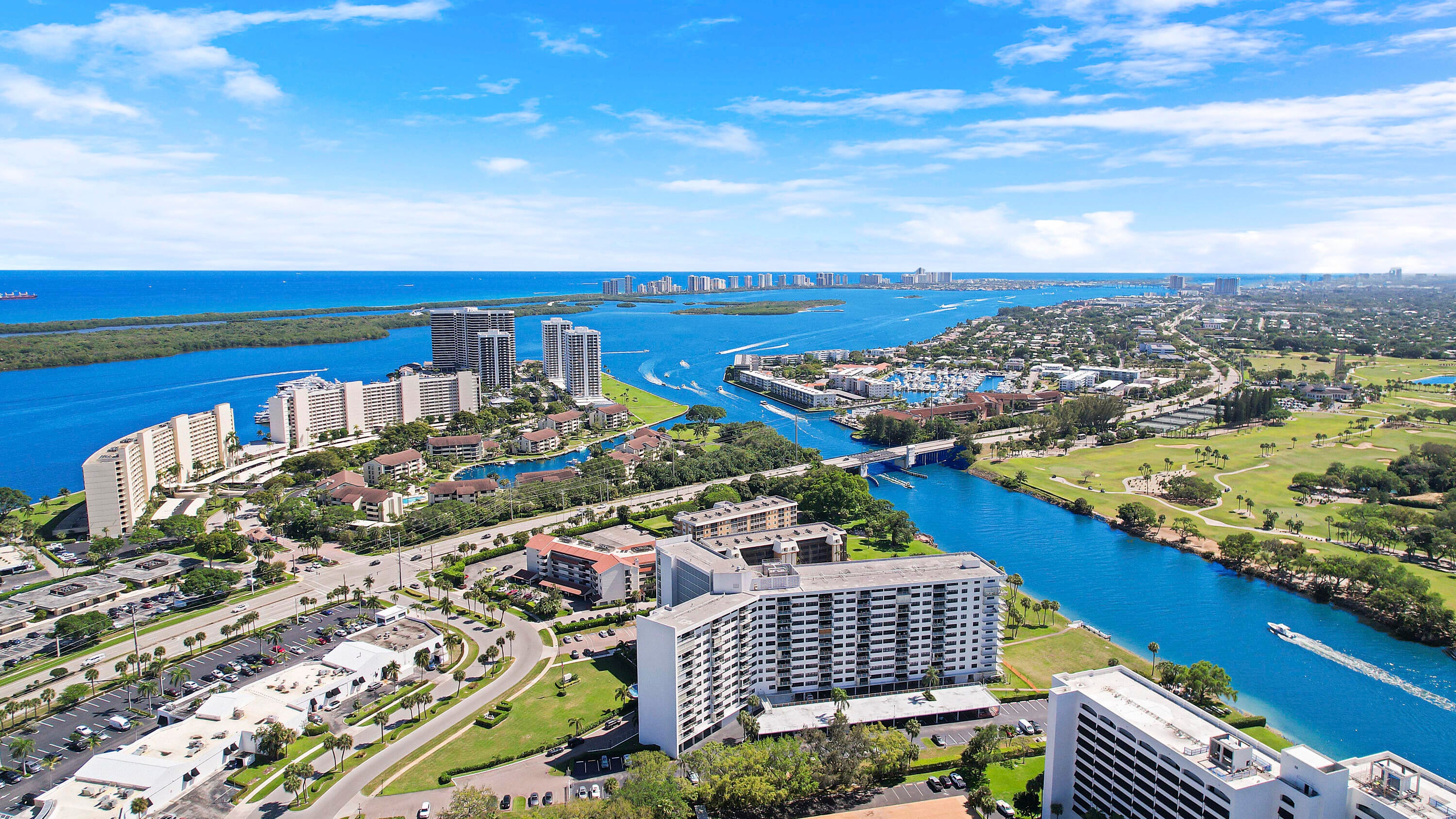 This is an Incredible opportunity to move right into this fully furnished, turn-key condo & start enjoying the FL lifestyle! Watch the sun rise from your balcony with views of the intracoastal, bay & ocean while the coffee brews in your open kitchen, featuring marble countertops, high-end cabinetry, stainless steel appliances, a tile backsplash & added high hats for extra light. Fantastic split floorplan w/ an open living & dining area, foyer & large storage closet. The primary ensuite offers a beautifully renovated bathroom w/ walk-in shower, large closet, & is plumbed for a stackable washer/dryer. Will be sold with everything included.Beautiful & immaculate furnishings, gorgeous lighting, all accessories & kitchen supplies. Buy nothing! To top it off, a sporty 2012 BMW can be included too! The building has undergone the milestone inspections; exterior restoration work has been complete. Enjoy a newly installed tiki hut and a beautifully renovated pool, large grassy area, an updated day dock, and two bocce courts for outdoor fun. Owners are allowed one pet, up to 30 pounds, and will enjoy the fenced-in dog run! The complex also offers a gym w sauna, library, a billiards room, pickleball courts, card & game room, and even storage for bikes or paddleboards/kayaks! For your peace of mind, the building offers 24-hour secured entry. This is a prime location convenient to everything. Just minutes to the nearby stunning beaches, fantastic restaurants, golf, marinas and just 20 minutes to PBI airport. This property offers everything you need for a comfortable & active lifestyle. The HOA fees cover cable, internet, building insurance, roof maintenance, water, sewer, management, reserves, landscaping & all amenities. Just pay for electric. This unit comes with two parking spots, one covered, and one open, both are within gated parking areas. This condo is beautiful and easy to show on short notice. Don't miss this turnkey, fully furnished unit!