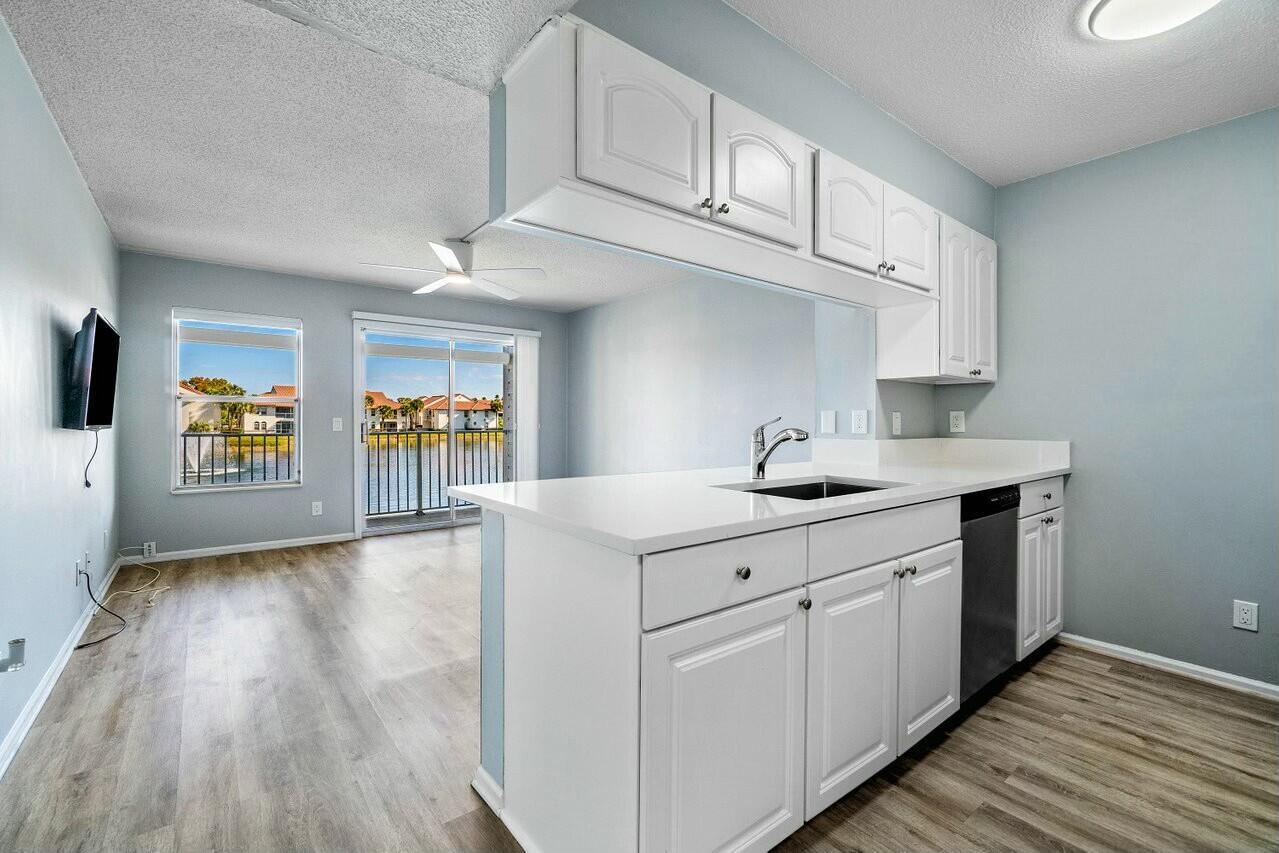 Enjoy breathtaking panoramic lake views from this charming 1-bedroom, 1-bathroom condo in the highly desirable Cypress Point community of PGA National. This first floor unit offers ultimate convenience and tranquility, featuring a covered balcony perfect for relaxing and enjoying the serene waterfront setting. Inside, you'll find vinyl flooring in the main living areas, Quartz countertops in both the kitchen and bathroom, and a spacious 4-person snack bar for casual dining. A new central air system was installed last year for added comfort. Cypress Point residents enjoy access to a community pool and on-site laundry facilities. Plus, two pets up to 25 lbs each are welcome! Experience the resort-style lifestyle of PGA National, home to world-class golf, dining, andamenities. Don't miss this opportunity to own a slice of paradise!