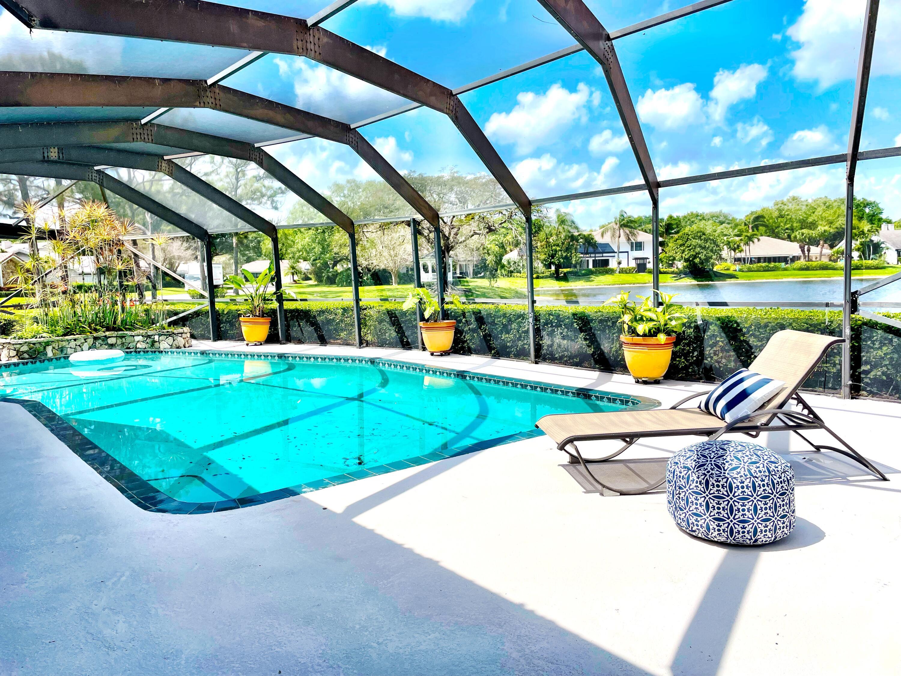 Priced to sell! Totally remodeled, turnkey! Rare opportunity to own in the hidden gem of SHADY LAKES! (large lots, unmatched location & low HOA) Rarer still to own the model home on an oversized 1/3 acre, lakefront, corner lot. This 3/2, pool home was TOTALLY REMODELED IN 2025, sunny & bright, soaring ceilings & skylights, new, open kitchen w/ exotic stone, gas stove, hybrid flooring, multiple eating & sitting areas; new bathrooms w/ marble & natural woods; 6 sets of glass sliders open entire home to the newly screened porch with saltwater pool & lake views; Split floorplan, cabana door, NEW ROOF in 2024, new whole house water filtration, full hurricane protection!; Walk to Fresh Market, fine dining, & nationally recognized tennis/pickleball center. Resort living in the best neighborhood.Home Details -New Roof and skylights in 2024, premier flat cement tiles with upgraded foam vs. nail installation. Full warranty with premier local roofer -Total hurricane protection, full insurance benefit -New Whole House filtration system and Reverse Osmosis for the sink and refrigerator-- clean, safe water from every faucet and water source . All new light fixtures, fans, outlets, switches, door handles, and locks -Totally New Kitchen with high-level, rare patterned, granite counters, never-been-used wood cabinets, UPPER and lower cabinet lighting, new high-end appliances, gas range, workspace kitchen sink with built in drying rack and colander, new plumbing and valves. -Brand new, Extra tall, specialty Carrara Marble primary shower with frameless door, Brand new guest bath - Double primary walk-in closets -New high-end Flooring throughout. New upgraded tall craftsman base molding and trim throughout -Newer A/C continually serviced and maintained -Professionally landscaped, full sprinkler system and automatic drip lines installed on back patio -Brand new pool screens with a 5-year warranty for any tears or storm damage -Salt water pool, with newer salt chlorinator, virtually maintenance-free -Spacious laundry room with ample additional storage and counter space -2-car garage, with storm door, workbench -Newly painted throughout, Benjamin Moore high-grade paint in Chantilly Lace - Attic access through pull-down stairs in garage, provides additional long-term storage - Oversized 1/3 of an Acre lot in PRIME Palm Beach Gardens, walk-to-everything location, rare find - Timber Trace Elementary is 10/10, according to Great Schools - Two leases/year allowed (high value seasonal and Honda Classic/PGA rental area)
