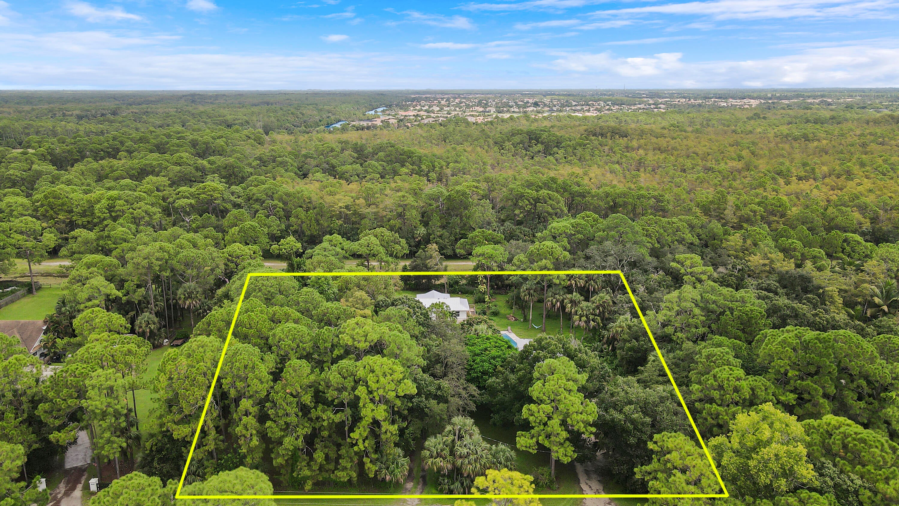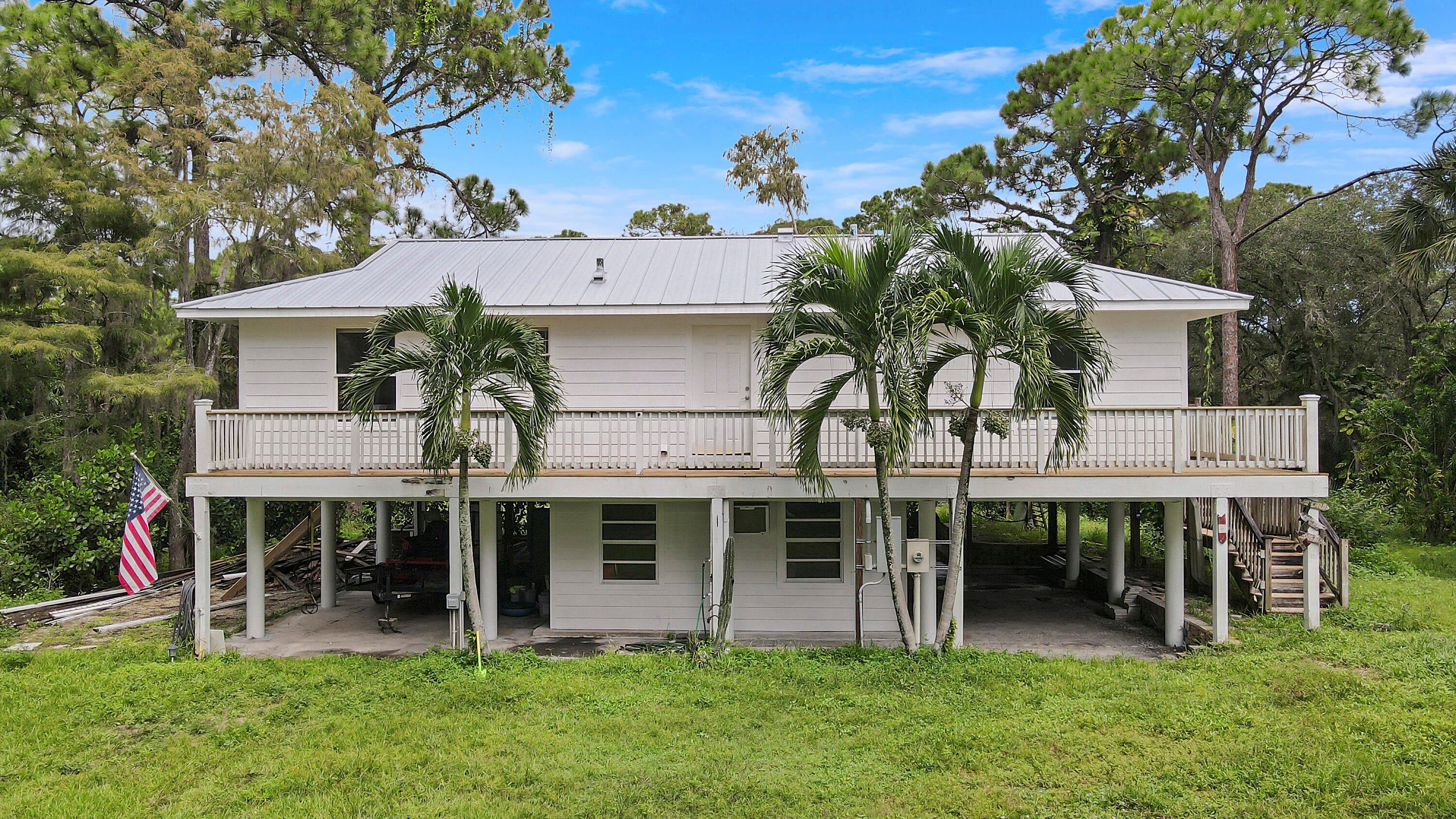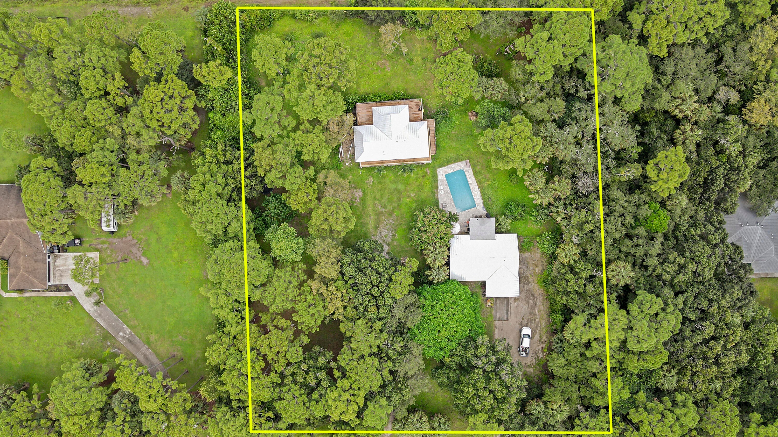 Welcome to the Country! With 1.8 acres, just off a paved road, city water, and friendly neighbors, this property is one you won't want to miss. The main home is a 3 bed / 2 bath with a one car garage. The guest house is a 2 bed / 2 bath sitting on stilts located at the rear of the property. This unique unit has amazing views of a nature preserve where deer, turkey, and other wildlife can be observed. An updated pool and patio are sandwiched between the two structures. With 2 brand new standing seam metal roofs in place, and updates to floors, bathrooms, and kitchens, all you will need is your suitcase and your toothbrush. Come and see why many of us love calling Palm Beach Country Estates home, away from the bustle but fingertips away from all the Gardens/Jupiter has to offer.