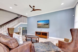 Discover the perfect blend of privacy, convenience, and comfort in this sought-after corner townhome in the gated community of Hampton Cay. Set in one of the most desirable spots in the neighborhood, this end-unit offers extra windows for natural light and backs to a peaceful green space that feels like a private backyard retreat.The open floor plan features a kitchen with breakfast bar and built-in storage banquette, hardwood floors, custom crown molding, and plantation shutters. With 3 bedrooms, 2.5 baths, two balconies, and a two-car garage, this home has been meticulously maintained--barely lived in and used only seasonally. Includes a new hot water heater, newer AC, and is a short walk to the pool, clubhouse, and fitness center.