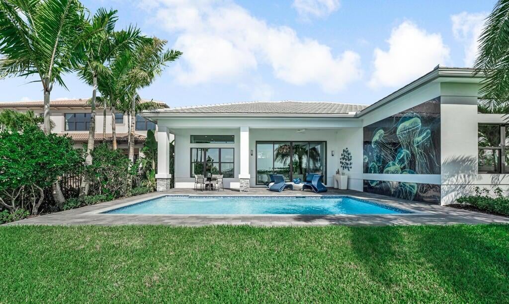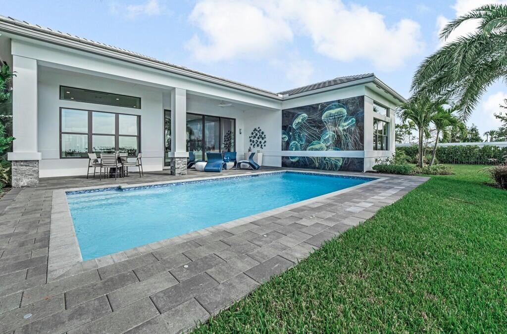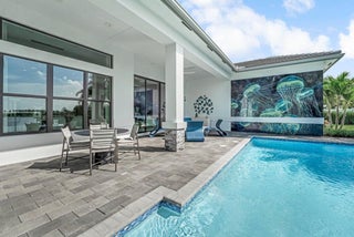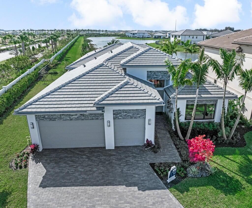 Discover the exceptional Adonis model, perfectly situated on Lot 66, offering breathtaking lake views within the prestigious Avenir community of Palm Beach Gardens. With an estimated delivery date of October/November 2025, this brand-new Coastal Scheme 7 residence boasts 4 bedrooms, 4.5 bathrooms, a den, and a 3-car garage, encompassing a spacious 3,240 square feet of air-conditioned living space (4,265 total sq ft). Imagine a lifestyle of elegance and tranquility, complete with your own private pool and a gas stub-out ready for your future summer kitchen.The Adonis model at Apex is renowned for its thoughtful design and luxurious finishes. Step inside and be greeted by a light-filled, open floor plan, seamlessly connecting the main living areas for effortless flow and entertaining. The gourmet kitchen, the heart of this home, will be a chef's dream. The adjacent living and dining areas offer stunning views of the lake, creating a serene backdrop for everyday living. A versatile den provides the perfect space for a home office, media room, or guest suite. Retreat to the master suite, a true sanctuary designed for relaxation. Expect a spa-like ensuite bathroom, along with a spacious walk-in closet. Three additional well-appointed bedrooms, each with ensuite access or conveniently located near a full bath, ensure comfort and privacy for family and guests. Embrace the Florida lifestyle in your outdoor oasis. Step through sliding glass doors to your lanai and envision enjoying sunny afternoons by your private pool, all while taking in the picturesque lake views. The gas stub-out offers the exciting possibility of creating your dream outdoor summer kitchen. Living in Avenir means enjoying a resort-inspired lifestyle. This premier community in Palm Beach Gardens offers an array of world-class amenities, including a stunning clubhouse, state-of-the-art fitness centers, multiple sparkling pools, tennis and pickleball courts, playgrounds, and miles of scenic walking and biking trails. Conveniently located, Avenir provides easy access to top-rated schools, upscale shopping at the Gardens Mall, diverse dining options, vibrant entertainment venues, and the beautiful beaches of the Treasure Coast. Don't miss this exceptional opportunity to own a brand-new Adonis model home with a lake view and private pool in the highly sought-after Avenir community.