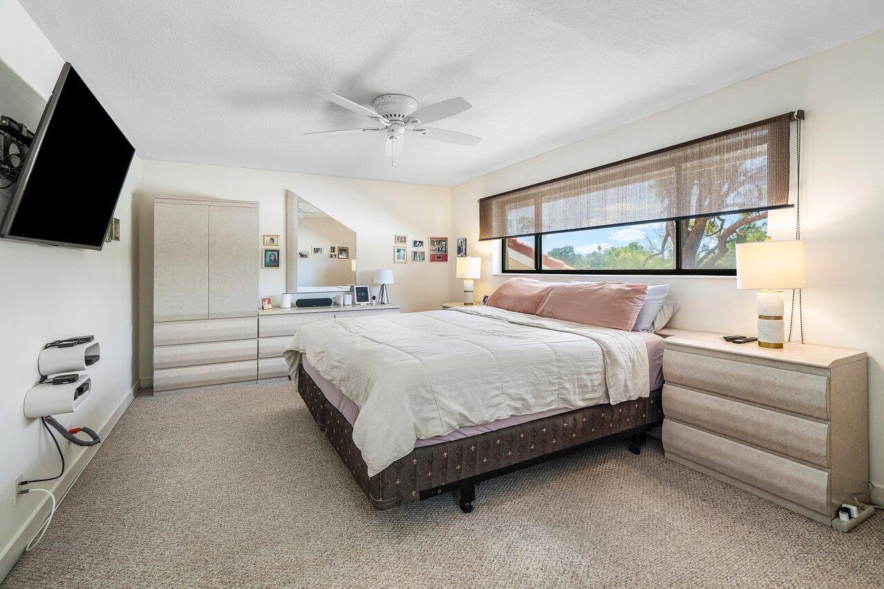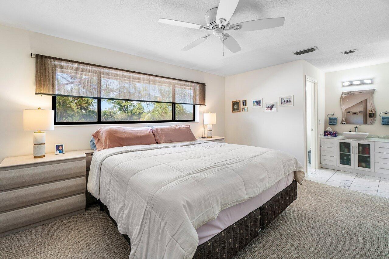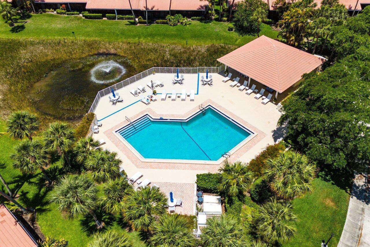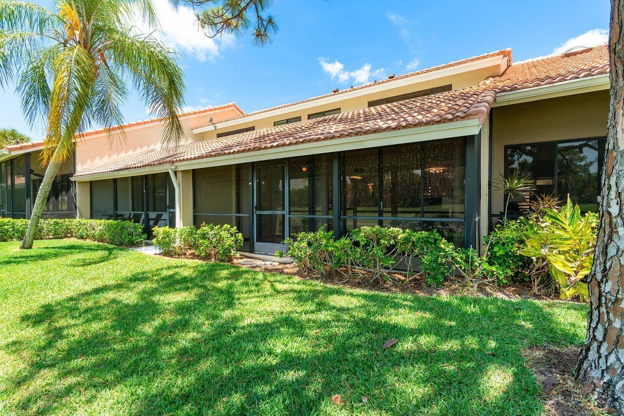 Discover resort-style living at its finest in this rarely available three-bedroom, three-bathroom home, ideally situated in one of PGA National's most sought after Golf Course locations. This low-maintenance gem is within a five minute leisurely walk to the PGA National Resort and PGA's top-tier, fine dining. Enjoy stunning golf course views overlooking the 10th hole of the Fazio course from your own backyard. with a desirable southern exposure. This home is designed for comfort and style, featuring high volume ceilings, an updated kitchen with granite countertops, and a beautiful community pool just steps away.Experience worry-free living with a nearly new HVAC system, under a transferable 10-year warranty, and a high-efficiency LG washer and dryer. The home is equipped with updated bathrooms, a programmable thermostat, designer light switches, an advanced alarm system, video surveillance throughout the property, and a programmable musical doorbell to play your favorite tunes when your visitors arrive. Whether you're looking for a secure, maintenance-free lifestyle or the ultimate country club experience, this home has it all. Don't miss this fantastic opportunity to own a piece of paradise!