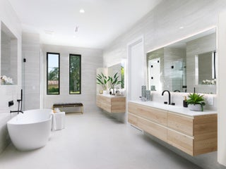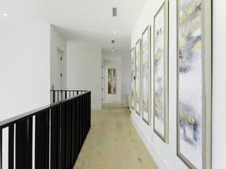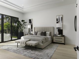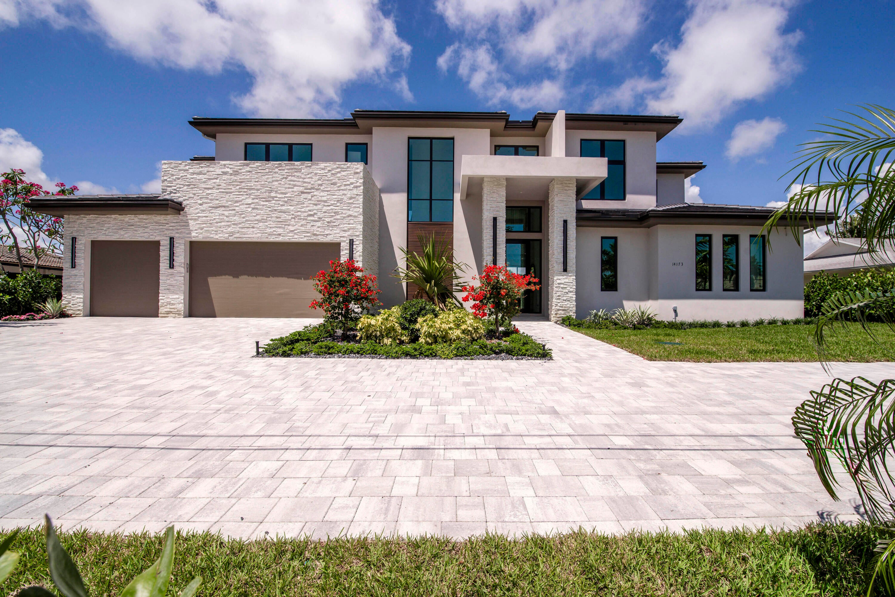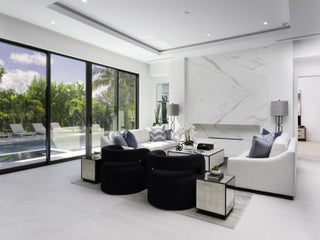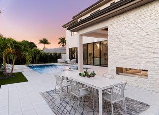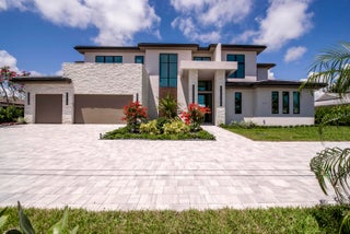 Balancing modern elegance with a true waterfront lifestyle, this brand-new construction by Dell Development is a standout offering in the prestigious boating community of Paradise Port, located in the heart of Palm Beach Gardens. This exceptional 4,920-square-foot estate boasts 95 feet of waterfrontage with a brand-new seawall and delivers refined luxury in a thoughtfully designed two-story layout. Featuring 5 bedrooms and 6 bathrooms, the home seamlessly blends sophisticated design with functional comfort. From the moment you enter, clean architectural lines and a light-filled open layout make a lasting impression. The main living area showcases neutral-toned large-format tile, a sleek stone-surround fireplace, and expansive 10-foot floor-to-ceiling sliders that blur the linebetween indoor and outdoor living. The open-concept kitchen and dining area is both elegant and highly functional, anchored by a wall of custom sleek cabinetry and outfitted with premium Sub-Zero and Wolf appliances. Alabaster-toned lower cabinets pair beautifully with coordinating quartz countertops, full-height backsplashes, and a striking waterfall island. The ground-floor primary suite serves as a serene private retreat, featuring warm European white oak flooring, dual walk-in closets, and a spa-style bathroom with a soaking tub, dual showers, and dramatic floor-to-ceiling large-format porcelain tile. Upstairs, a spacious loft and office provide flexible living options, while four additional guest suites each offer en-suite baths and walk-in closets, ensuring privacy and comfort for family and guests. Outdoor living is equally impressive, with a full summer kitchen, a sparkling pool and spa with elegant deck jets, and a see-through fireplace with a built-in media wall. The open-air patio is framed by lush tropical landscaping and includes multiple zones for entertaining, sunbathing deck, lounge seating, and al fresco dining area. Just off the patio, a private stairway leads to the dock on a tranquil interior canal with direct access to the Intracoastal. Completing this exceptional backyard paradise is an outdoor tackle room for convenient boat and gear storage.