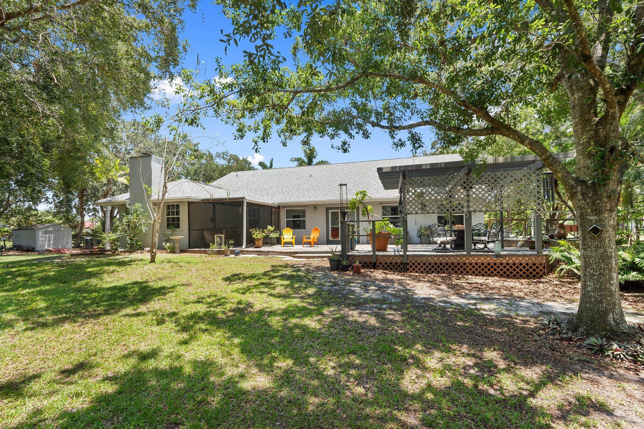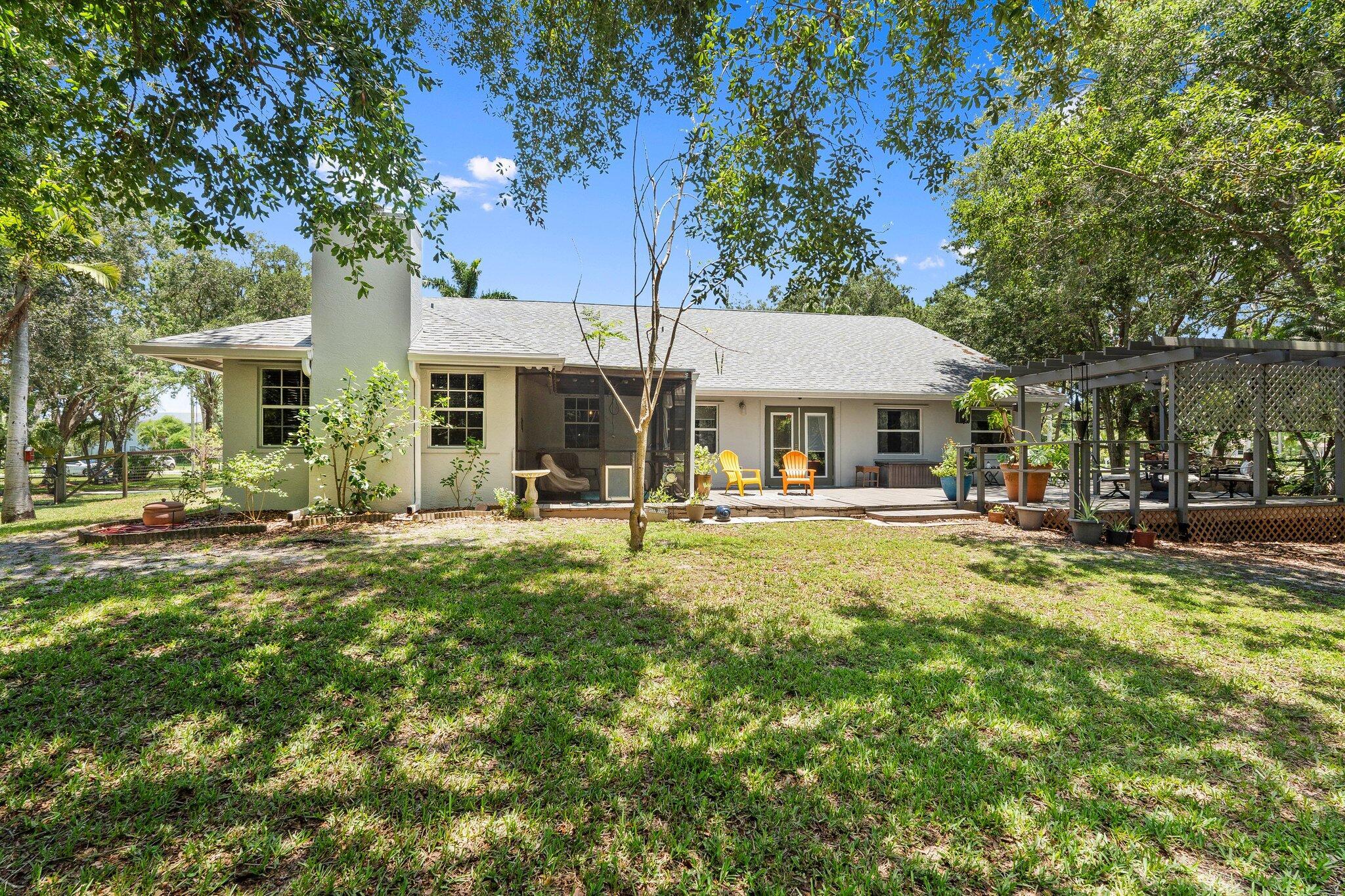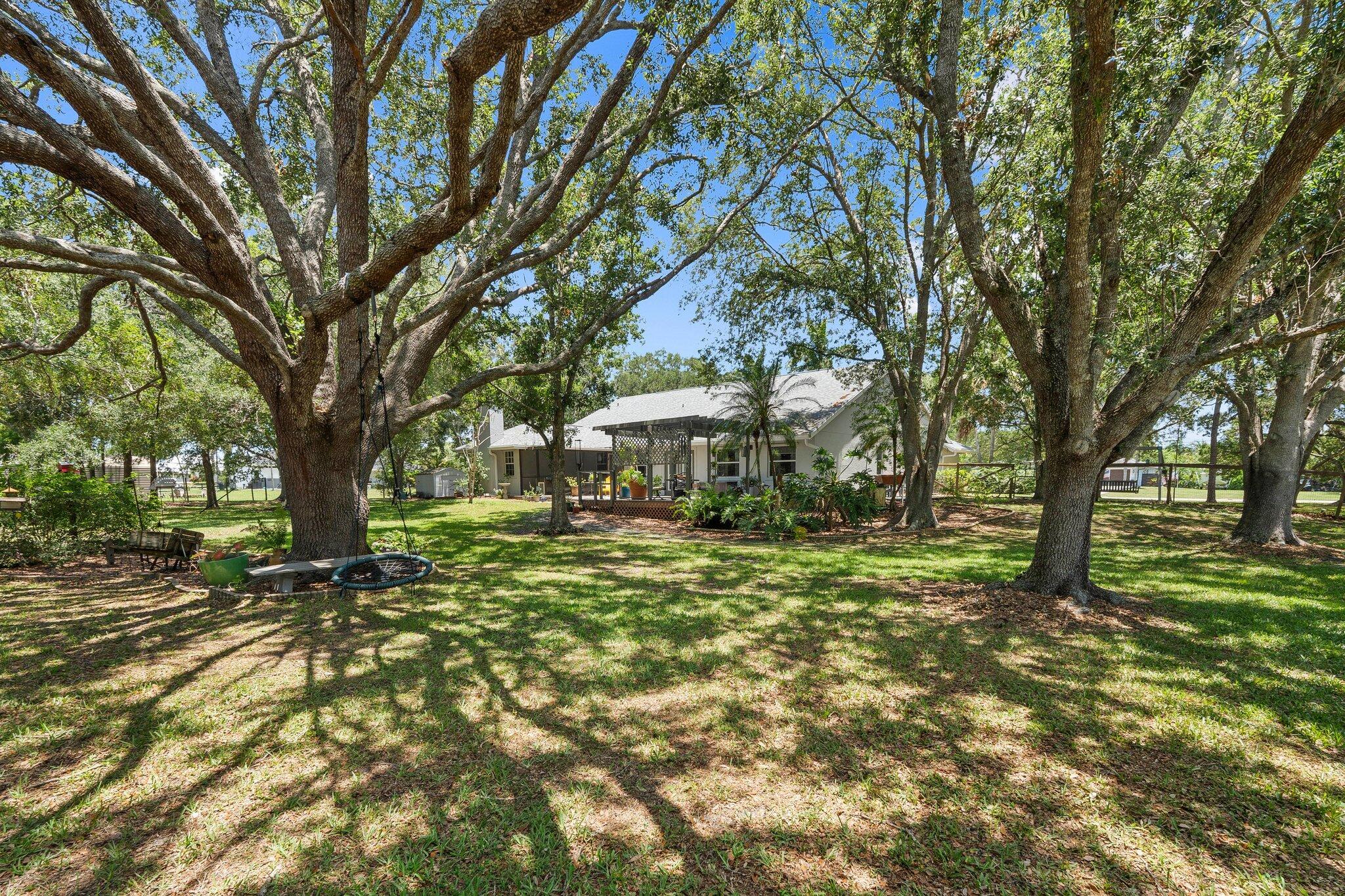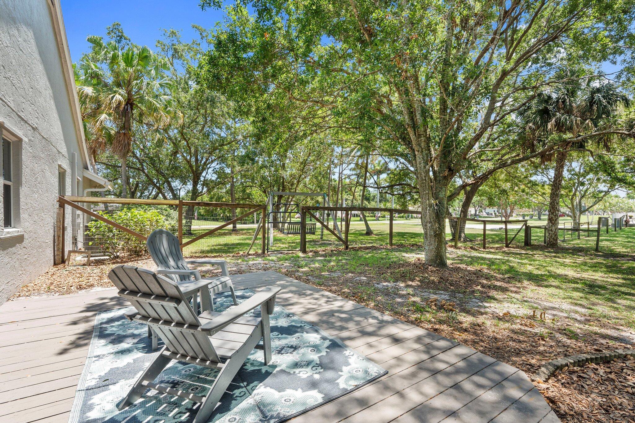 Welcome to Palm Beach Country Estates, a sought after community with HOA amenities but no required dues, acreage & county only taxes. Located on a paved road, 2 year old Roof, Ext Paint, Gutters. 2 AC's 1yr & 3yr old, hard wired portable generator, fully remodeled kitchen & guest bath, 2 sheds (1 w/electric) & irrigation. Plenty of parking for boat/RV. Whole home RO system. Sit on the deck under your pergola & relax to the sound of the koi pound under the many mature oaks & coconut palms while spotting the wildlife like hawks & cranes. Head over to the playground, covered picnic tables, racquetball, pickleball courts & frisbee golf course for some fun or walk the paved paths on many of the roads.