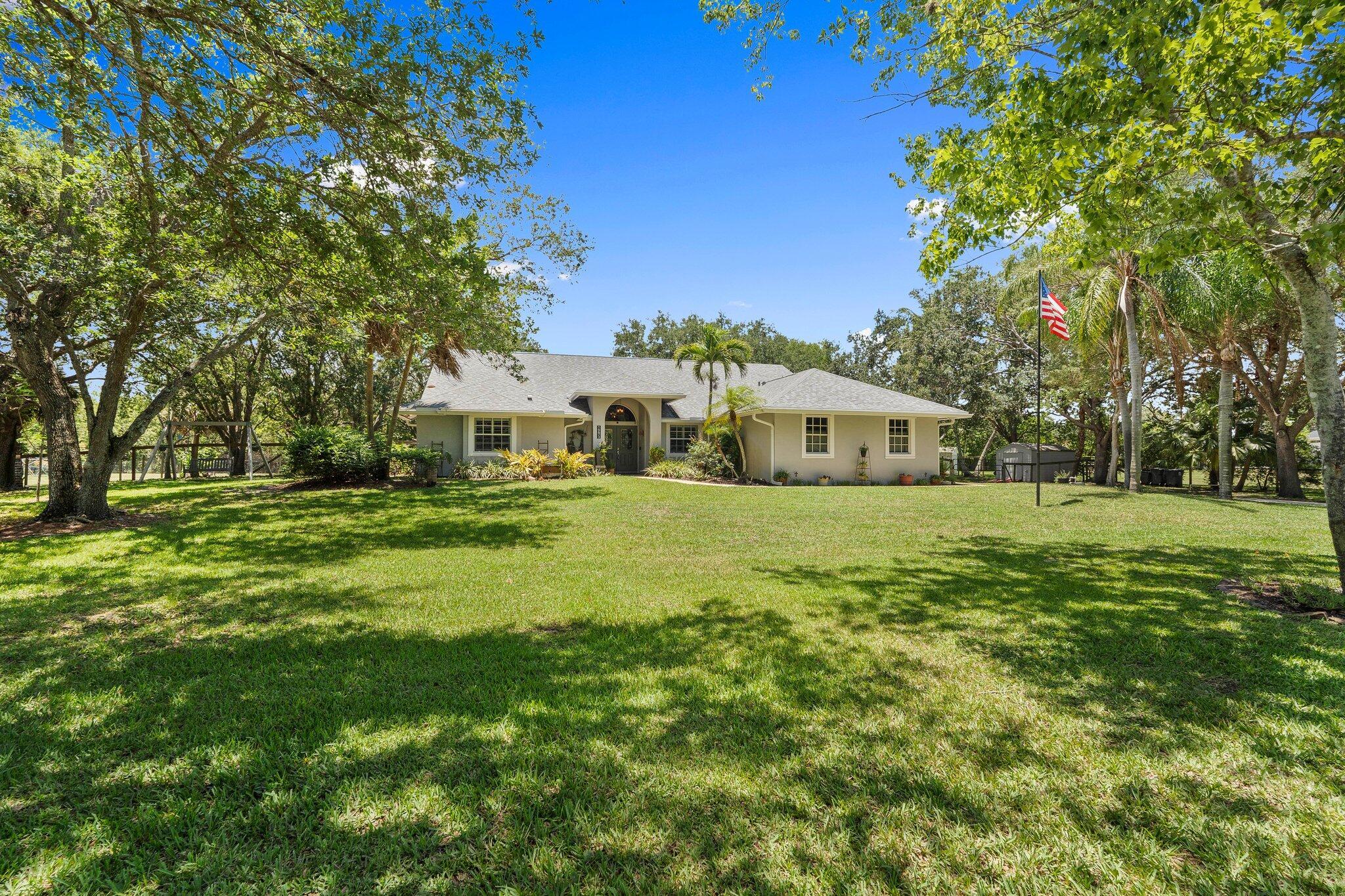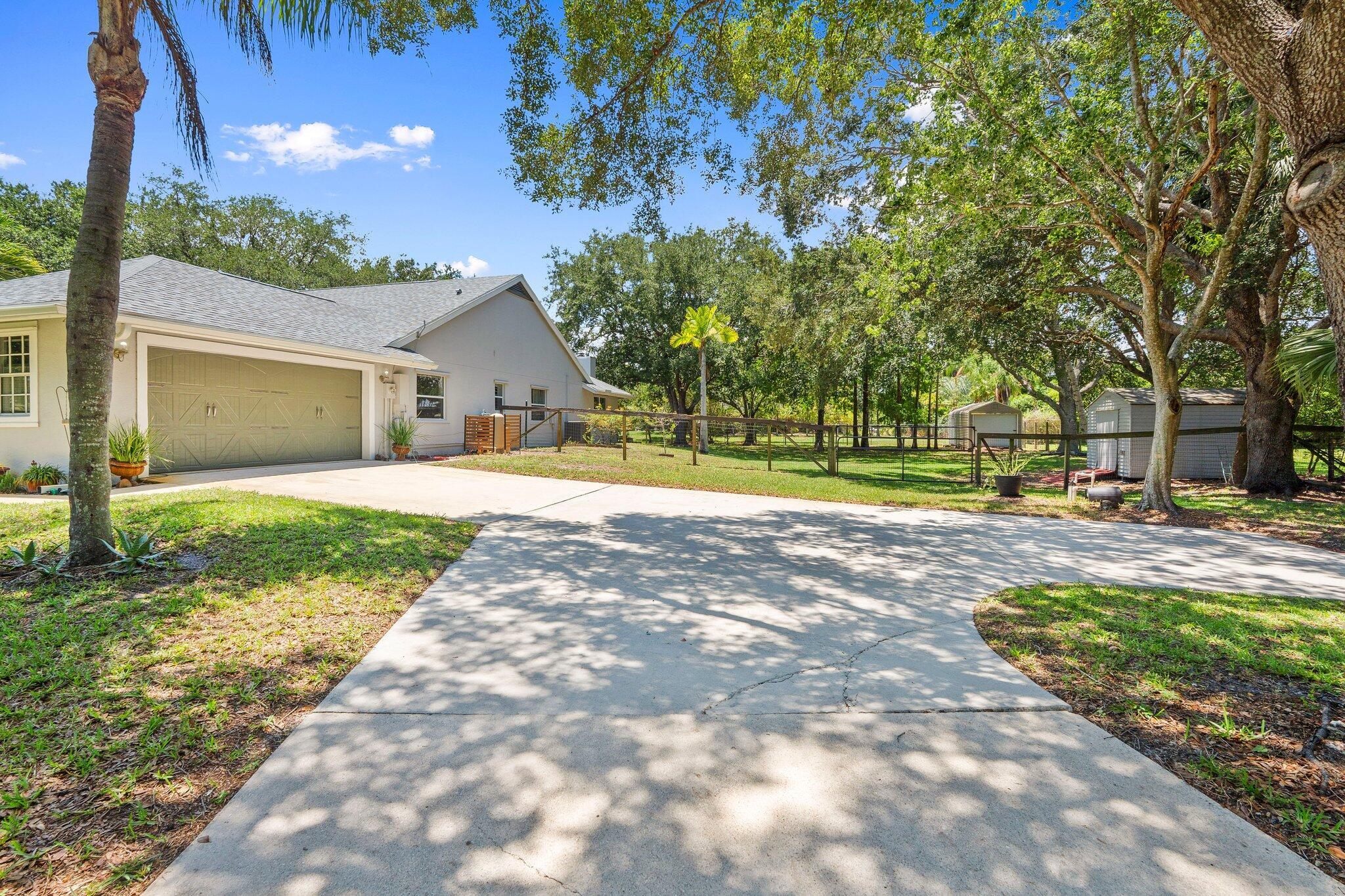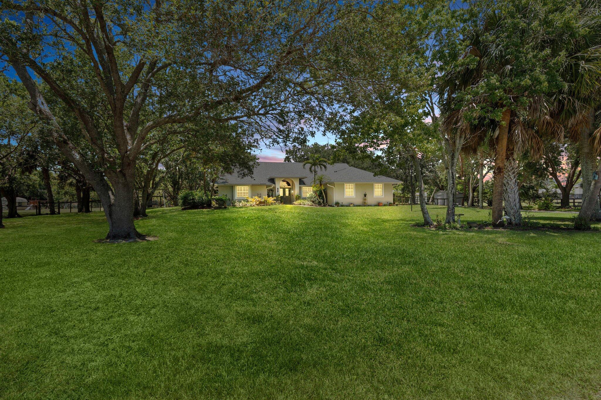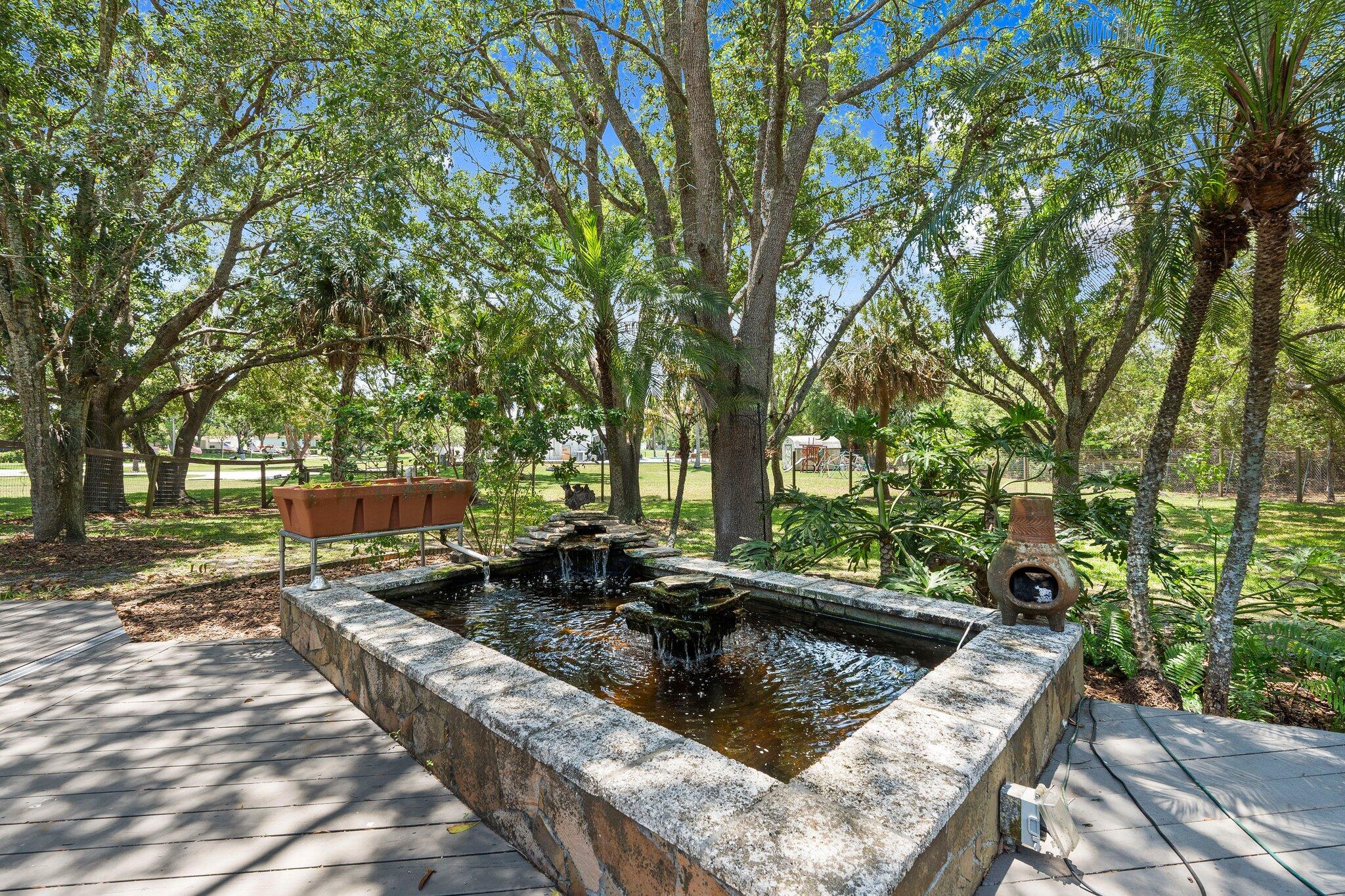 Welcome to Palm Beach Country Estates, a sought after community with HOA amenities but no required dues, acreage & county only taxes. Located on a paved road, 2 year old Roof, Ext Paint, Gutters. 2 AC's 1yr & 3yr old, hard wired portable generator, fully remodeled kitchen & guest bath, 2 sheds (1 w/electric) & irrigation. Plenty of parking for boat/RV. Whole home RO system. Sit on the deck under your pergola & relax to the sound of the koi pound under the many mature oaks & coconut palms while spotting the wildlife like hawks & cranes. Head over to the playground, covered picnic tables, racquetball, pickleball courts & frisbee golf course for some fun or walk the paved paths on many of the roads.