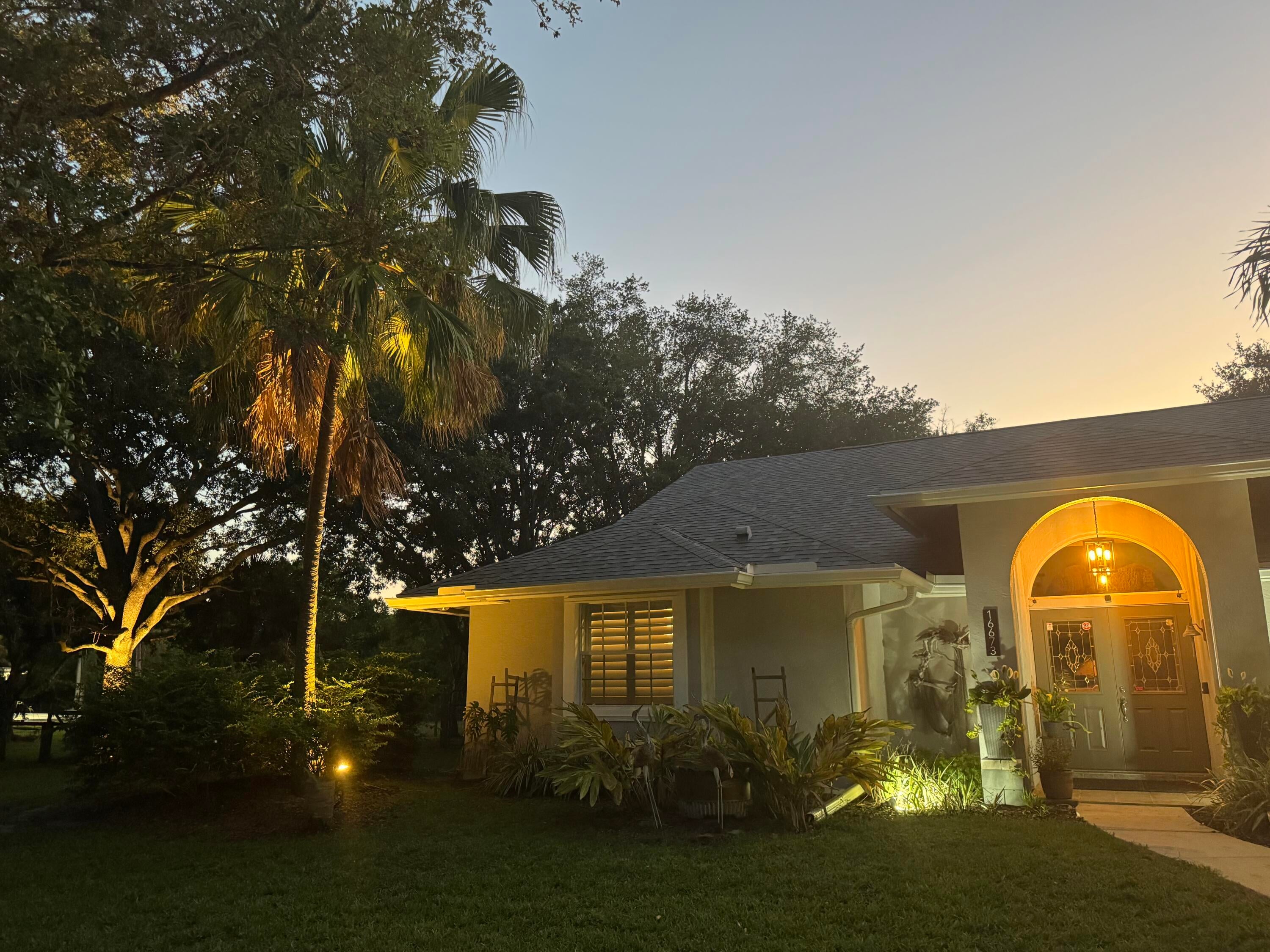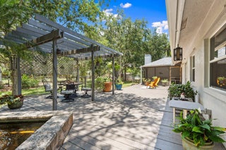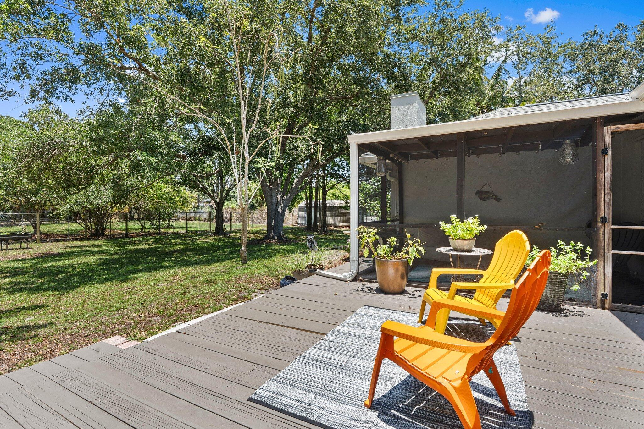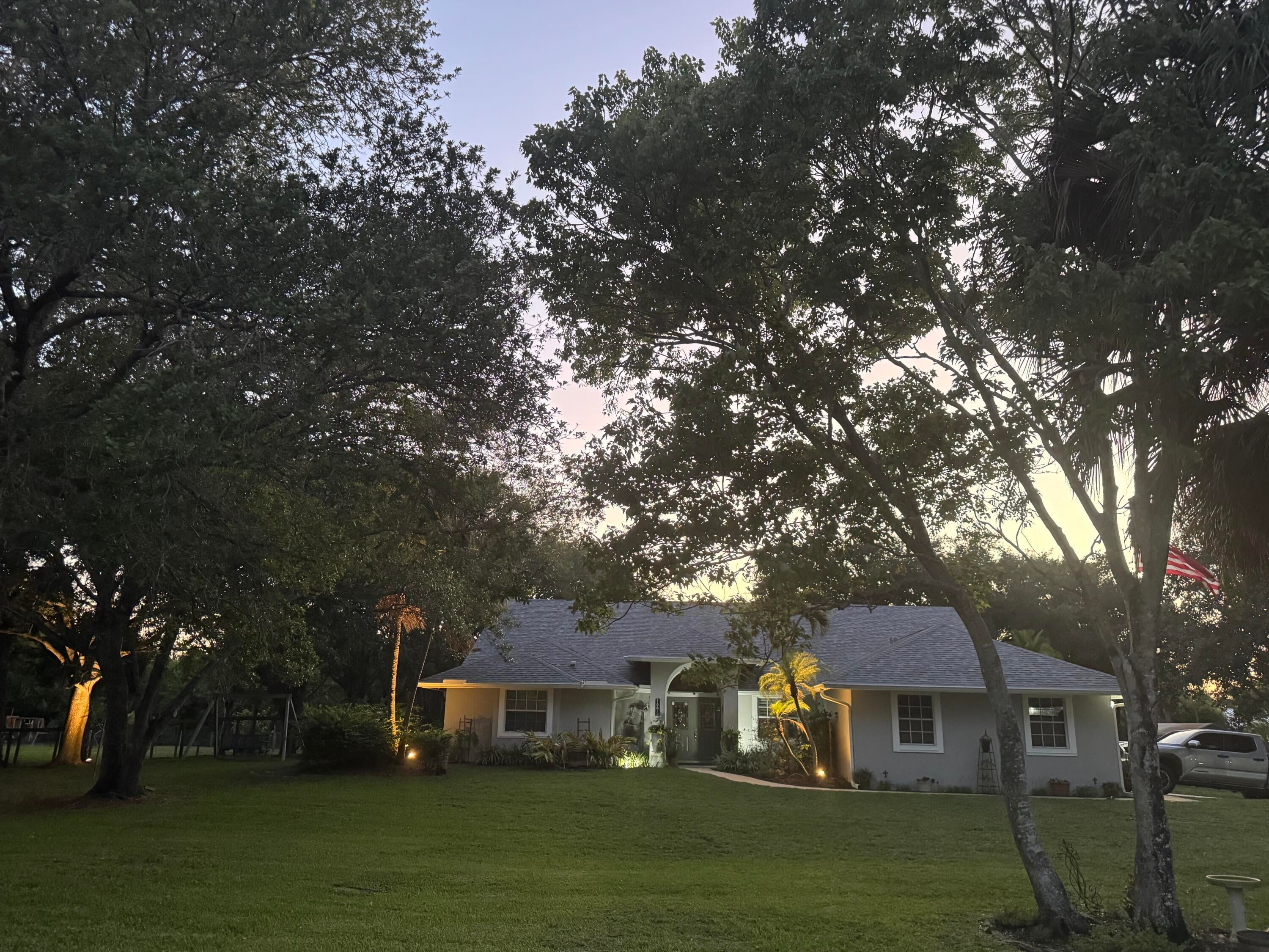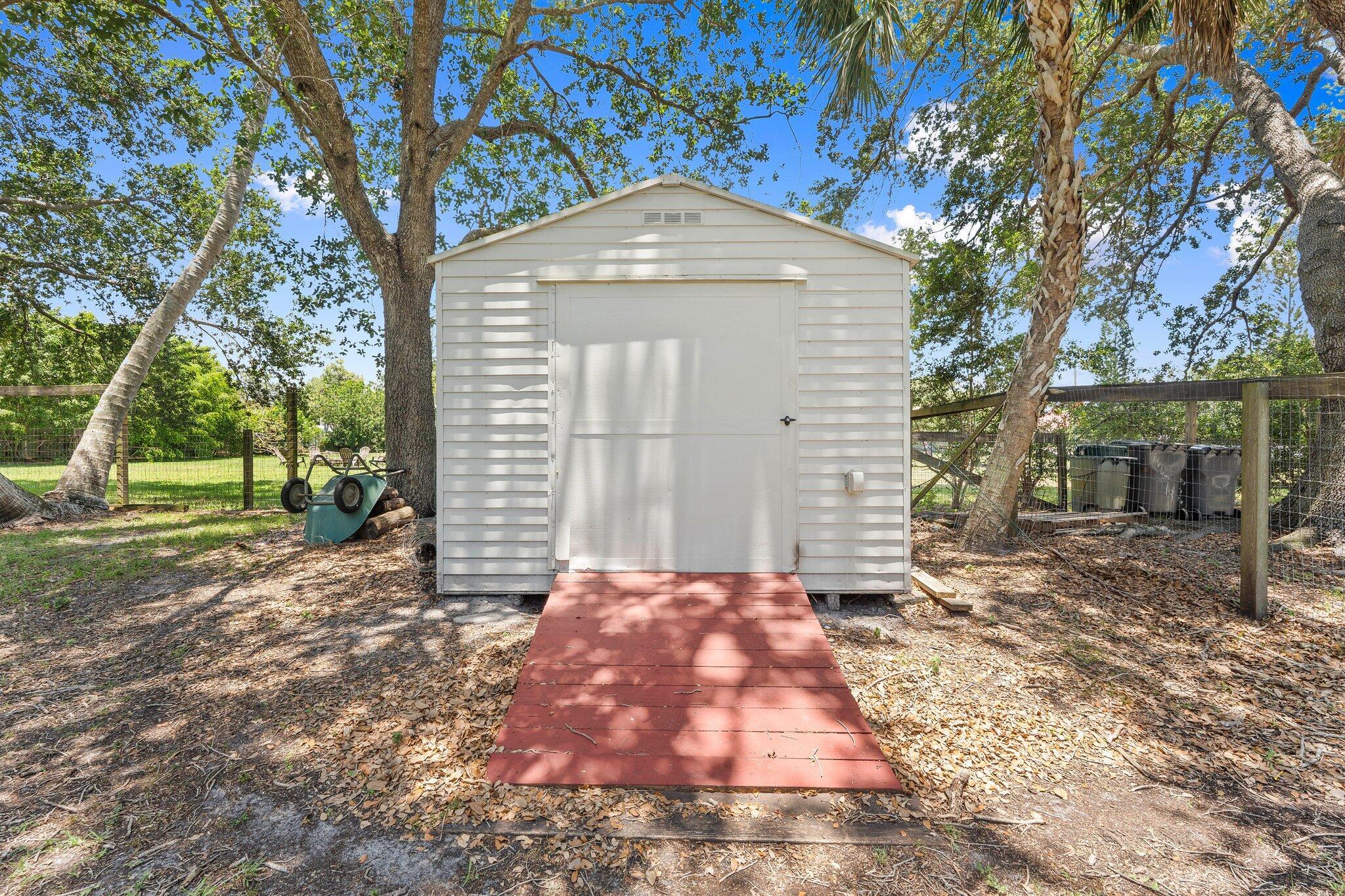 Welcome to Palm Beach Country Estates, a sought after community with HOA amenities but no required dues, acreage & county only taxes. Located on a paved road, 2 year old Roof, Ext Paint, Gutters. 2 AC's 1yr & 3yr old, hard wired portable generator, fully remodeled kitchen & guest bath, 2 sheds (1 w/electric) & irrigation. Plenty of parking for boat/RV. Whole home RO system. Sit on the deck under your pergola & relax to the sound of the koi pound under the many mature oaks & coconut palms while spotting the wildlife like hawks & cranes. Head over to the playground, covered picnic tables, racquetball, pickleball courts & frisbee golf course for some fun or walk the paved paths on many of the roads.