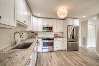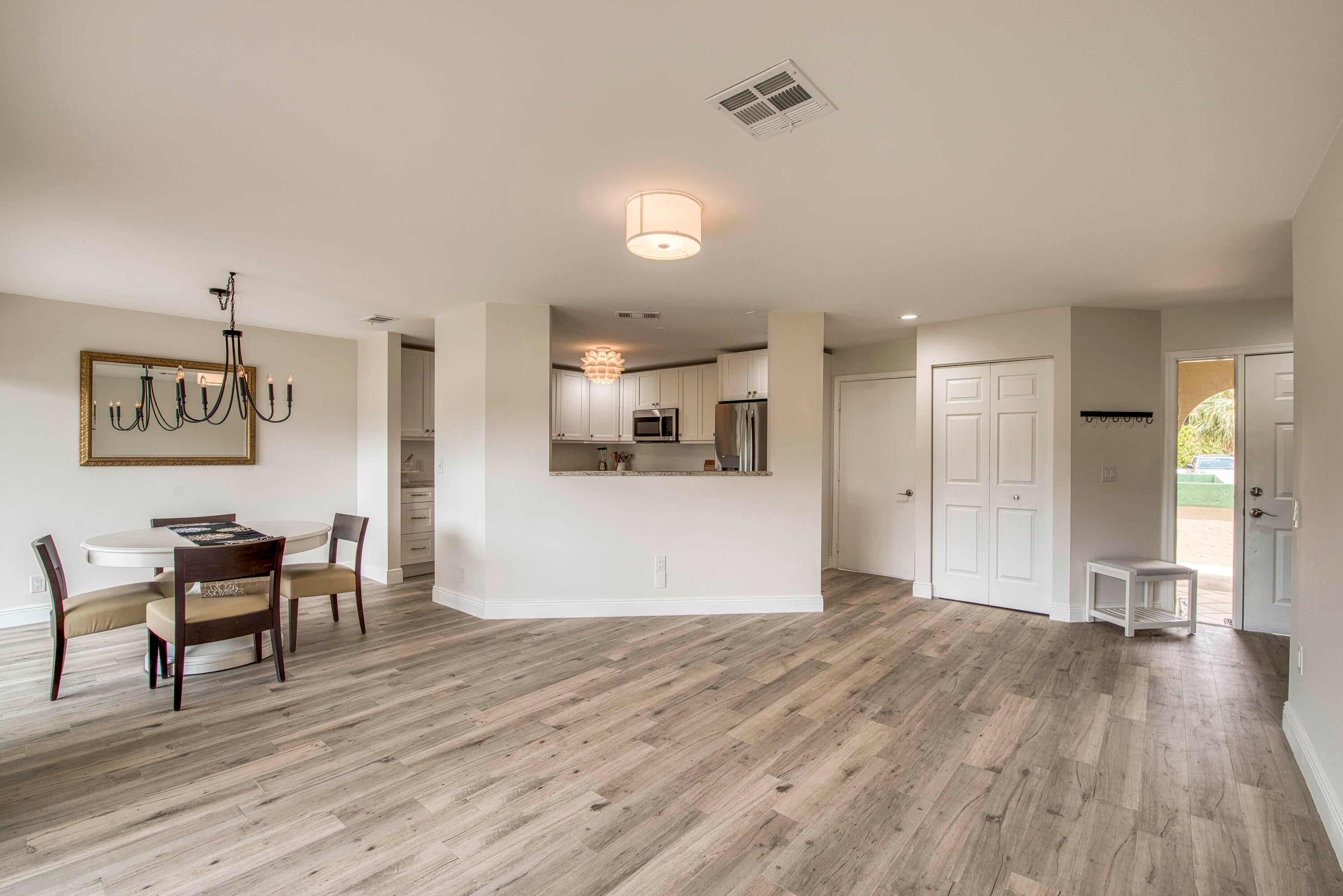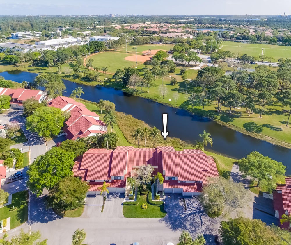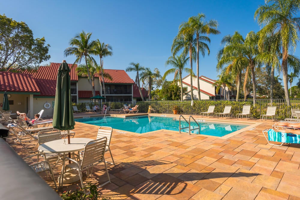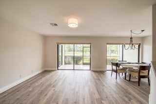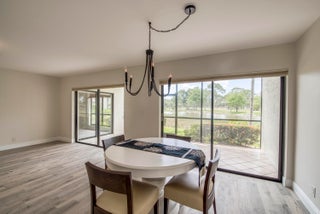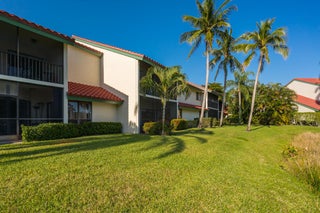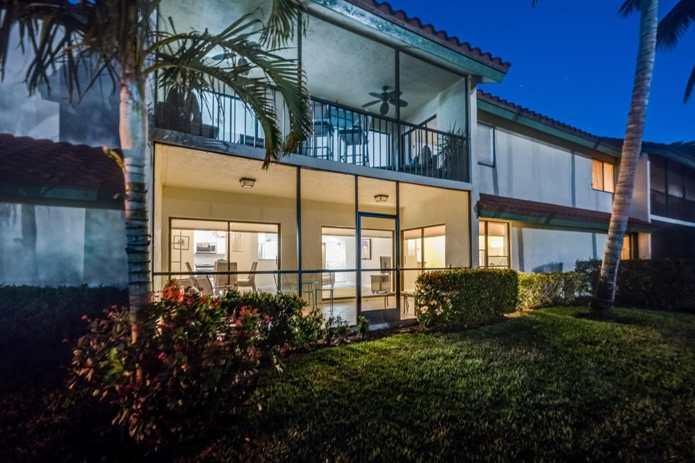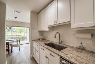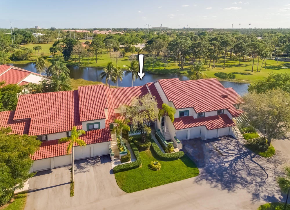 Super updated 2 bedroom condo with garage in PGA! This lovely ground floor unit has womderful views of a picturesque pond and landscaped park you can enjoy from your spacious and sunny screened patio. Gorgeous white Shaker cabinetry has dove-tailed, soft closing drawers to compliment the rustic granite counters in this open kitchen. The floors are porcelain ''wood look'' planks with minimal grout lines. Brand new refrigerator and stainless appliances are in excellent condition. The condo is fresh and beautiful, painted a neutral tone, and is move-in ready! 2016 upgrades include custom remote Hunter Douglas blinds, washer/dryer, AC, and water heater.Community features private pool and location in PGA with no required membership.