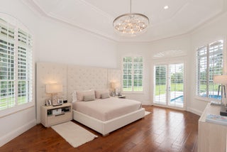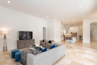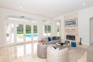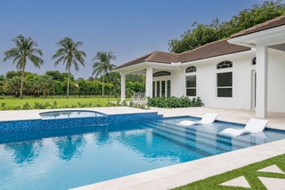Stunning renovated one-story home in Palm Beach Gardens on an acre+ lot in the gated community of Steeplechase. Perfectly placed on a large homesite with exceptional finishes, a large custom heated pool and inviting outdoor areas to relax. The beautifully updated kitchen features high end appliances coupled with new quartz countertops and top-quality cabinetry. The luxurious primary suite has a re-designed bathroom, huge closets with custom built-ins and great views of the pool/spa and newly landscaped backyard that is fenced and very private. With over 6,200 square feet of living space on one level this spacious floorplan offers five guest bedroom suites, office, media room and game room with built-in bar. The family room is highlighted by a coquina fireplace and great view of the pool.