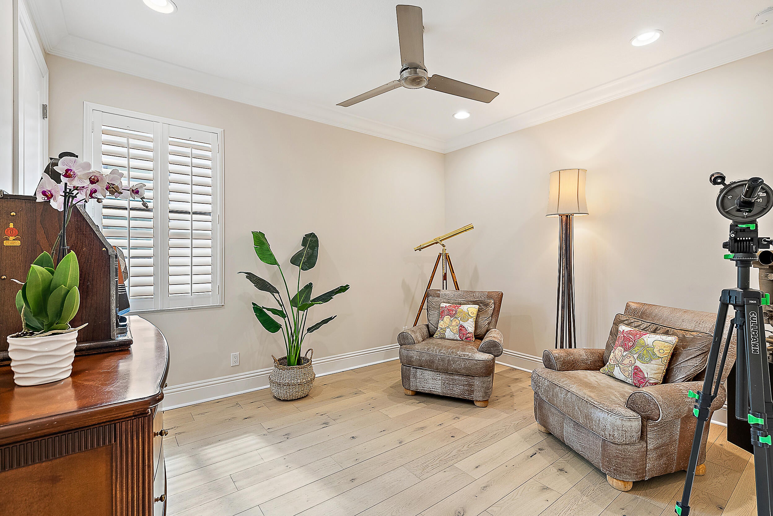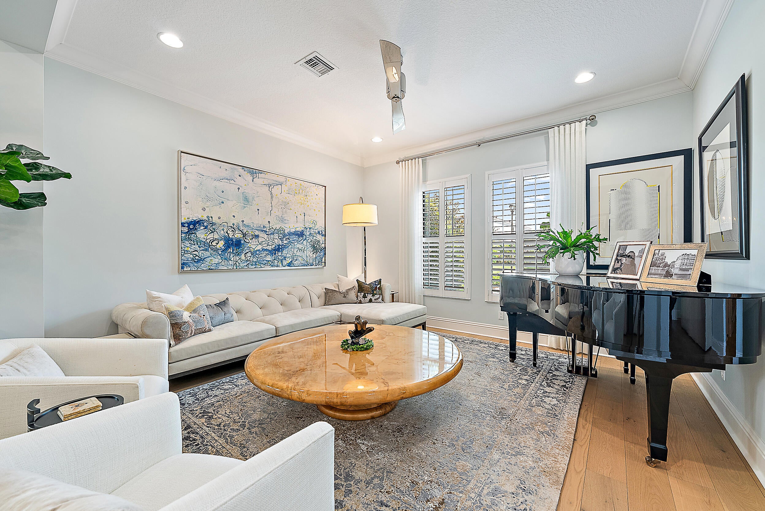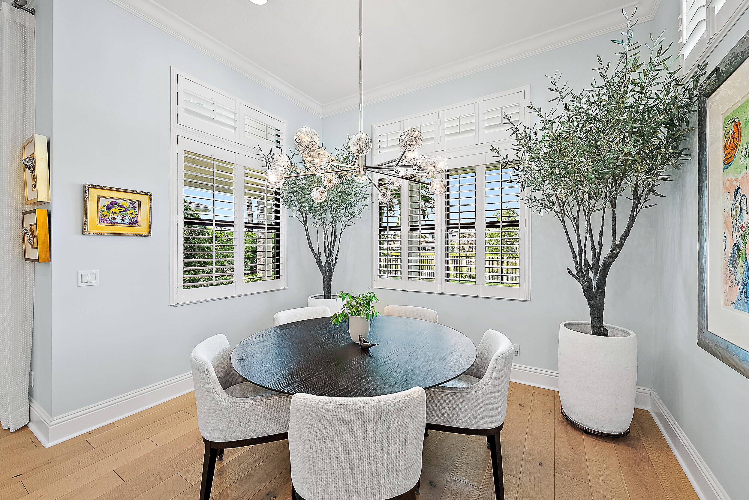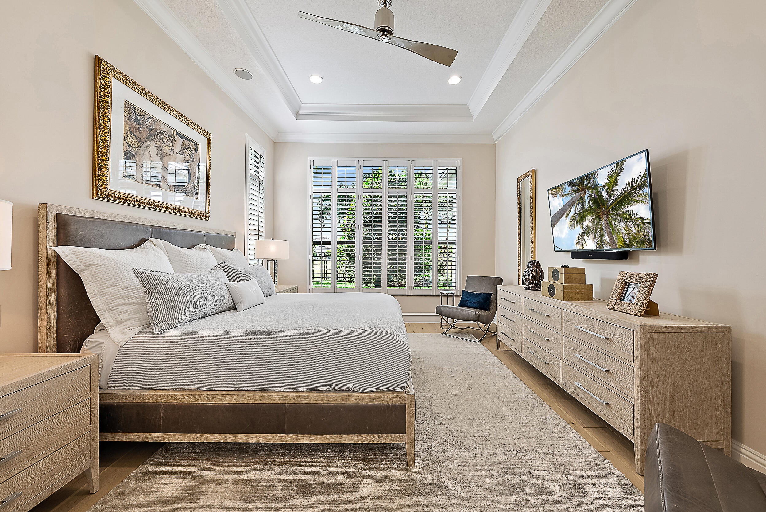 Perfectly situated in the center of Artistry, this home offers a peaceful water view and desirable southern exposure, filling the interior with natural light throughout the day. With an easement between you and the next-door neighbor, you'll enjoy a greater sense of privacy and space, rarely found in this community. Inside, tasteful upgrades and designer finishes create a polished yet comfortable atmosphere. White oak flooring, quartz surfaces, beautiful crown molding, and upscale fixtures are featured throughout. A versatile front room sets the stage for entertaining or formal gatherings, while the chef's kitchen delivers top-tier performance with GE Monogram appliances, a 6-burner gas range with griddle, three ovens, an oversized waterfall island, wine cooler, andupgraded cabinetry. The spacious primary suite overlooks the water and includes multiple walk-in closets. The en-suite bath features floor-to-ceiling tile, creating a spa-like retreat with a clean, modern look. Upstairs, you'll find well-appointed guest suites and a separate living area ideal for extended family, visiting guests, or a private retreat for kids or teens. Located in the gated community of Artistry Palm Beach, residents enjoy a modern clubhouse, resort-style pool, state-of-the-art fitness center, playground, and scenic walking trails. All just minutes from A-rated schools, world-class golf, beaches, and fine dining in Palm Beach Gardens.