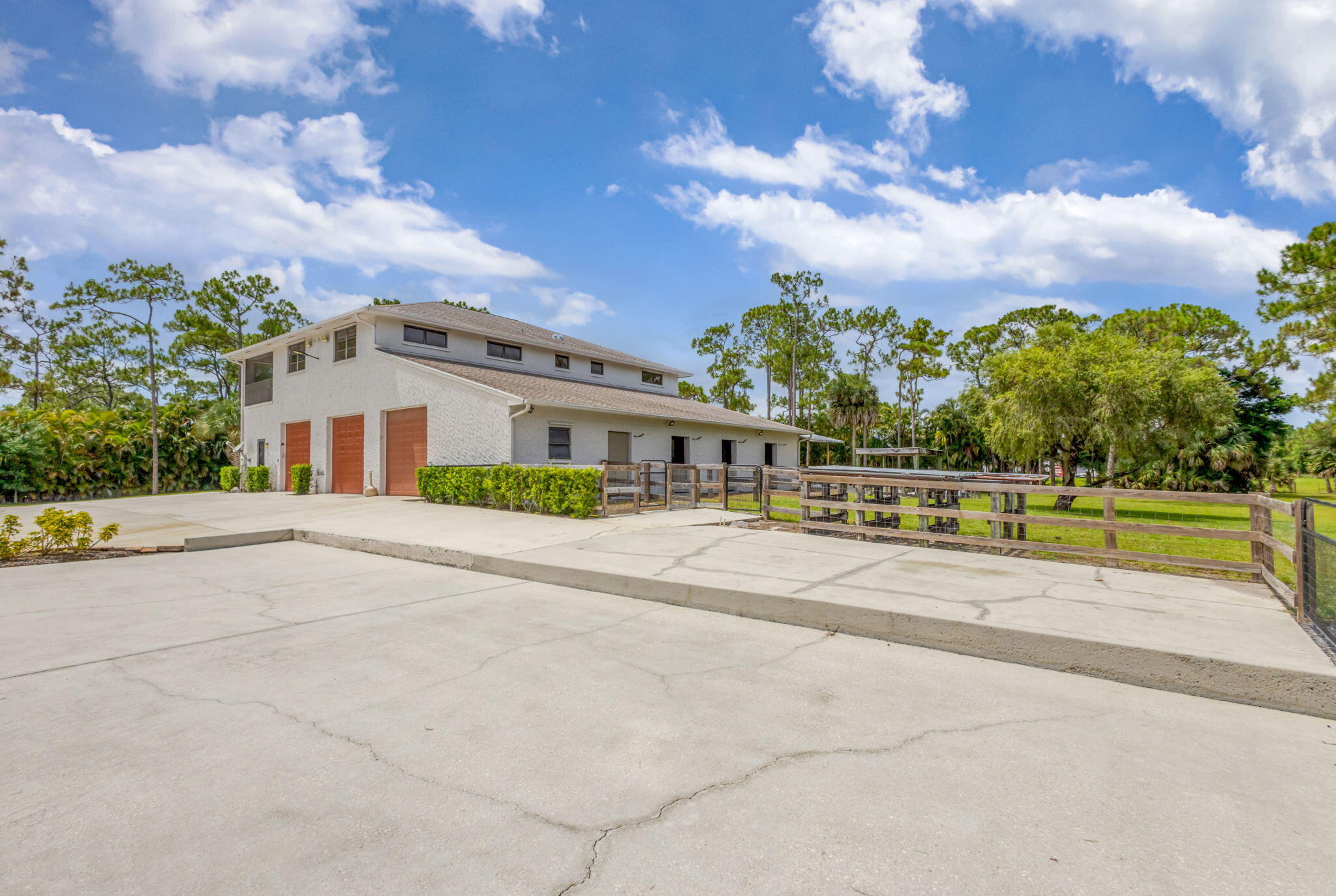 SEE FLOOR PLAN IN DOCUMENTSExceptional 10-Acre Estate with Two Residences. Your privacy begins with the gated entrance to the property framed by two stone columns opening to 10 acres of beautifully manicured open land. The main house, built in 2011, offers 4904 SF of living space. Upon entering you are greeted by a ''pass-thru'' floor to ceiling, stone fireplace that serves both the living room and the family room. This large home features 4 bedrooms and 4 1/2 baths as well as a large gathering/game room with bar seating. The game room is outfitted with a wet bar, wine fridge, sink, making it the ultimate entertainment hub. There is also a very large bonus room adjacent to the Primary bedroom that is ideal for a nursery, home office, yoga room, home gym, etEvery room is very generous in size including a 20 x 20 formal dining room perfect for hosting large gatherings. The kitchen is beautifully finished with 42" wood cabinets, granite countertops and stainless appliances with a huge walk-in pantry offering loads of additional storage space. The primary bedroom suite measures 26'x20' with the above-mentioned bonus room while the primary bathroom offers a spa-like experience boasting a full-sized sauna, a jacuzzi tub, walk-thru shower and his and her water closets. Two of the guest bedrooms, also very generous in size, feature their own en-suite bathroom ensuring comfort & privacy. A 20 x 40 - 10' deep pool, impact windows , beautiful SLATE roof and spacious three-car garage completes the main residence. ________________________________________ Second Residence & Guest Facilities...ALL CBS CONSTRUCTION The guest house, built in 1995, offers an additional 1,800 square feet of comfortable living space on the second level, with 2 bedrooms and 2 full bathrooms. It is accessible via stairs or a private elevator ideal for guests, extended family, or caretakers. Below the guest quarters, the first level offers exceptional functionality and flexibility with a kennel area for your k-9 friends complete with a wash station, restroom, washer & dryer a huge 25' x 11' storage room with a floor to ceiling roll-up garage door. The center of this building is an expansive 59' x 29' garage/workshop with double roll-up garage doors on either side perfect for a car collection, RVs, boats, workshop, or large-scale storage. Adjacent to the garage is a concrete block 4-stall barn, with each stall measuring 11' x 11', plus a dedicated tack room. The 10 acres of land offers ample space for paddocks, arenas, or additional outbuildings if desired. This estate blends comfort, craftsmanship, and limitless potential ideal for car enthusiasts, hobbyists, equestrians, multi-generational living, or anyone seeking a self-contained, luxury retreat. A golf cart or two included. :)