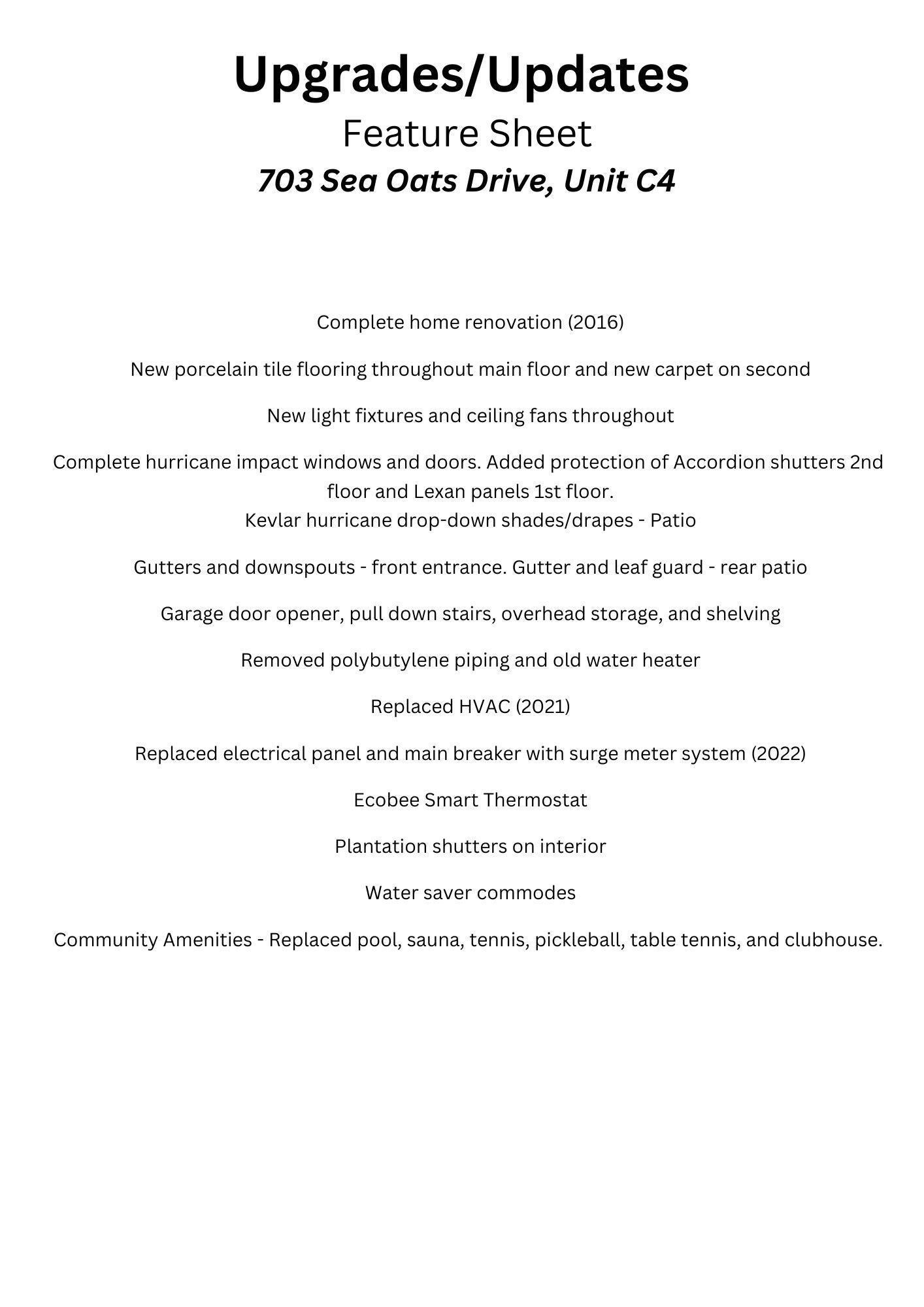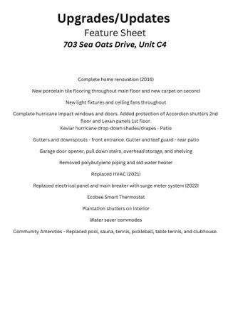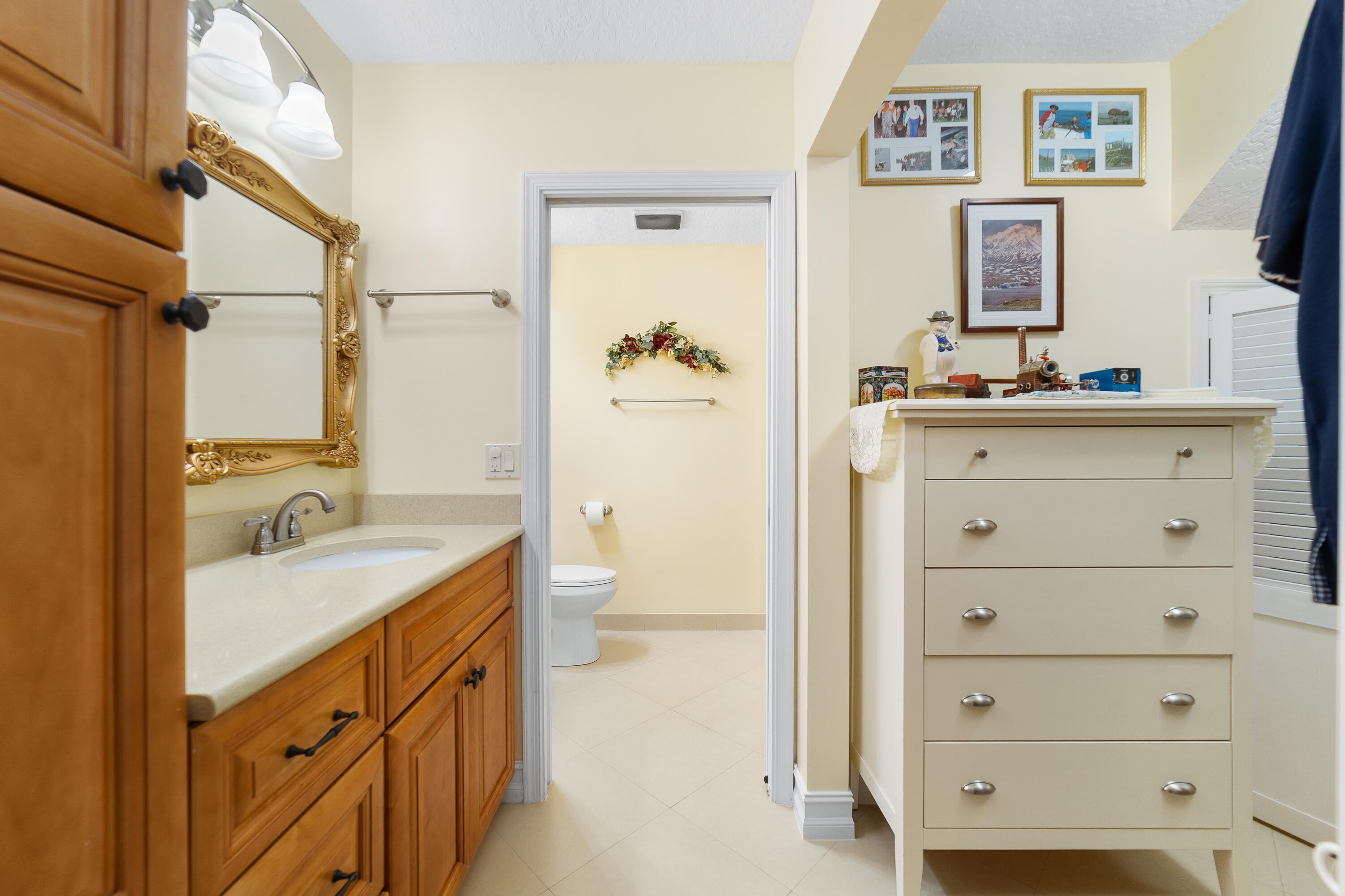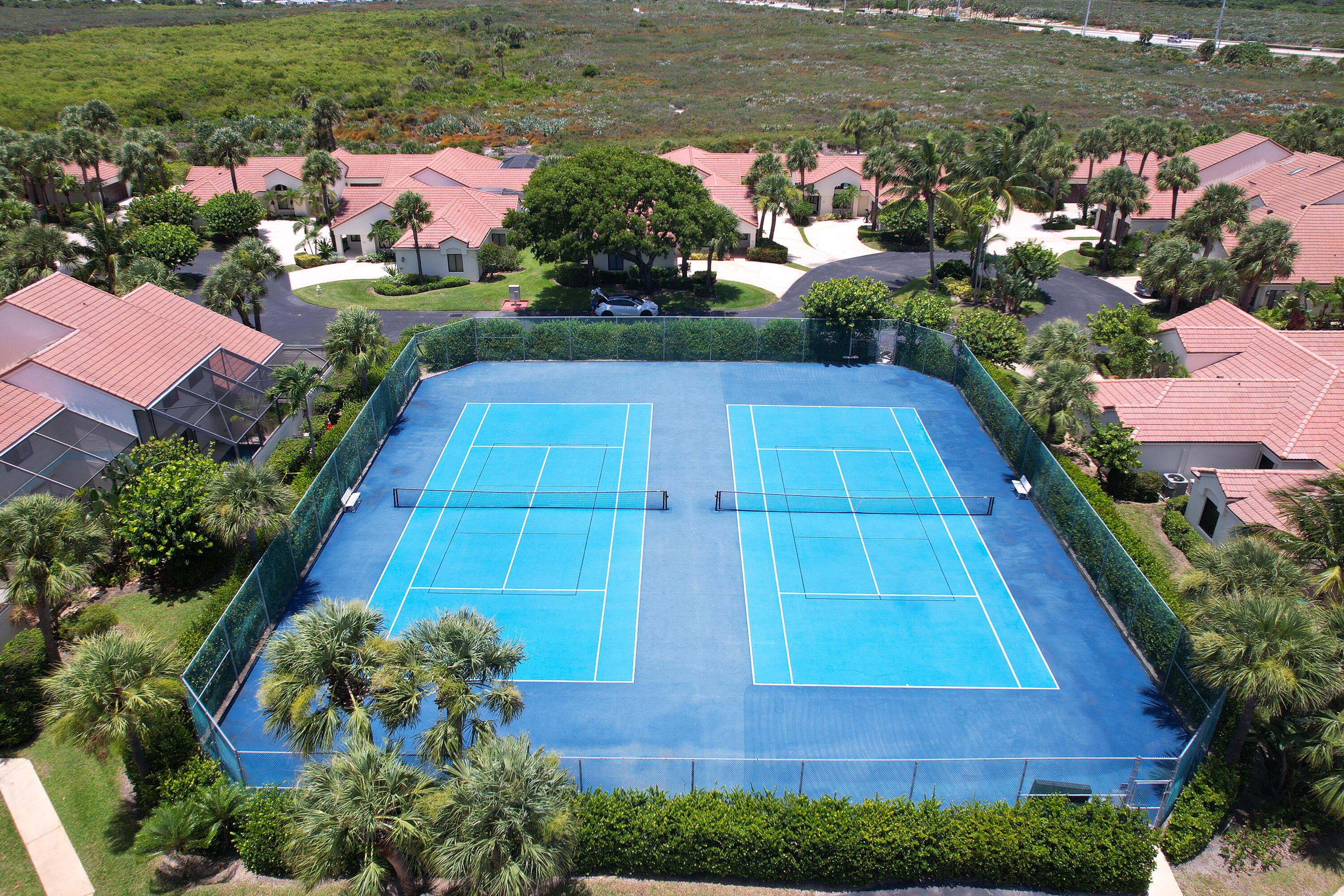 LOCATION, LOCATION, LOCATION!! MINUTES TO THE BEACH!! This beautifully maintained and thoughtfully upgraded residence offers a bright, open interior with vaulted ceilings, plantation shutters, and porcelain tile flooring throughout the main level, complemented by new carpet upstairs. A complete home renovation in 2016 included new light fixtures, ceiling fans, and the removal of polybutylene piping and the original water heater. The spacious layout features lofty two-story main-level living. Entry through the private courtyard which leads to an open floor plan that flows seamlessly to the rear screened patio and pool area with a privacy wall--ideal for both relaxing and entertaining. Additional upgrades include a new HVAC system (2021),an updated electrical panel with main breaker and surge protection, and surge protection at the electric meter (2022), an Ecobee smart thermostat, and garage enhancements such as pull-down stairs, overhead storage, and shelving. Safety features include complete hurricane impact windows. A second layer of protection includes accordion shutters on the second floor, Lexan panels on the first floor, Kevlar drop-down shades for the patio and a hurricane panel for the front door. Gutters and downspouts have been added for proper drainage, along with leaf guards on the rear patio. Both bathrooms feature water-saving commodes. The HOA/POA includes cable, pest control, quarterly power washing, lawn and landscaping, building and hurricane insurance, roof and exterior maintenance, and access to the clubhouse, tennis courts, and a newly renovated pool. Located across from the Loggerhead Marine Life Center and Loggerhead Park, with the Juno Dunes Nature Area as your neighbor, this home offers low-maintenance living with coastal charm and exceptional community amenities.