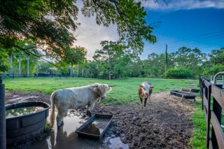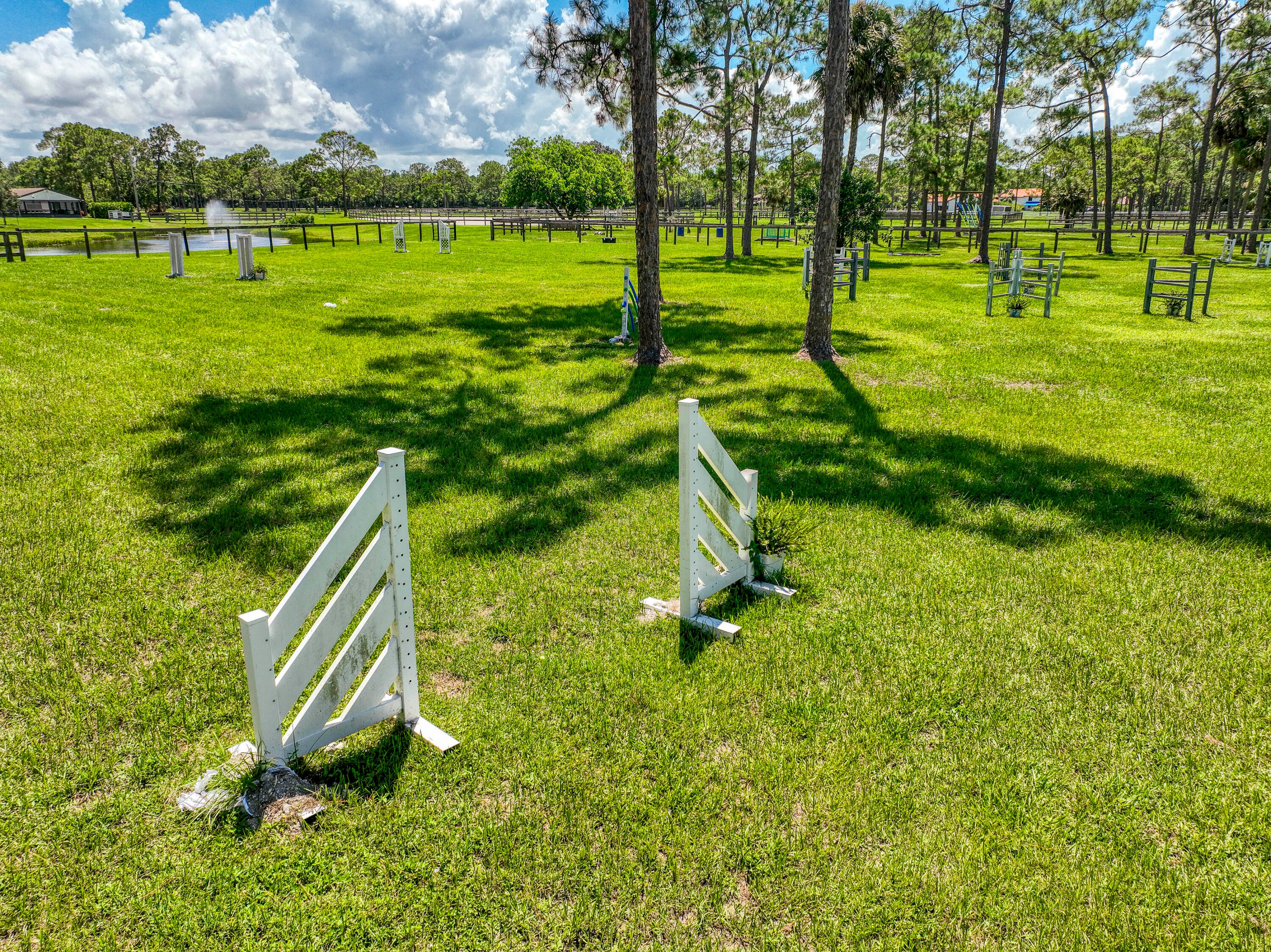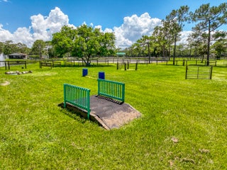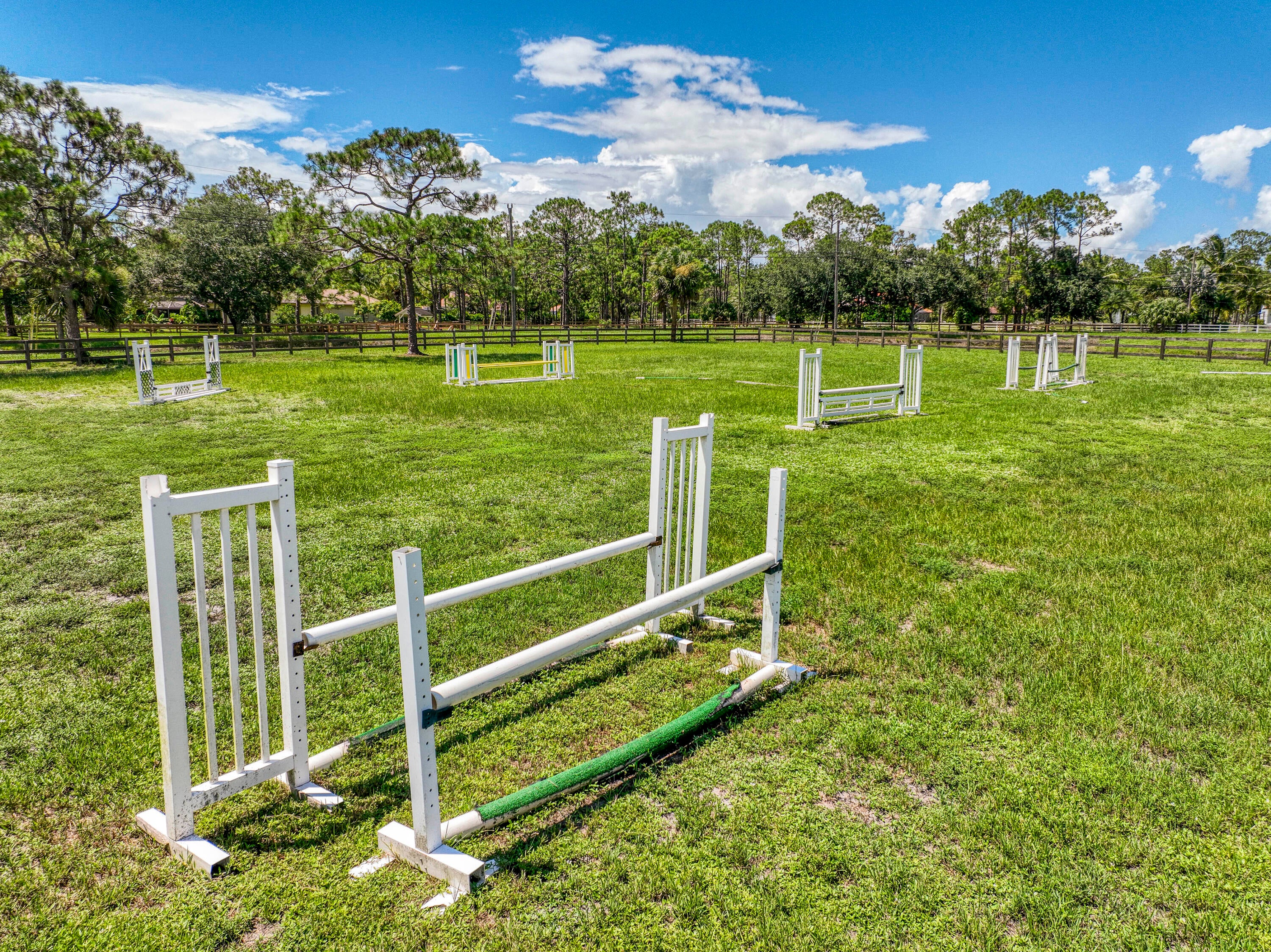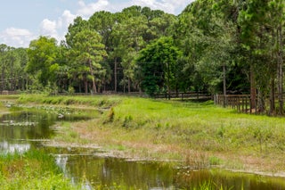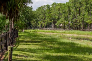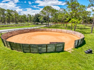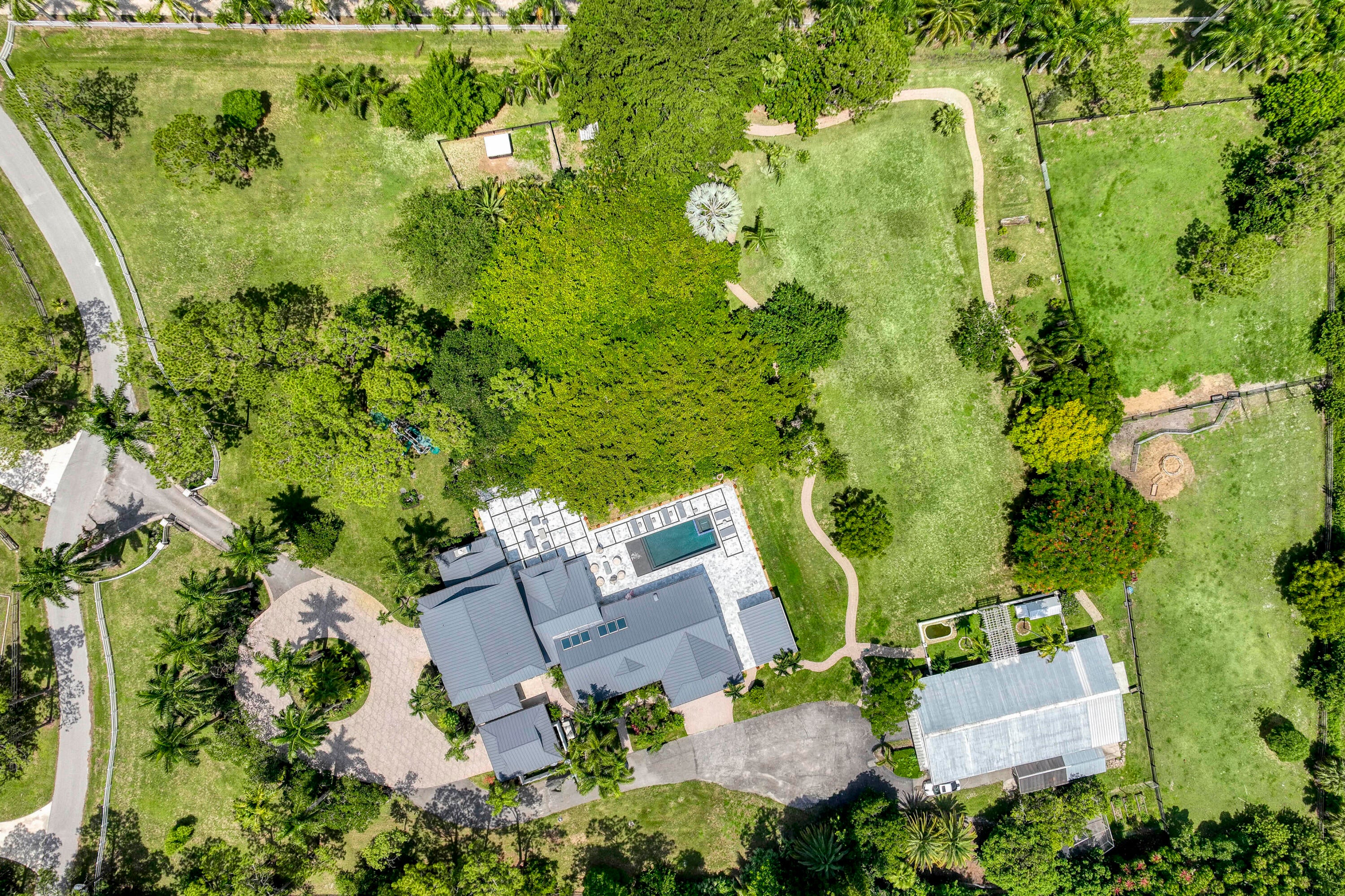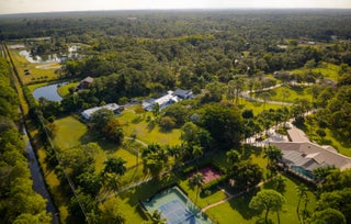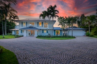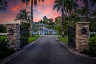 Escape to your private South Florida sanctuary, an equestrian-ready modern French Country estate that redefines refined living on over five acres of lush, manicured land. Thoughtfully redesigned from top to bottom, this exceptional property blends timeless European charm with the ease and sophistication of contemporary luxury living, offering a rare combination of tranquility, craftsmanship, and functionality. A long private drive sets the tone as vaulted, skylit ceilings, walls of glass, and wide-plank European oak flooring flood the interiors with natural light and understated elegance.The heart of the home is the show-stopping chef's kitchen, anchored by dual oversized islands, quartz countertops, and ceiling-height custom cabinetry. A statement wood hood crowns the professional