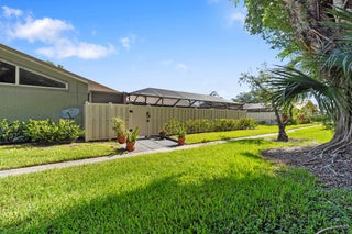 Westwood Gardens-- Prime location backing to quiet green space with southern exposure! This 3 bedroom, 2 bath one-level townhome features vaulted ceilings, ceramic tile throughout, and a spacious kitchen with granite countertops. Updated Baths, Tankless Water heater, Light and bright interior with a large screened patio perfect for relaxing or entertaining. New roof in 2020. Transferable Termite Bond. Enjoy great community amenities including clubhouse, pool, tennis, basketball, playground, and more. Convenient Palm Beach Gardens location, Just a few minutes drive to mall, restaurants and shopping.