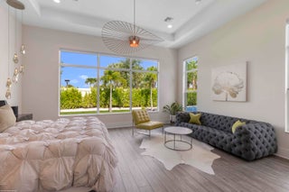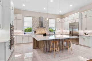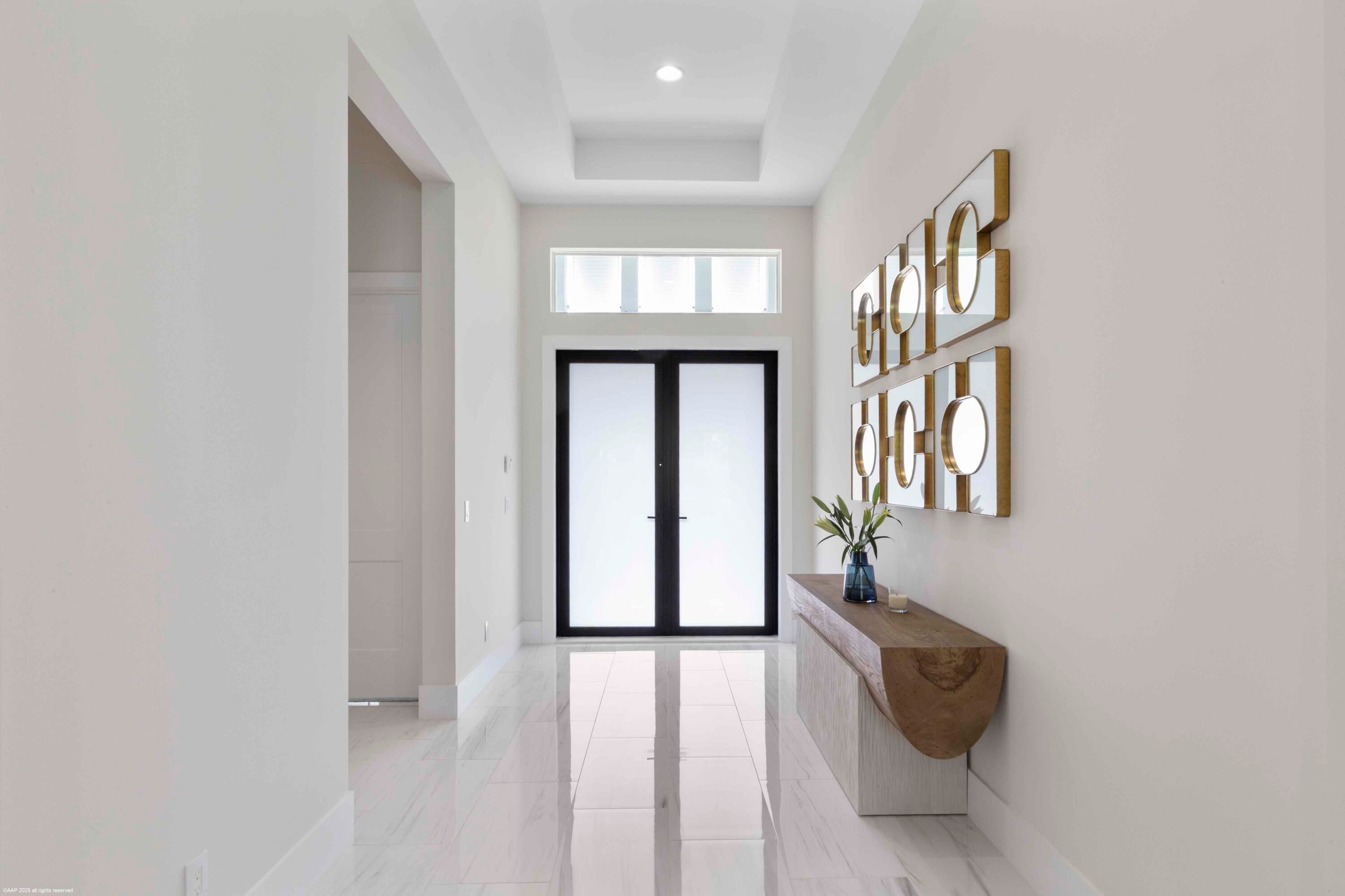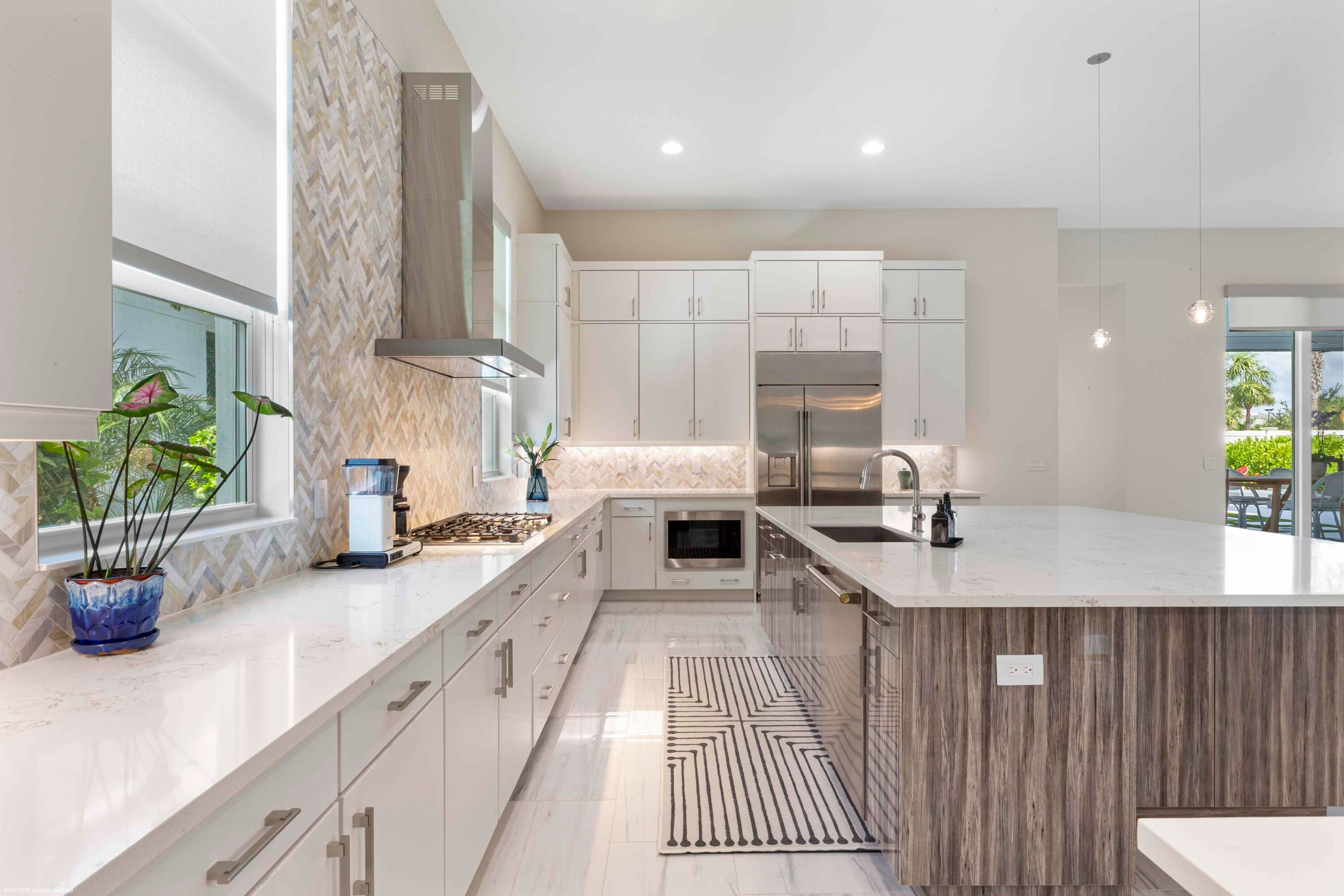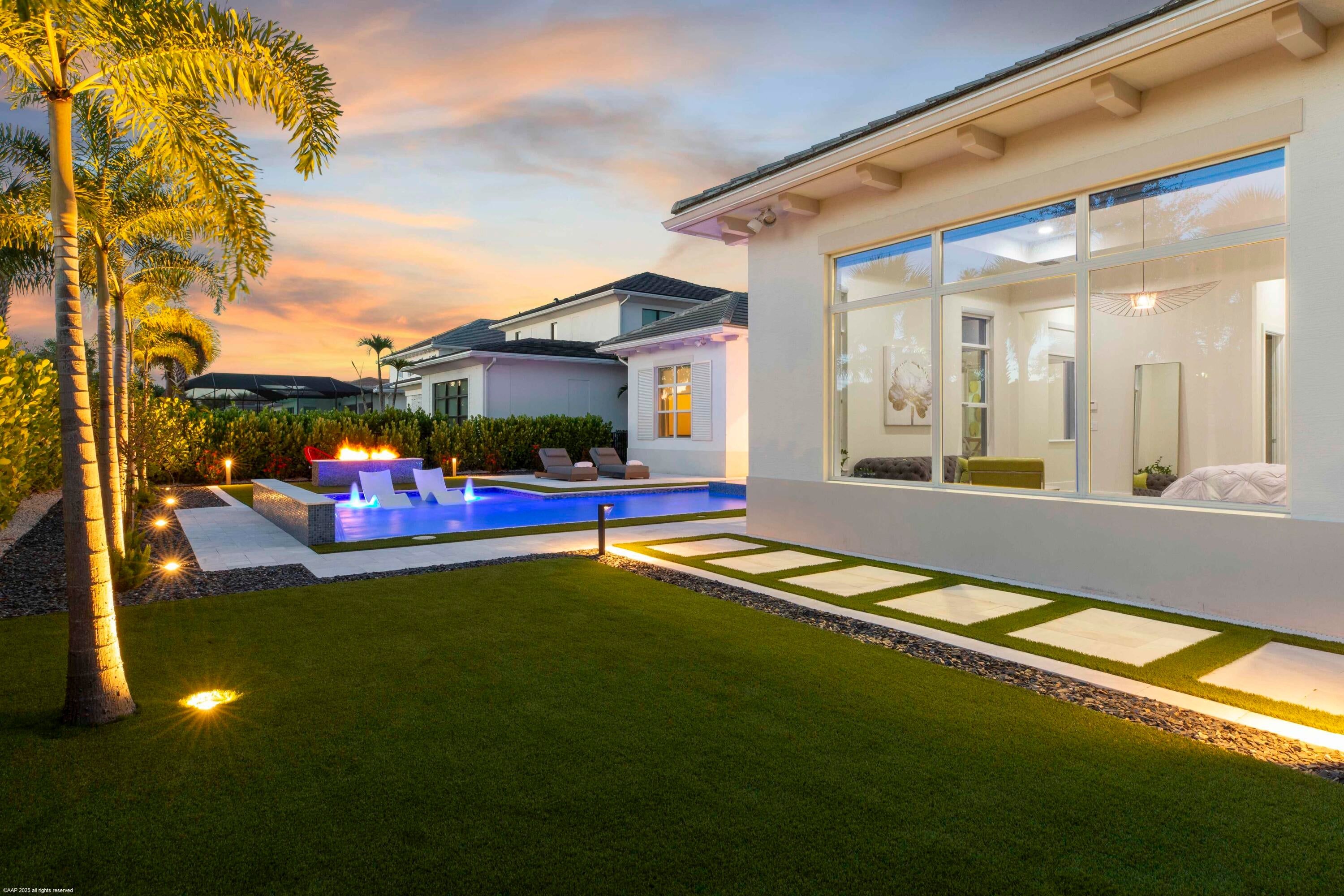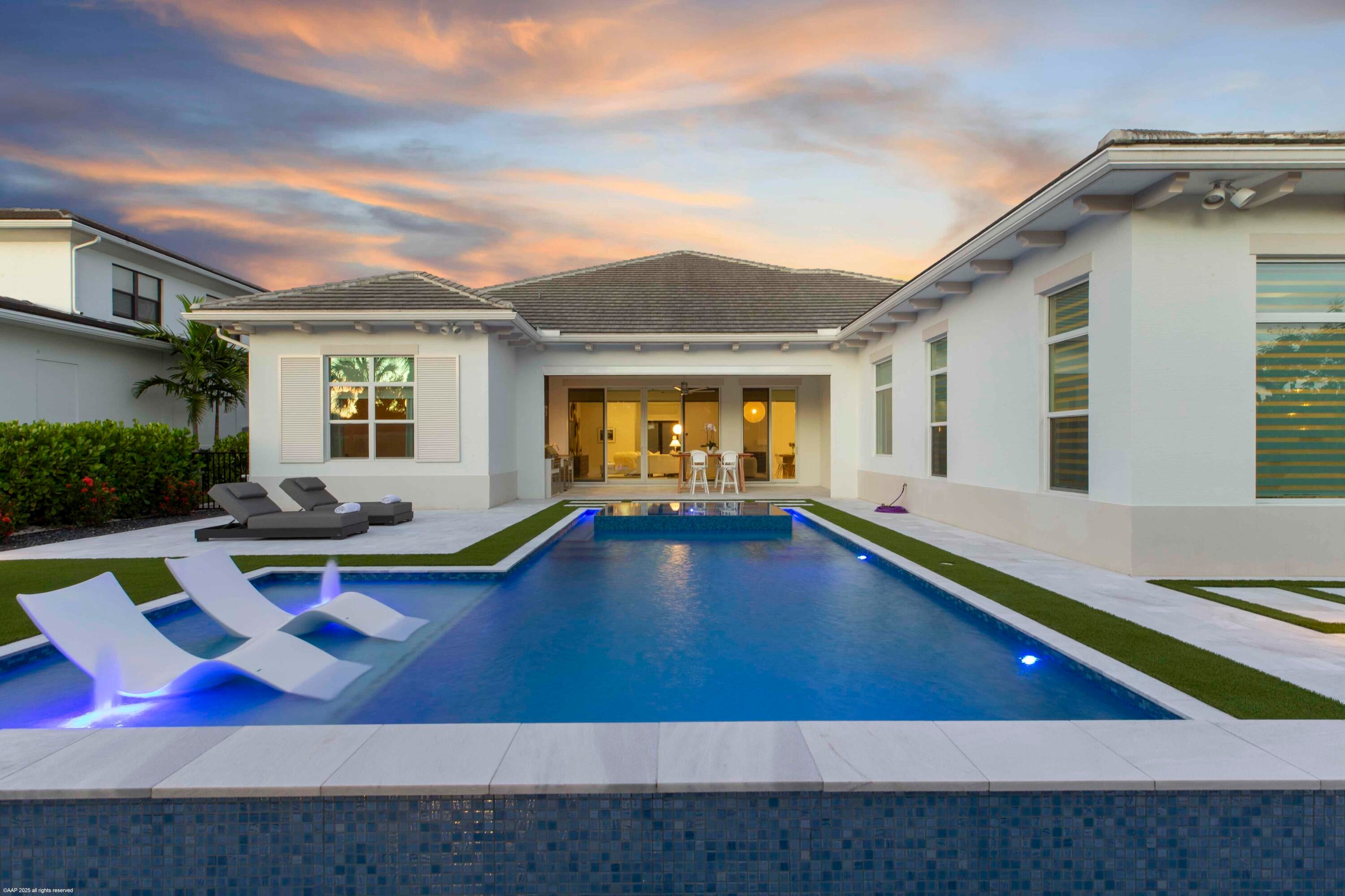 Experience refined Florida living in this exquisite 5-bedroom, 4.5-bathroom Barbados V estate home by Kenco, perfectly positioned in one of Palm Beach Gardens' newest gated communities- Coral Isles at Avenir. Designed for both elegance and comfort, this single-story home offers exceptional craftsmanship, a thoughtful open-concept layout, and an outdoor oasis that rivals any resort. From the moment you arrive, the home's striking curb appeal sets the tone. A paver driveway leads to the spacious 3-car garage, while lush tropical landscaping, enhanced by professional landscape lighting, welcomes you to the front entry with brand new impact rated, double front doors. Inside, soaring ceilings, expansive windows with electronic shades, Lutron lighting, & designer finishes create aninviting atmosphere. Open Concept Living at Its Finest The heart of the home is an expansive great room seamlessly connecting the living, dining, and kitchen spaces; perfect for entertaining or relaxing with family. Walls of glass frame views of the custom pool and outdoor living area, blurring the line between indoor and outdoor spaces. The gourmet chef's kitchen features top-of-the-line appliances, a large center island with seating, custom cabinetry, and sleek quartz countertops. The adjacent dining area and living room, with elegant lighting and designer details, ensure every gathering feels special. Private Bedroom Retreats With five spacious bedrooms, 4 of them with their own en-suite bathroom, this home provides privacy and comfort for every member of the household. The primary suite is a true sanctuary, complete with a spa-like bathroom featuring a soaking tub, oversized walk-in shower, and dual vanities. Large walk-in, custom designed closets offer abundant storage. Enjoy panoramic views of paradise (in your own backyard). Resort-Style Outdoor Living Step outside to a backyard designed for year-round enjoyment. The custom pool, complete with a heated spa, invites relaxation, while the custom-built summer kitchen with Lynx appliances, motorized screens, and beautifully crafted fire pit, makes hosting unforgettable gatherings a breeze. Expansive covered and open patio spaces provide plenty of room for lounging and dining al fresco. Professionally installed landscape lighting ensures the beauty of the outdoor space shines both day and night. Community & Lifestyle This prestigious gated community offers a wealth of amenities for residents to enjoy; think tennis courts, pickleball, clubhouse, fitness center, resort-style pools, walking trails, and more. All of this is set within a meticulously maintained environment that provides security, privacy, and a strong sense of community. Prime Palm Beach Gardens Location Located just minutes from world-class golf courses, pristine beaches, upscale shopping, and fine dining, this home combines tranquility with convenience. Enjoy quick access to major highways, top-rated schools, and Palm Beach International Airport, making travel and daily commutes effortless. Whether hosting large gatherings or enjoying quiet evenings by the pool, this home was designed for those who appreciate the finest in Florida living. Move-in ready and brimming with upgrades. Welcome home to 9372 Coral Isles!